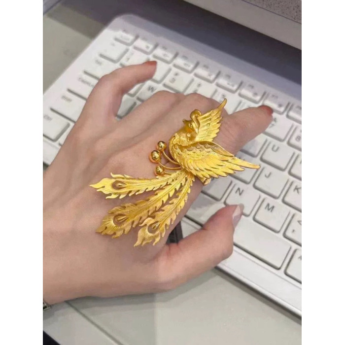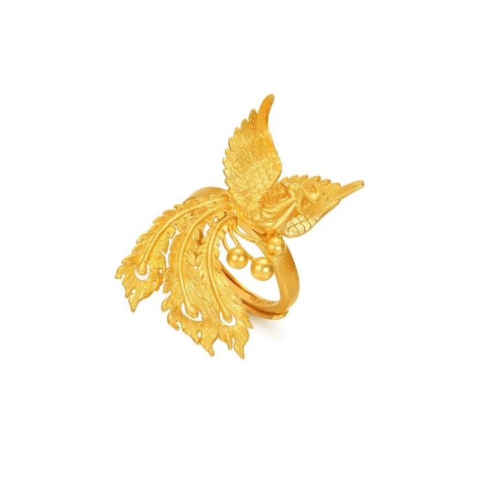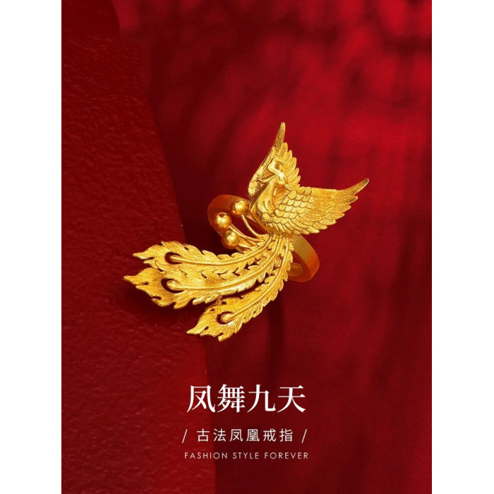 宏泰大喜珠寶鳳舞九天開口戒指活口可調節結婚仿真三金拍照飾品