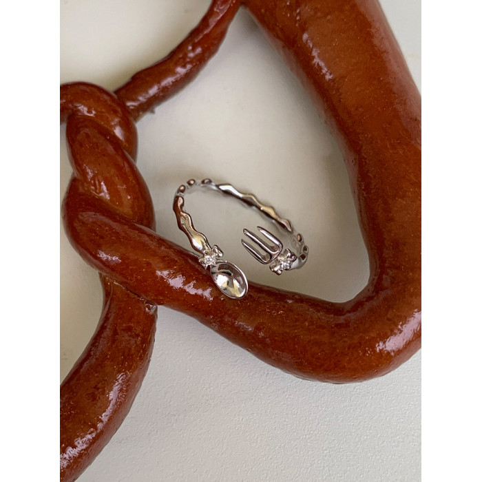 LLab s925銀 原創食物系列叉子勺子開口可調節戒指