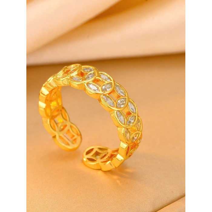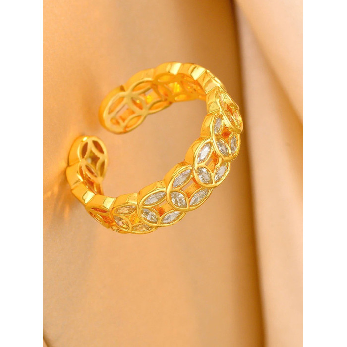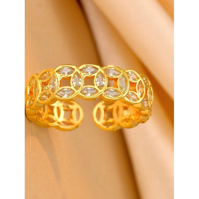 新中式滿鑽錢多多戒指女輕奢高級感24k金電鍍銅錢招財指環不掉色