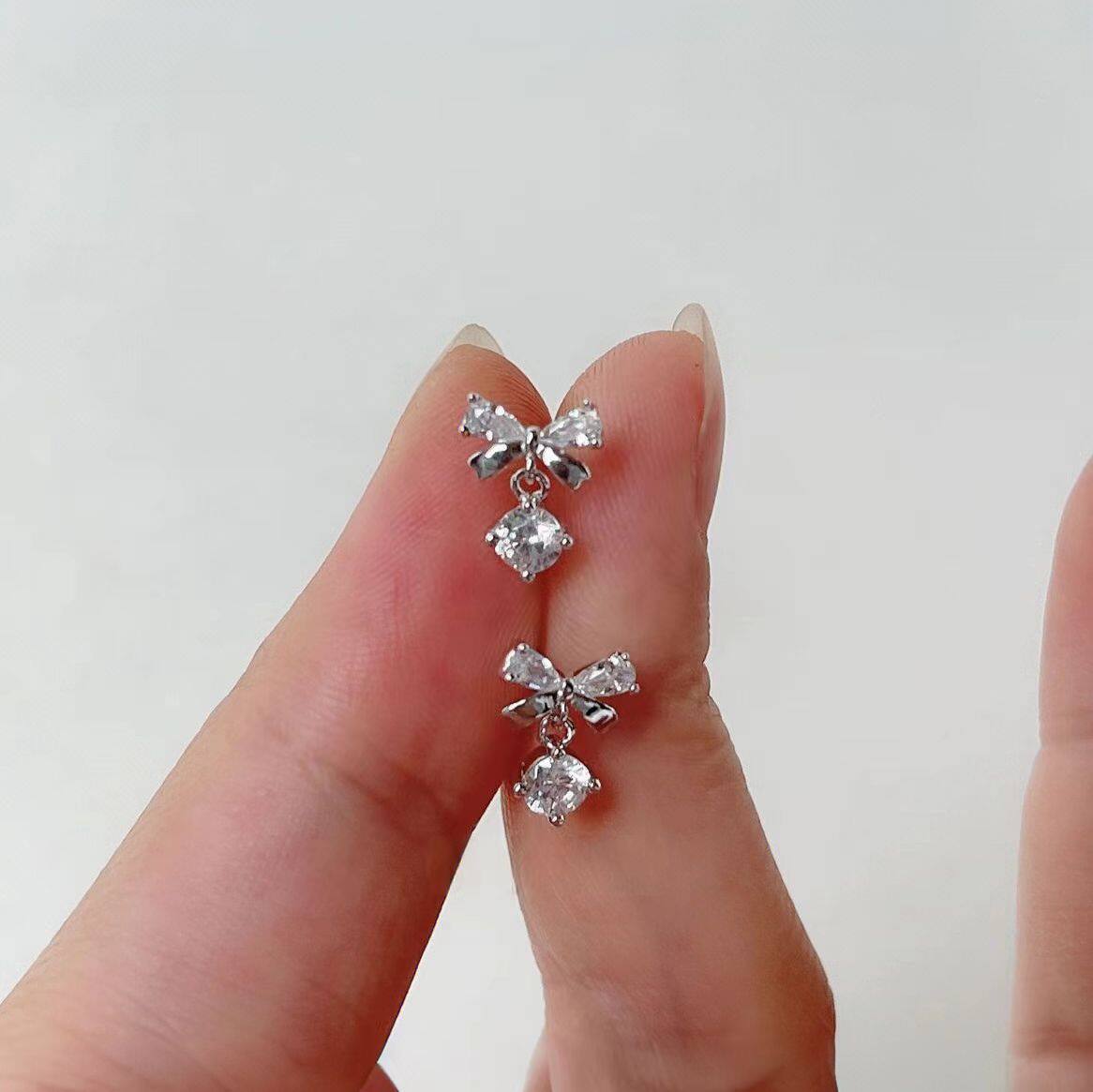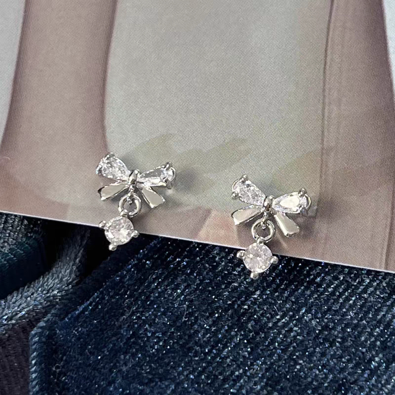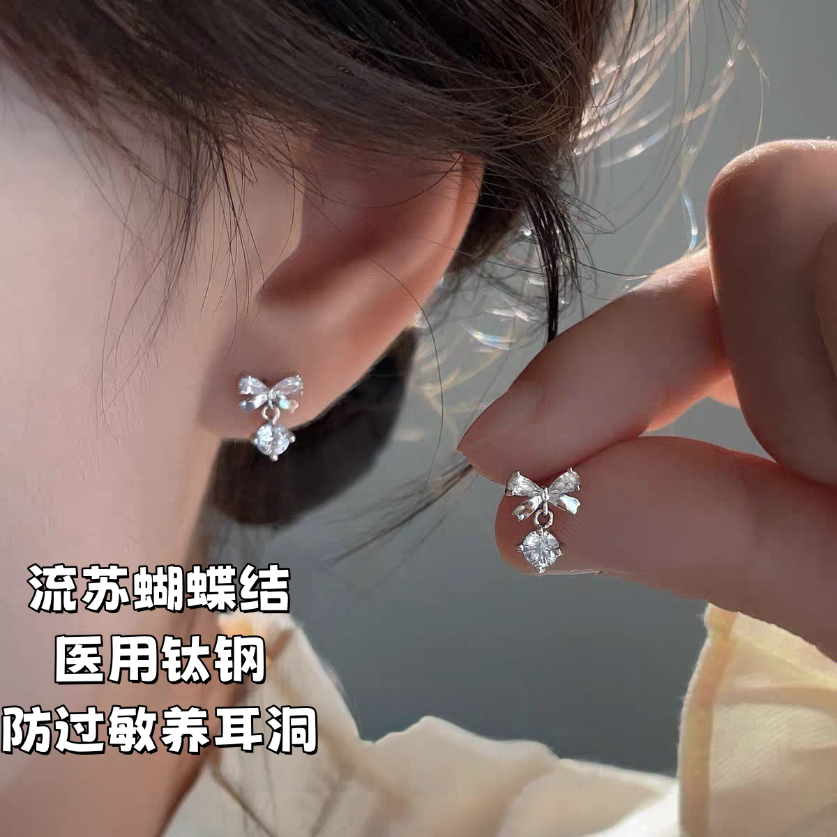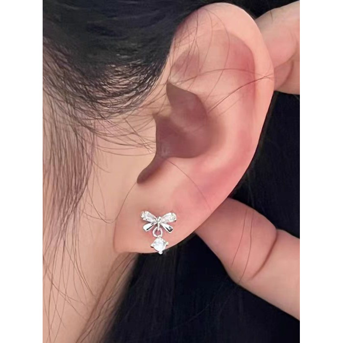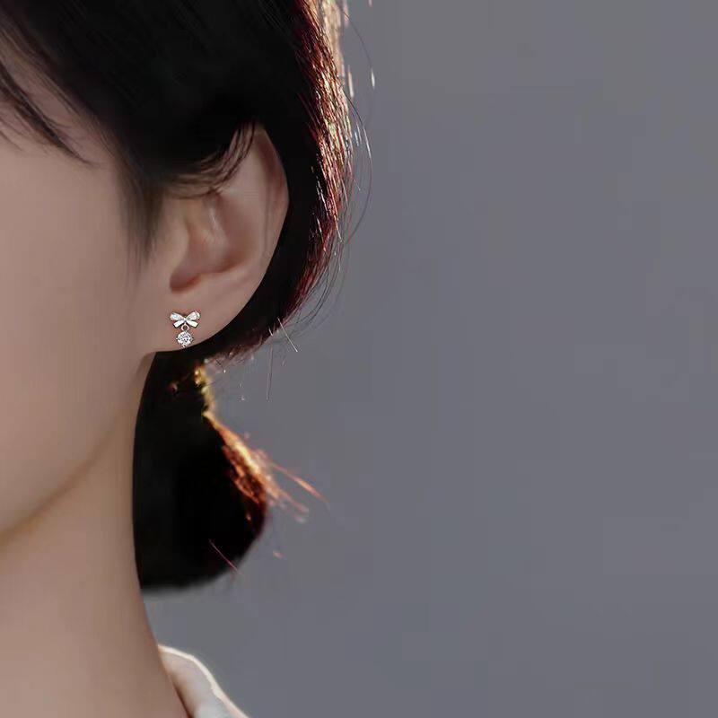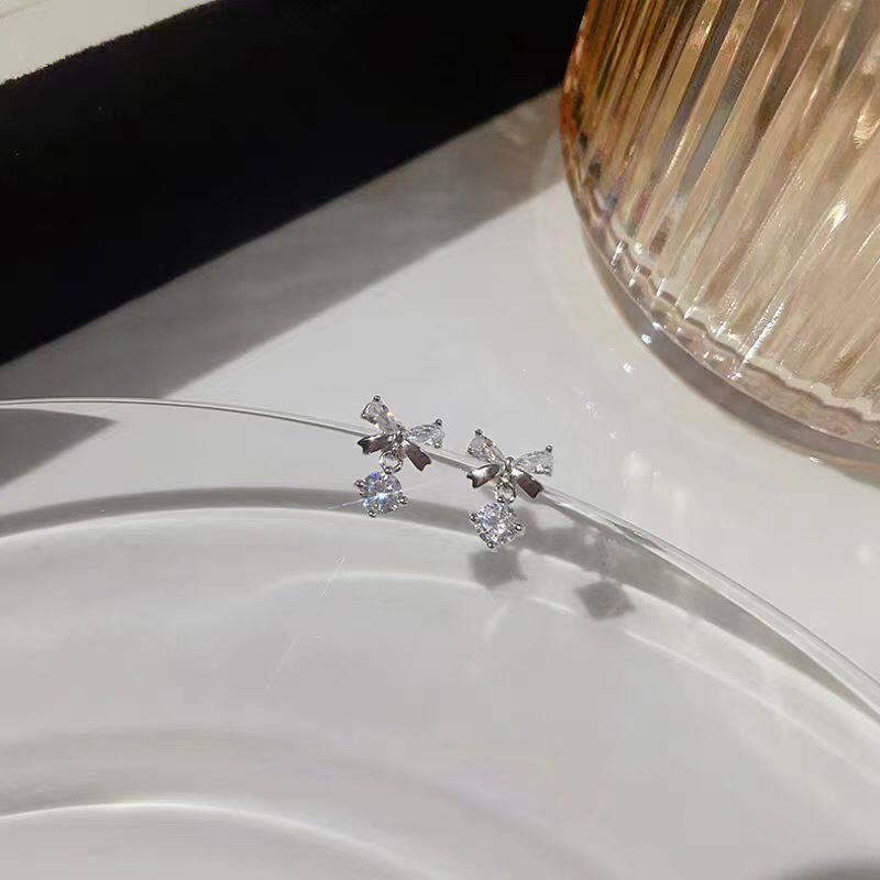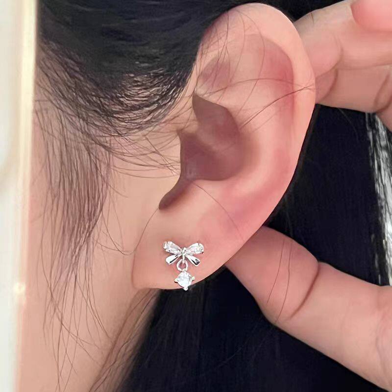 絕美蝴蝶結流蘇鋯石耳釘養耳洞醫用鈦鋼合金耳骨釘獨特漂亮女耳環