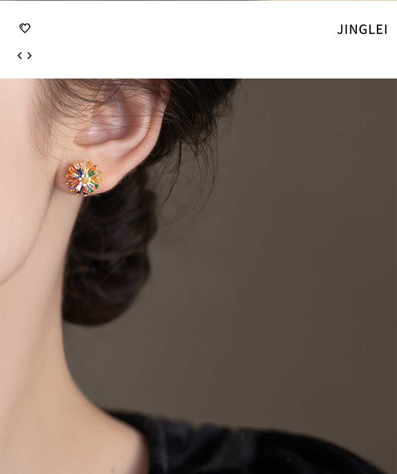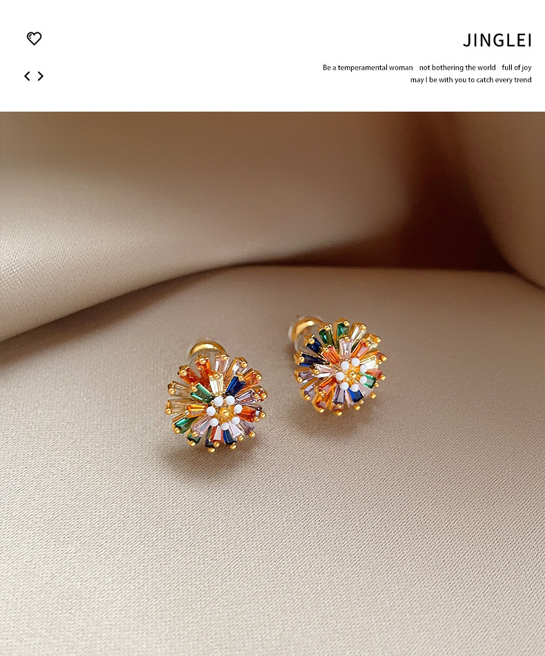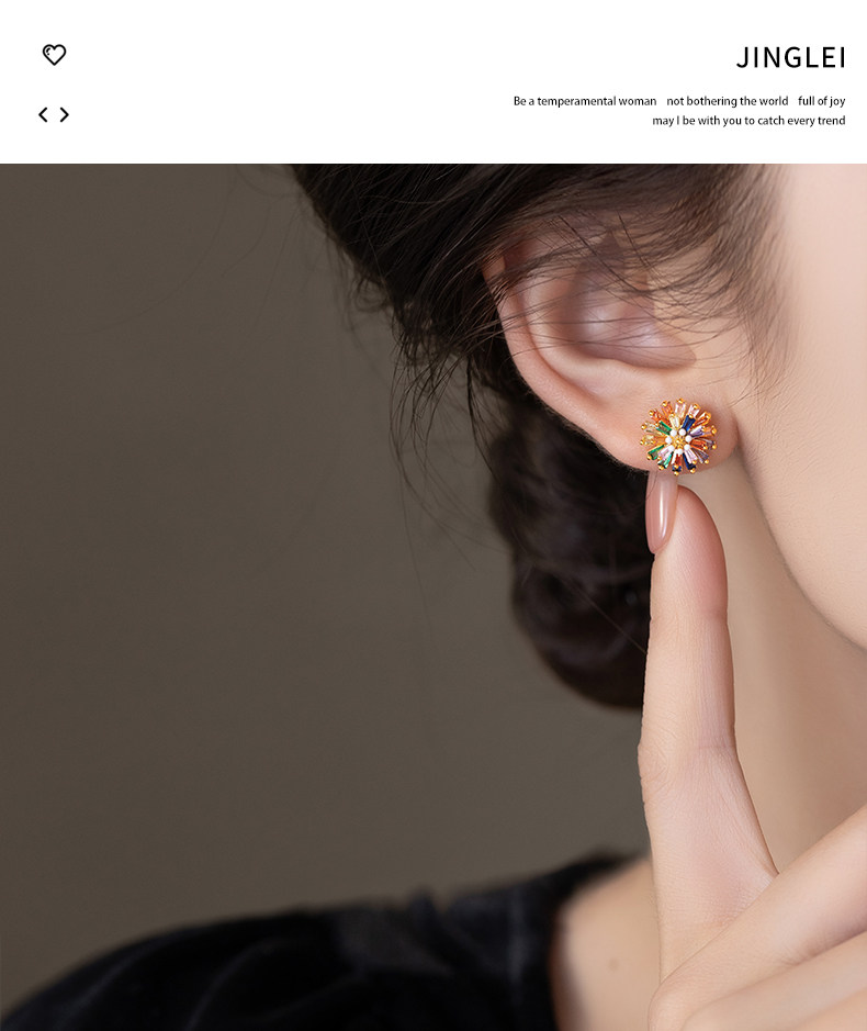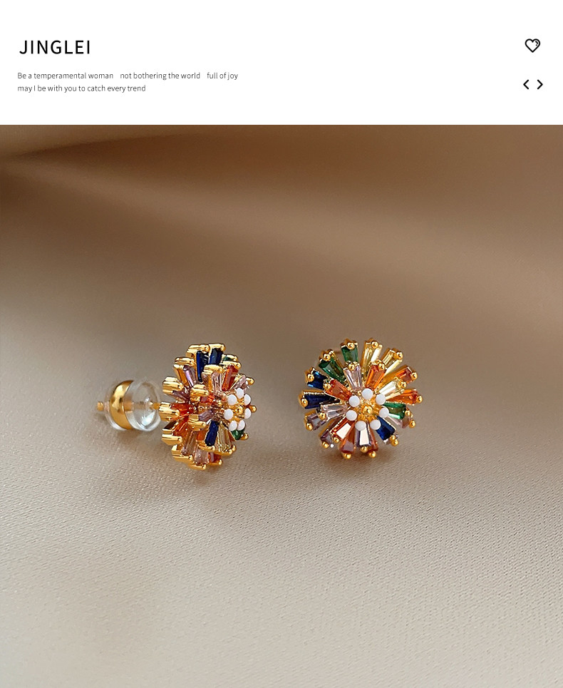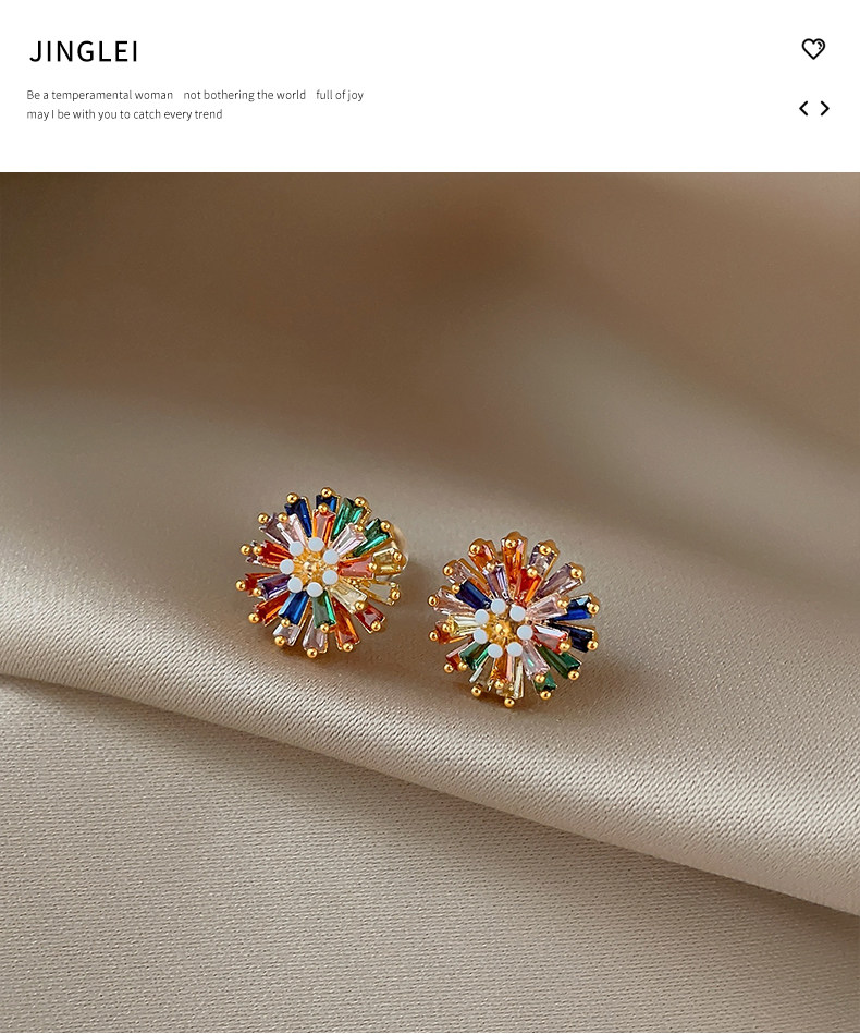 小衆彩虹花朵耳釘女彩色小雛菊設計時尚氣質高級感多巴胺耳墜耳飾