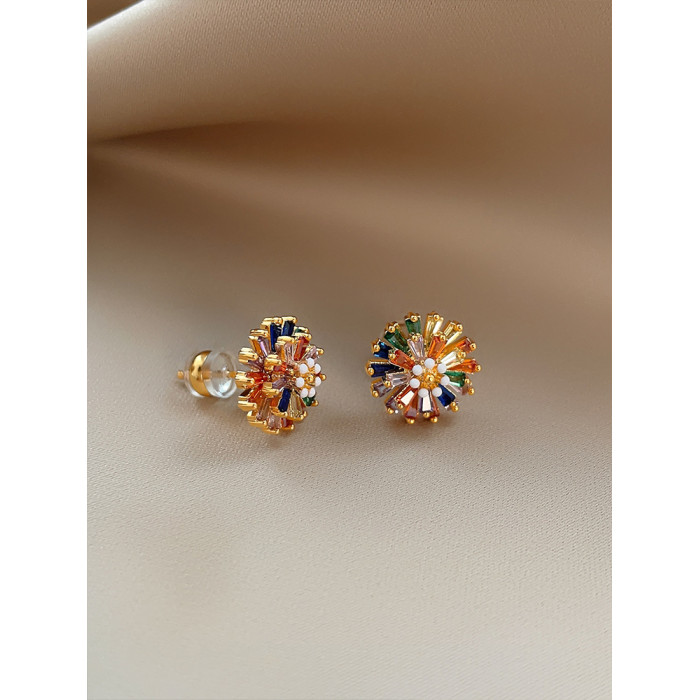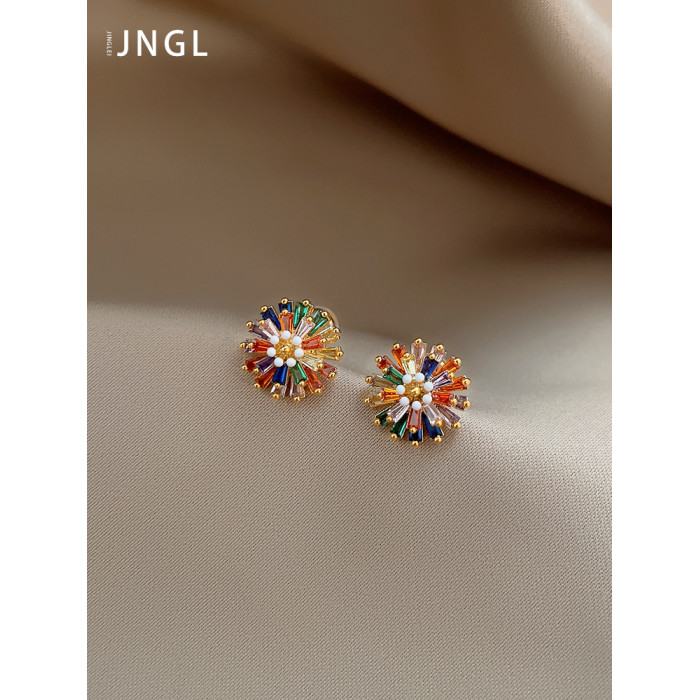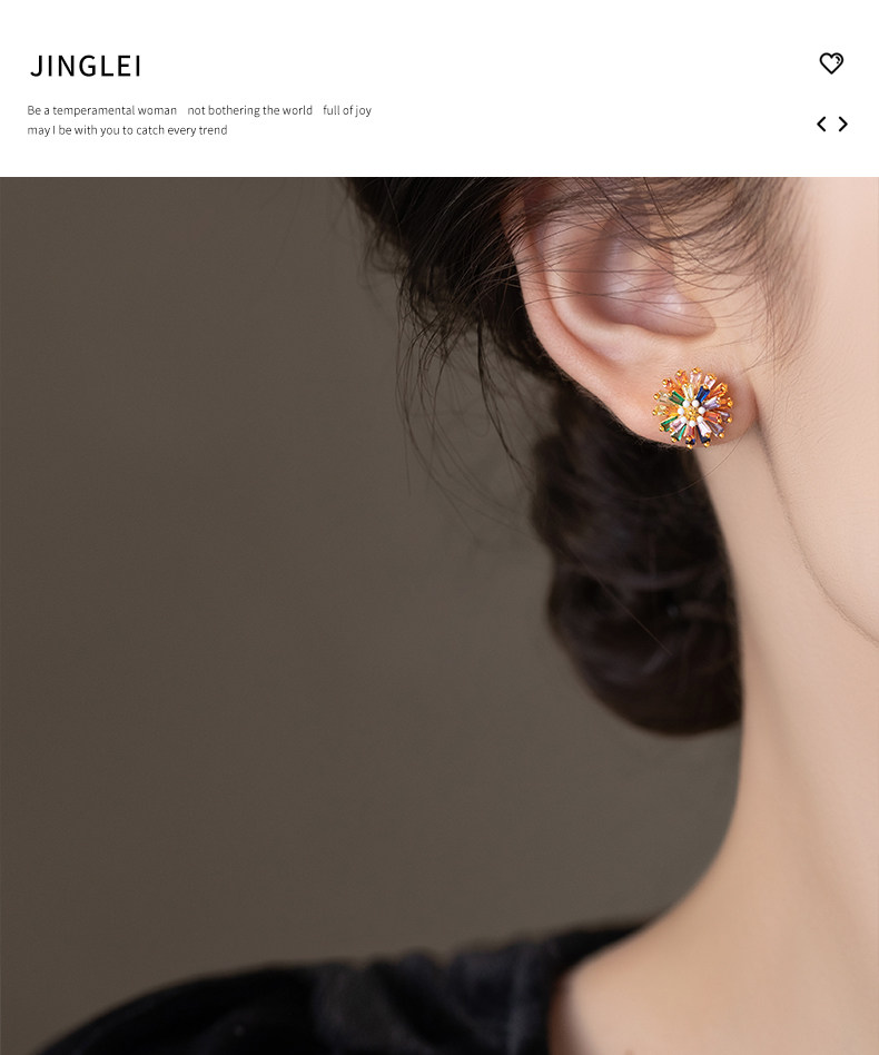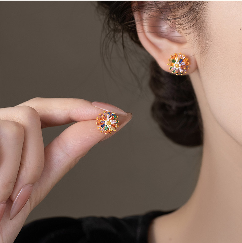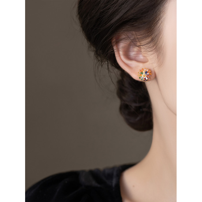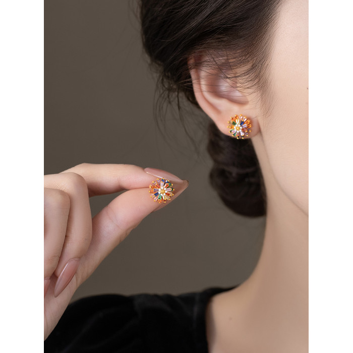 小衆彩虹花朵耳釘女彩色小雛菊設計時尚氣質高級感多巴胺耳墜耳飾
