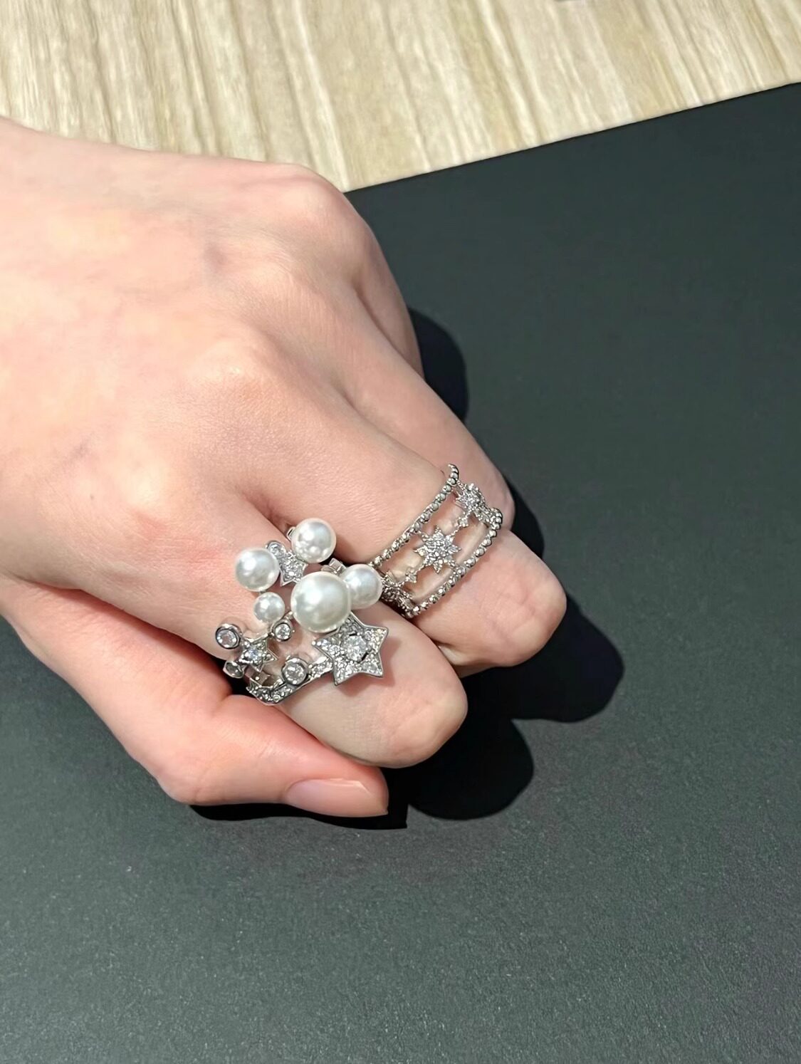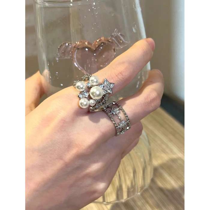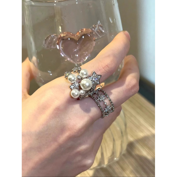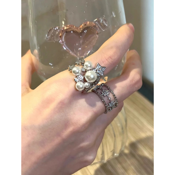 繁星點點開口戒指925銀 復古貴氣老錢風重工星星戒指高級感