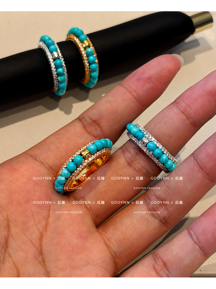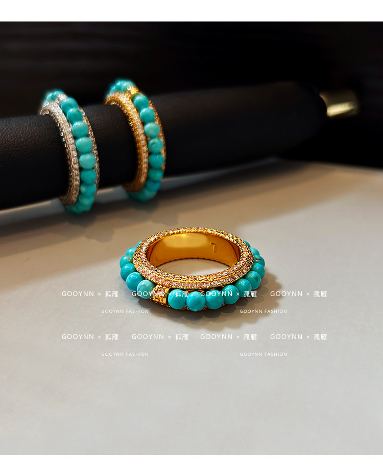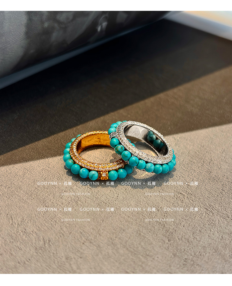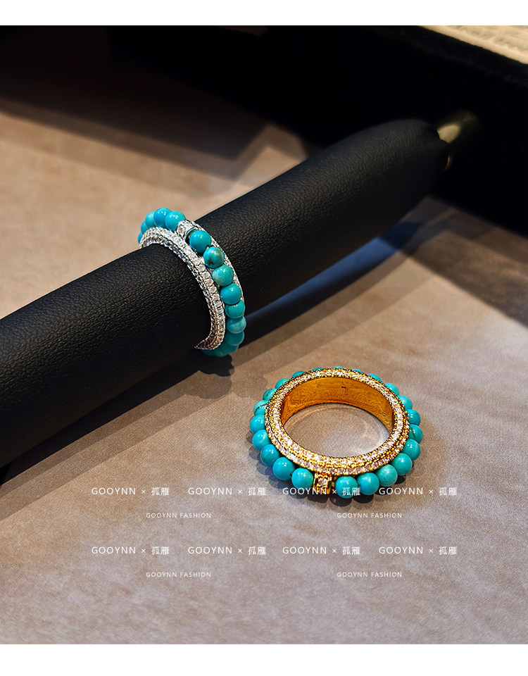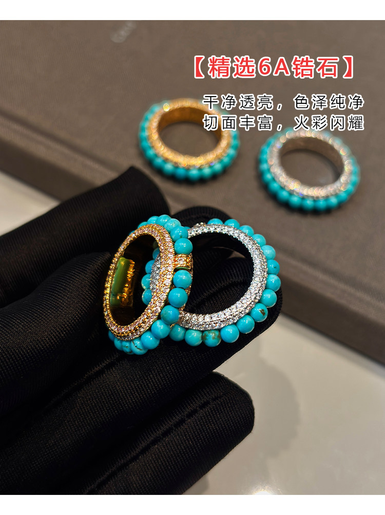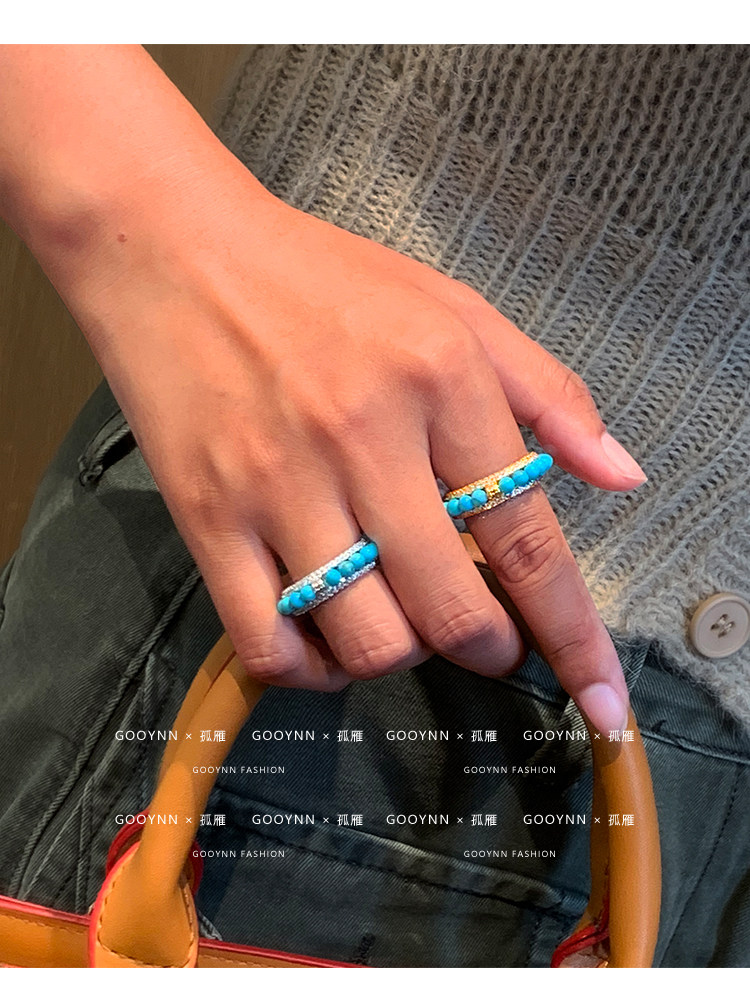 天然綠松石戒指女2026新款爆款藍色小衆設計輕奢高級感中古食指環