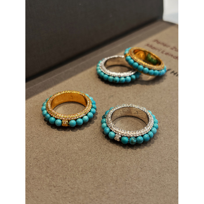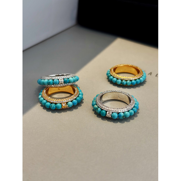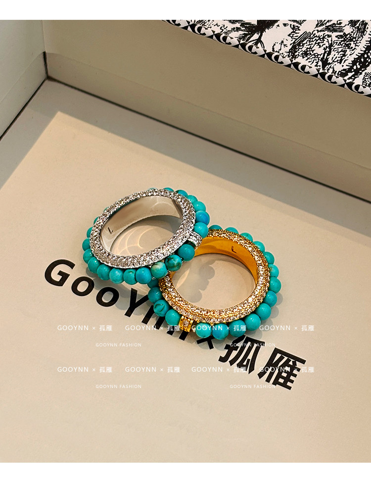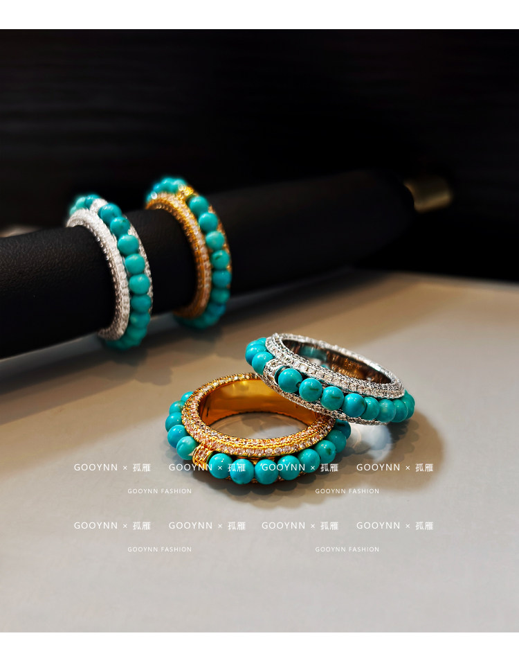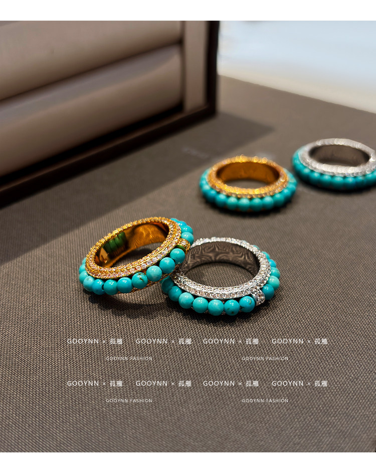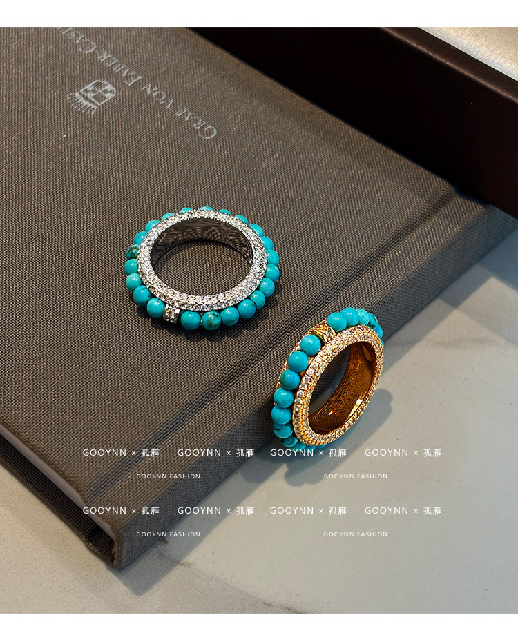 天然綠松石戒指女2026新款爆款藍色小衆設計輕奢高級感中古食指環