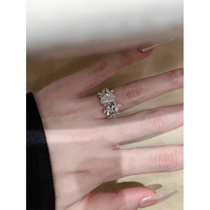 【尋光】清冷感爆閃蝴蝶橢圓鋯石戒指千金感重工輕奢鴿子蛋食指戒