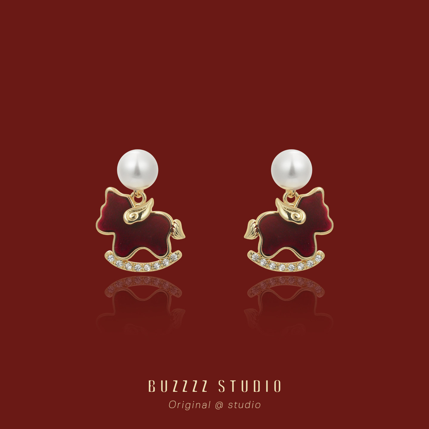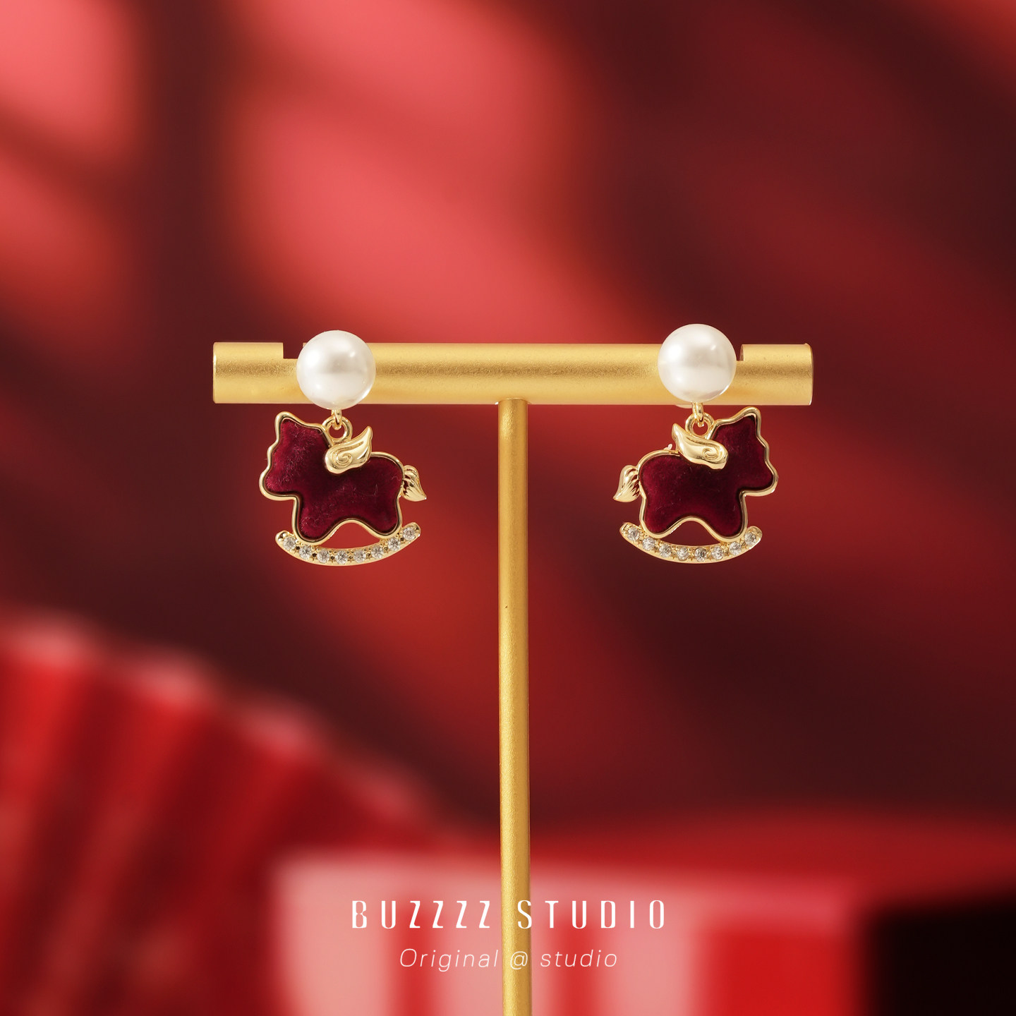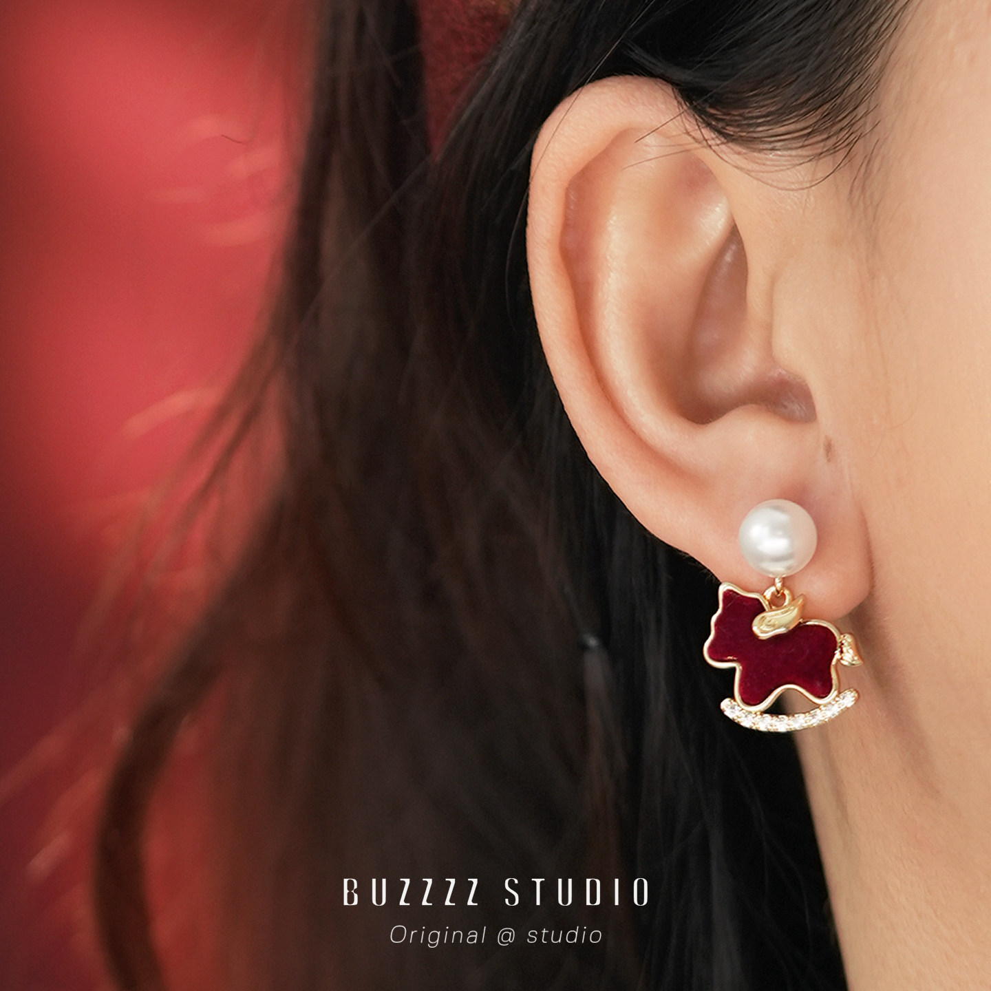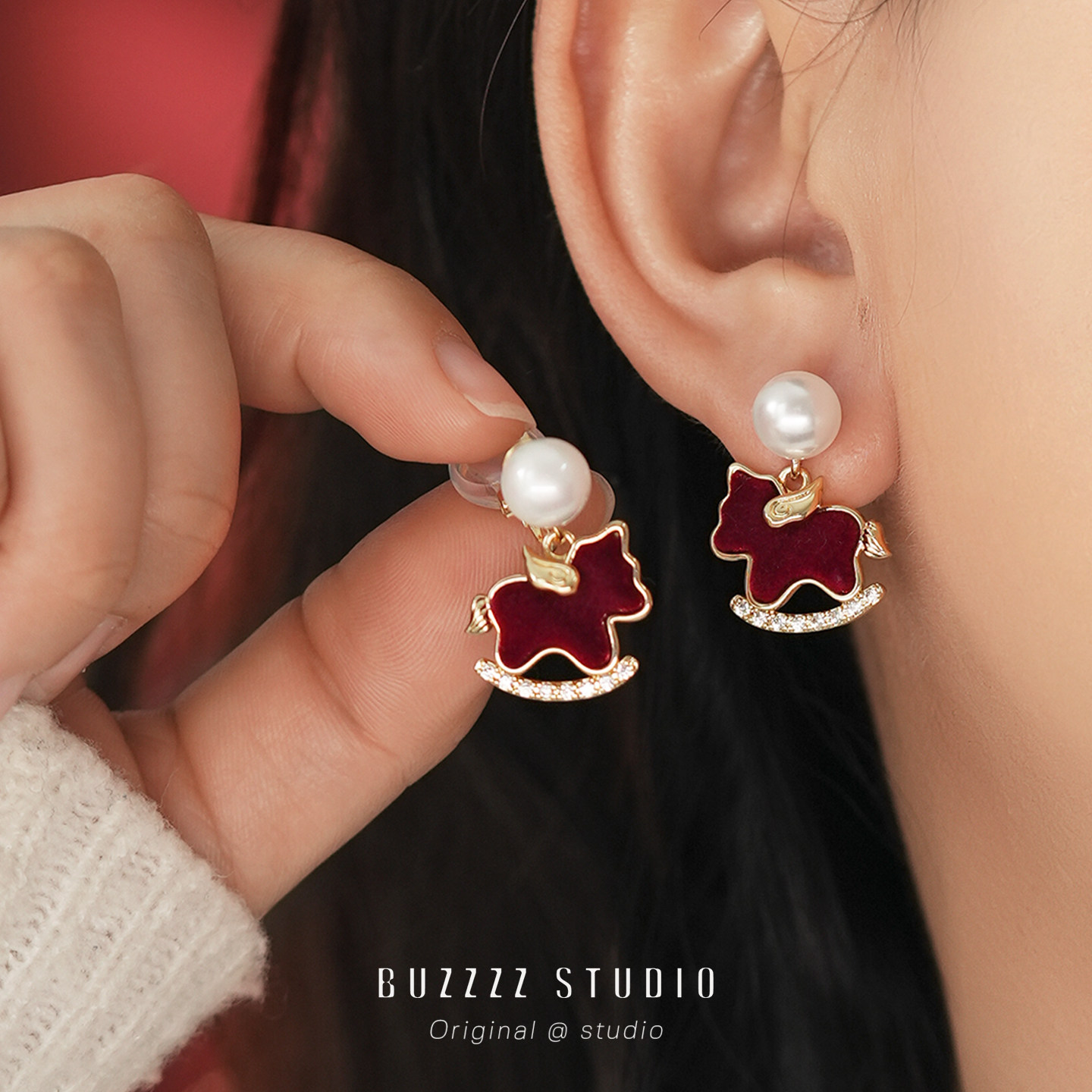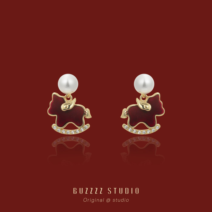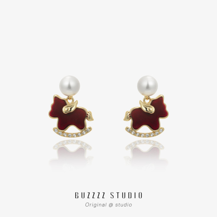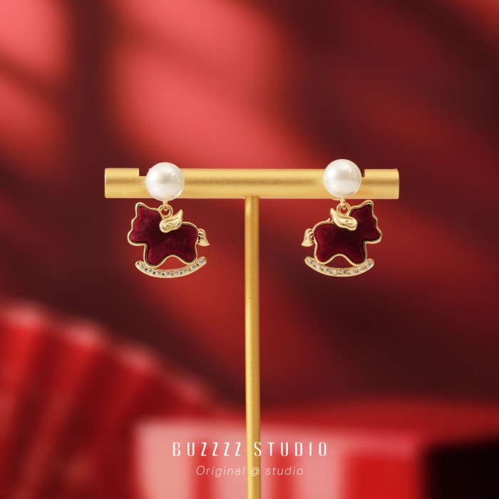 紅色小飛馬耳環馬年本命年適合過年氣質精緻小巧耳釘無耳洞耳夾女