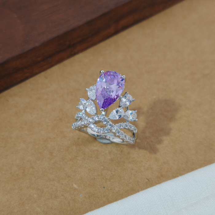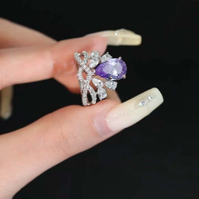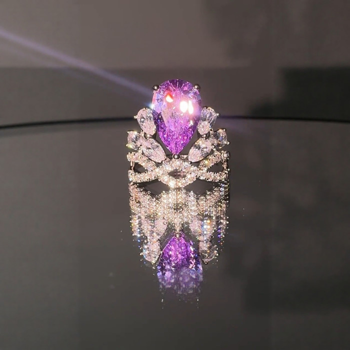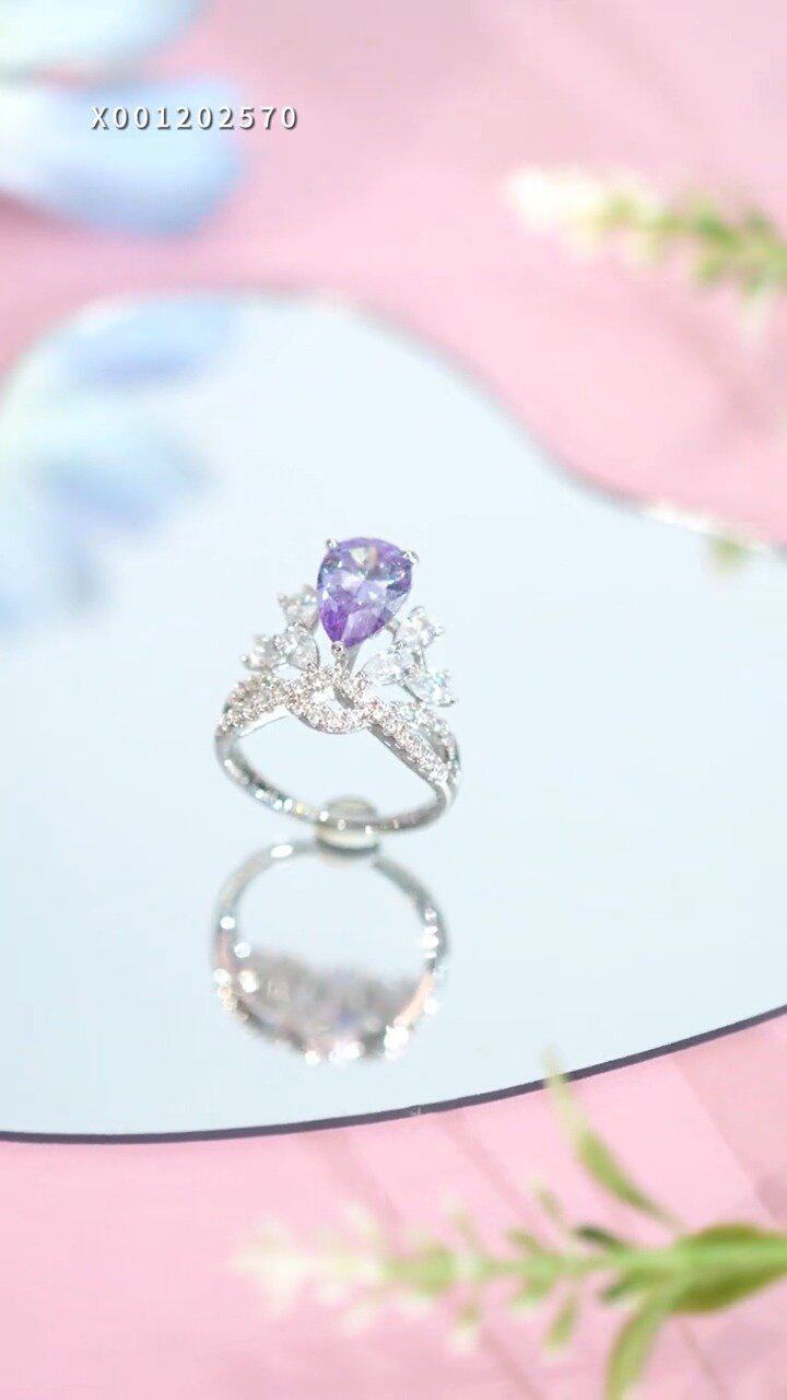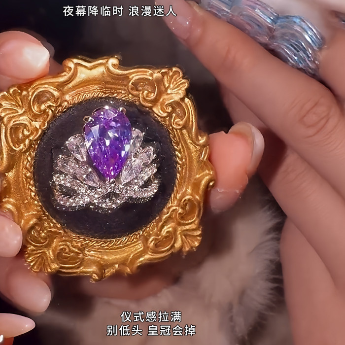 楠楠在逃公主紫色皇冠戒指閉口不可調閃爍戒指時尚輕奢食指戒指環