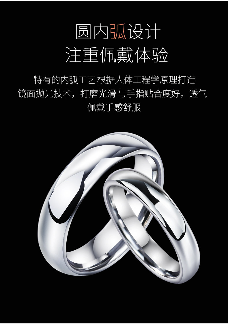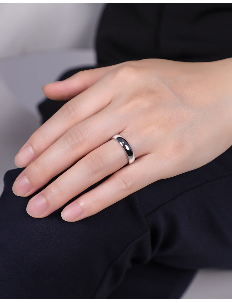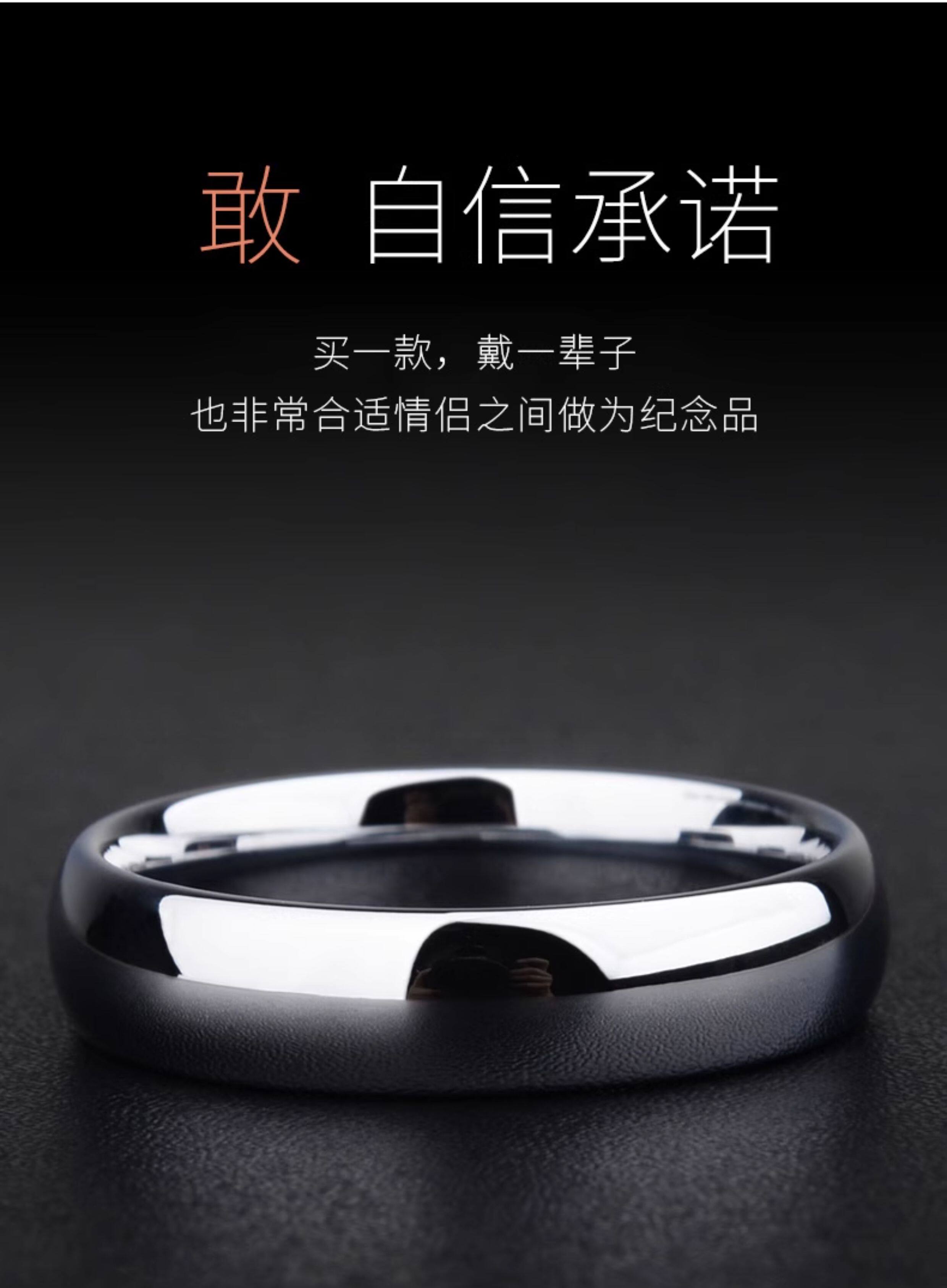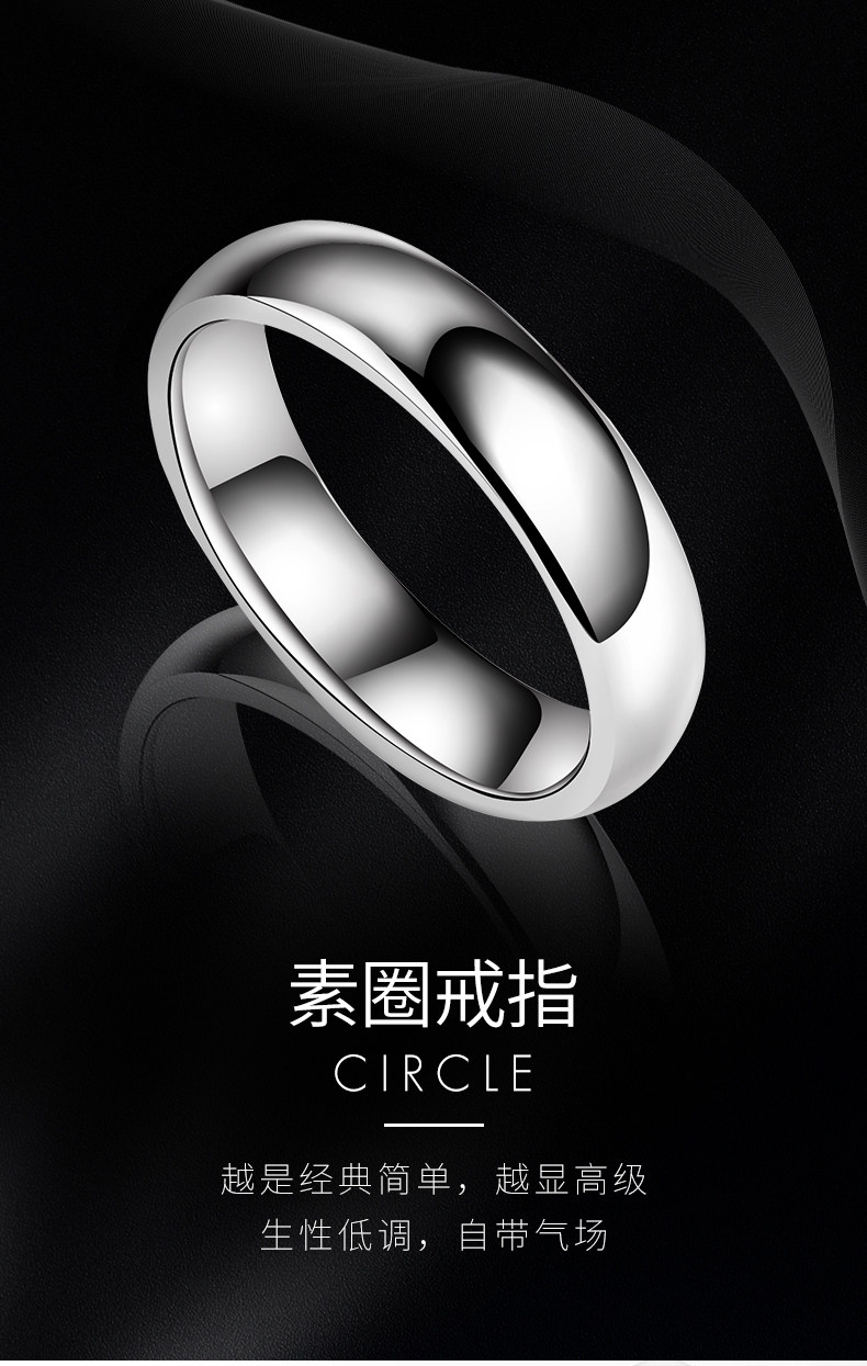 颯雅男士戒指銀素圈高級感鎢鋼烏金尾戒光面閉口高清反光指環男生
