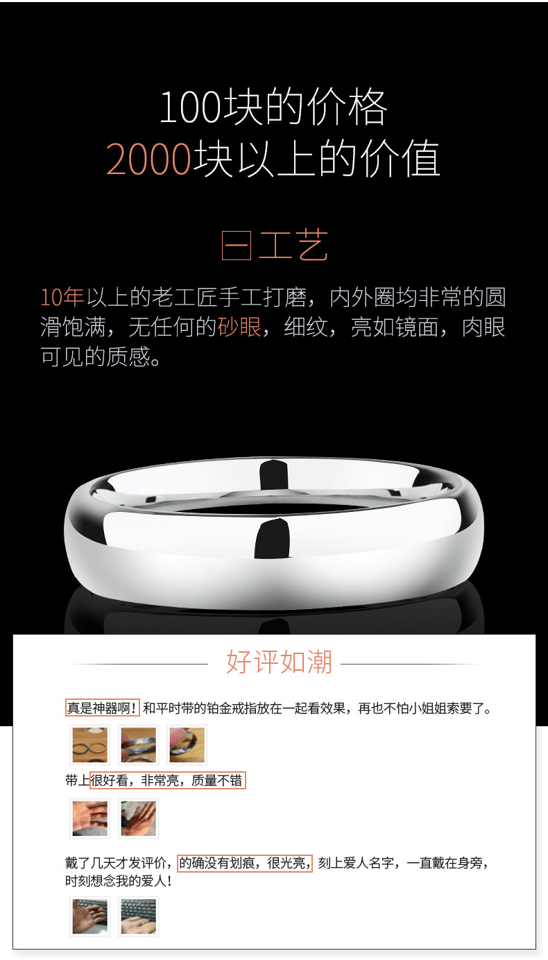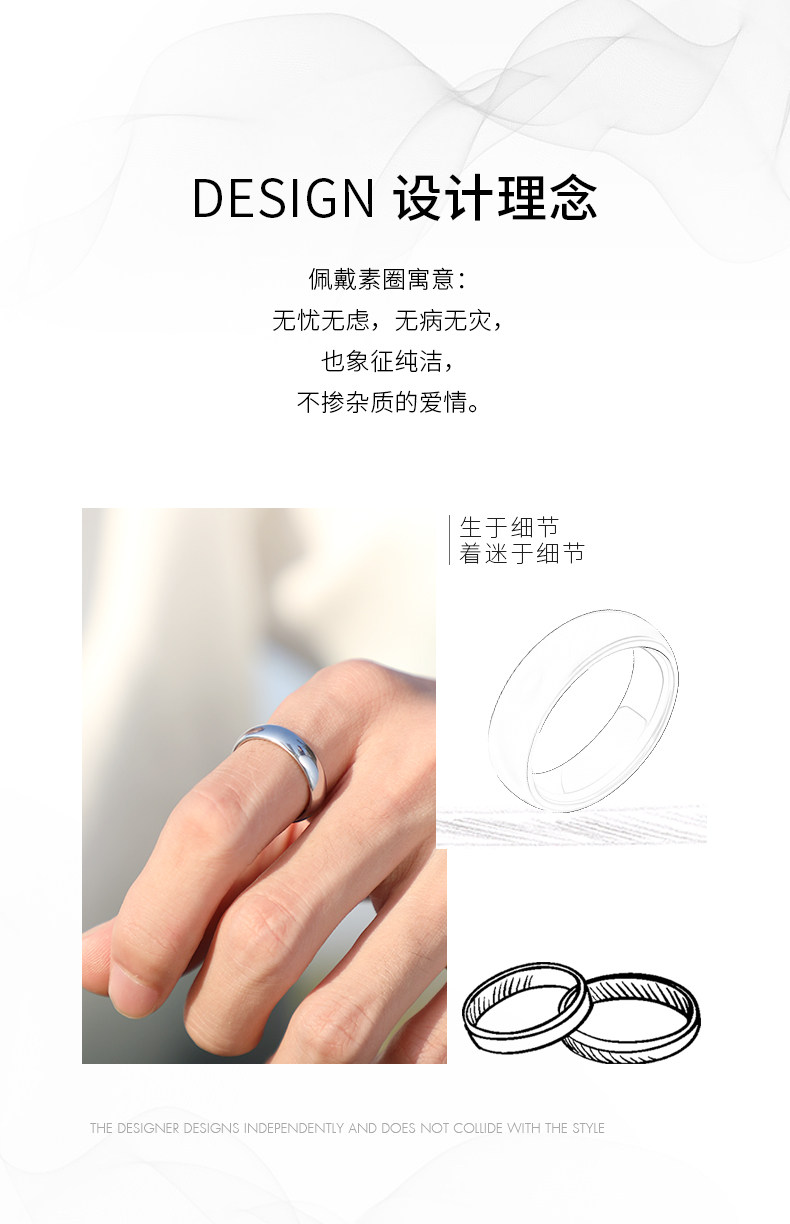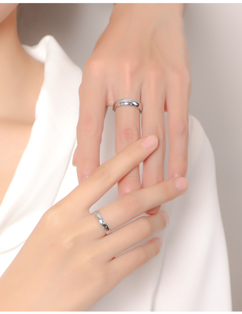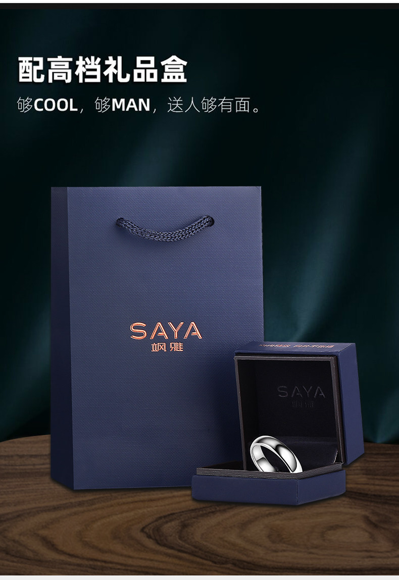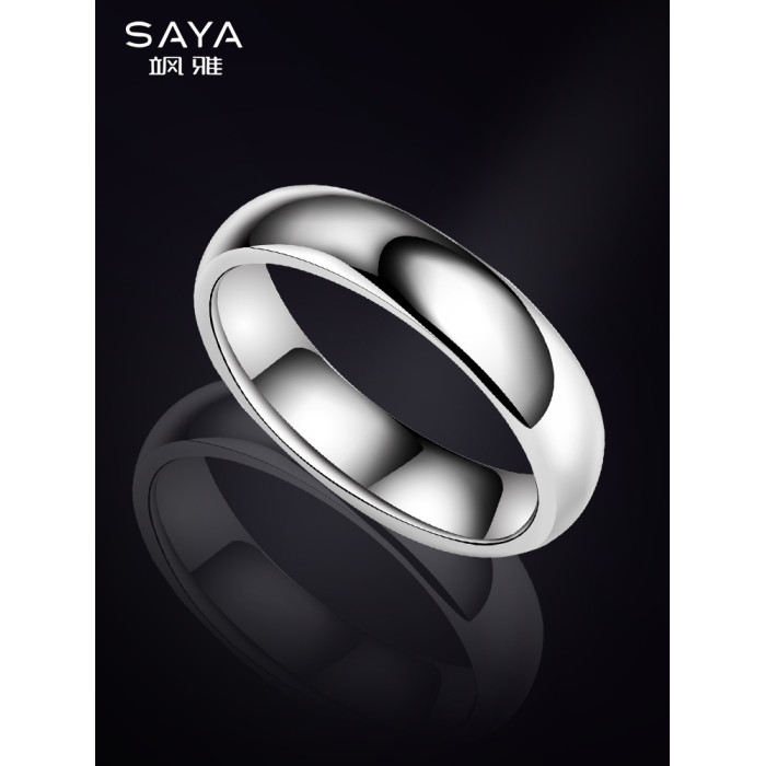 颯雅男士戒指銀素圈高級感鎢鋼烏金尾戒光面閉口高清反光指環男生