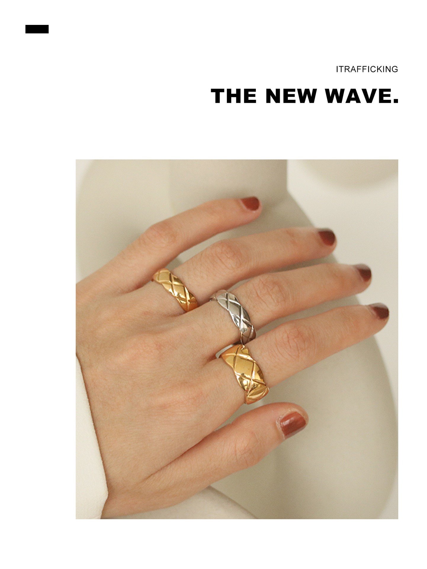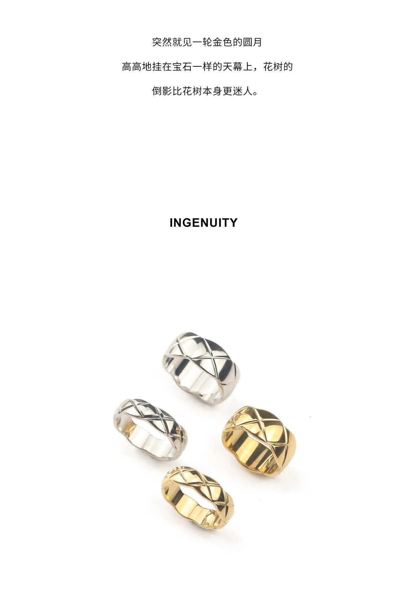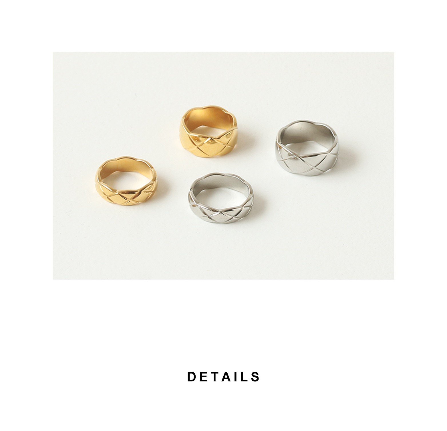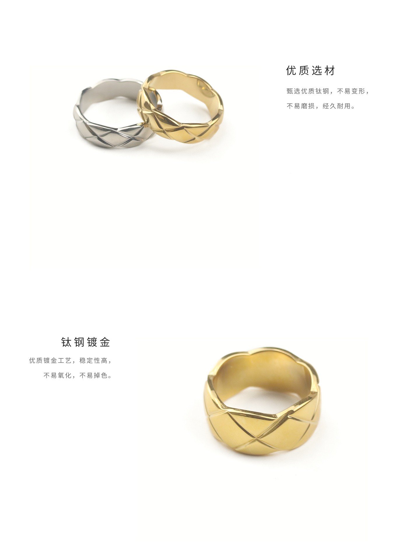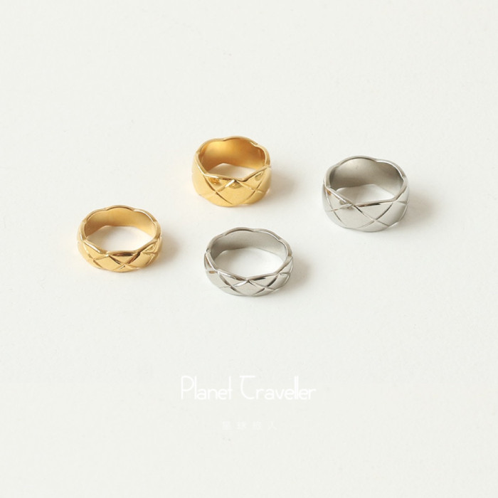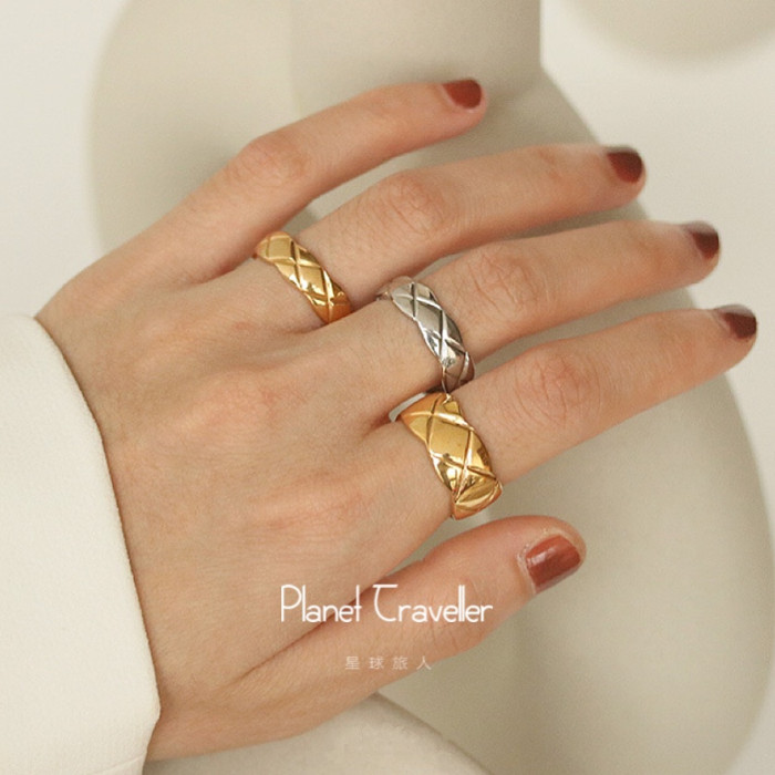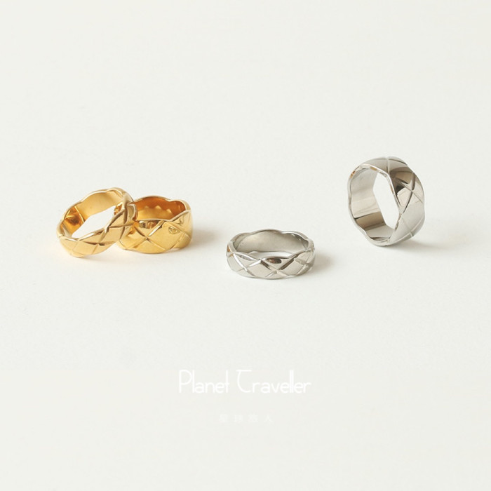 小香風菱格紋戒指女簡約時尚經典復古輕奢高級感鈦鋼指環男情侶戒