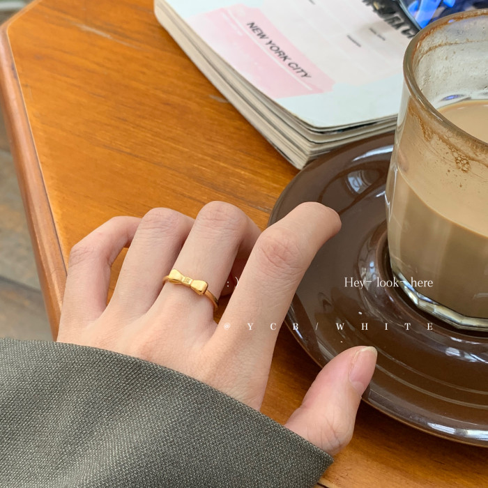 「在逃大小姐」輕奢高級感金色蝴蝶結戒指甜美可愛小衆感設計指環