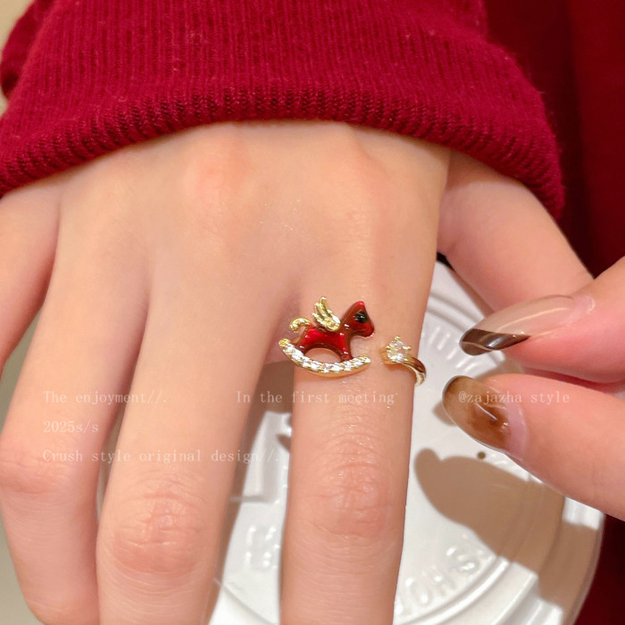 馬年有福~本命年紅色小馬戒指女生小衆設計新年輕奢高級感食指戒