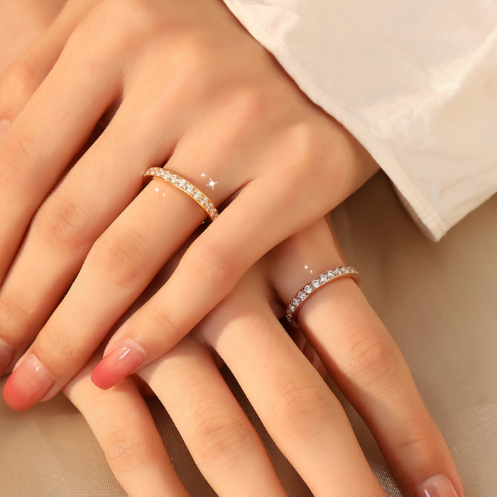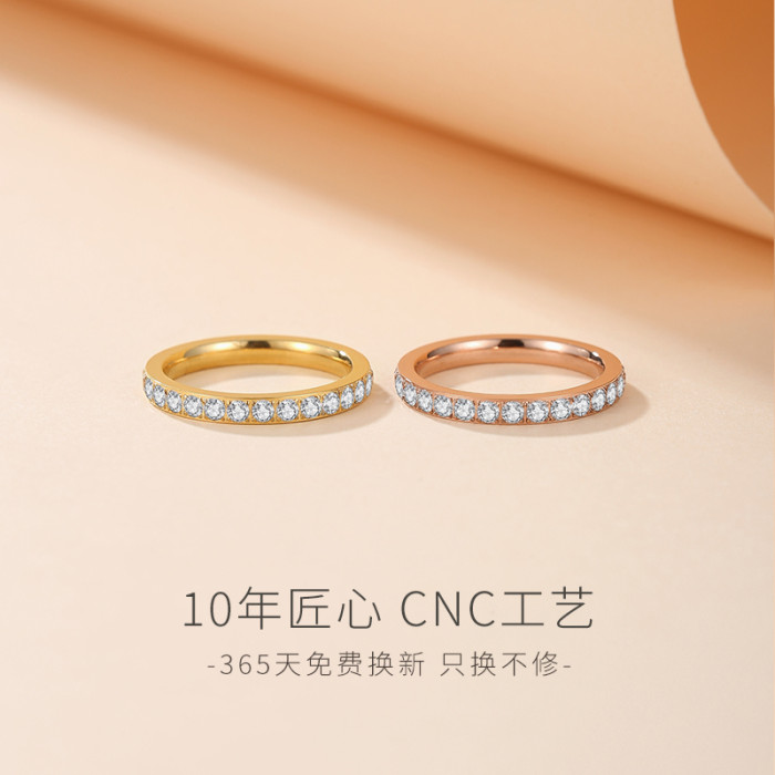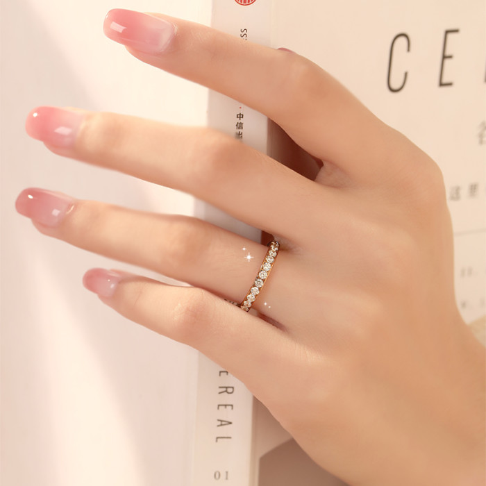 滿鑽戒指碎鑽排鑽尾戒小指女輕奢高級感18K玫瑰金小衆設計關節