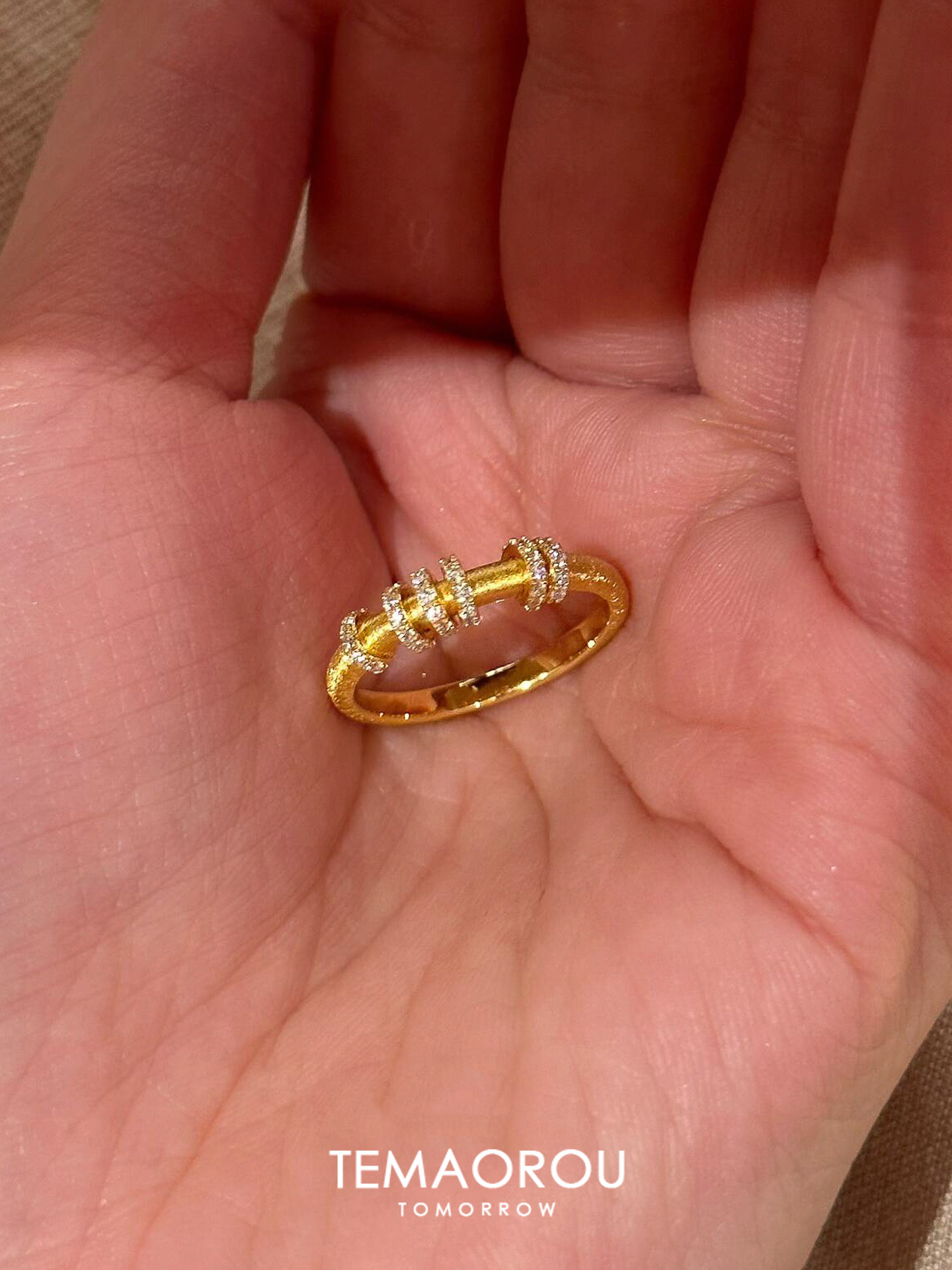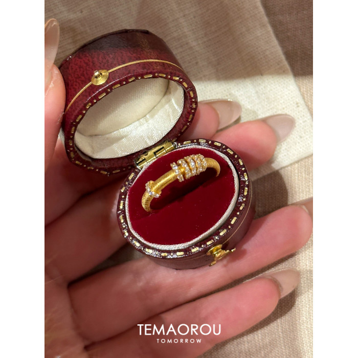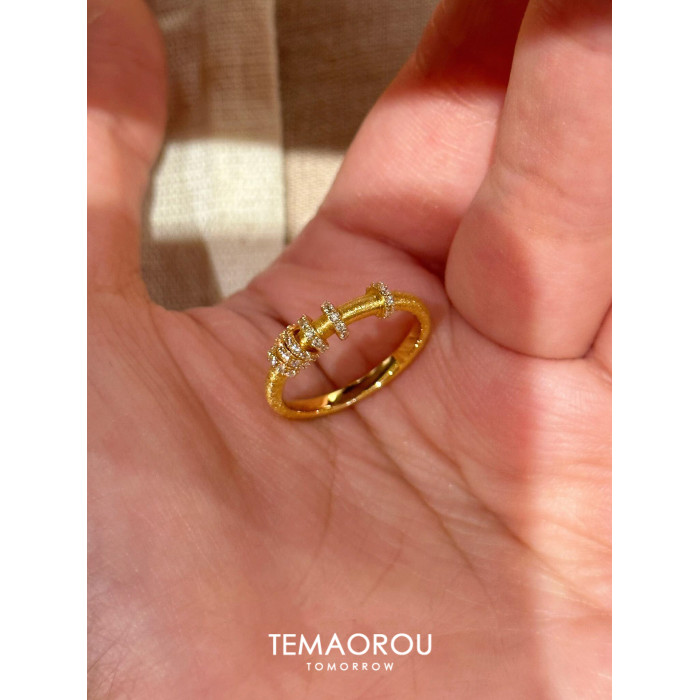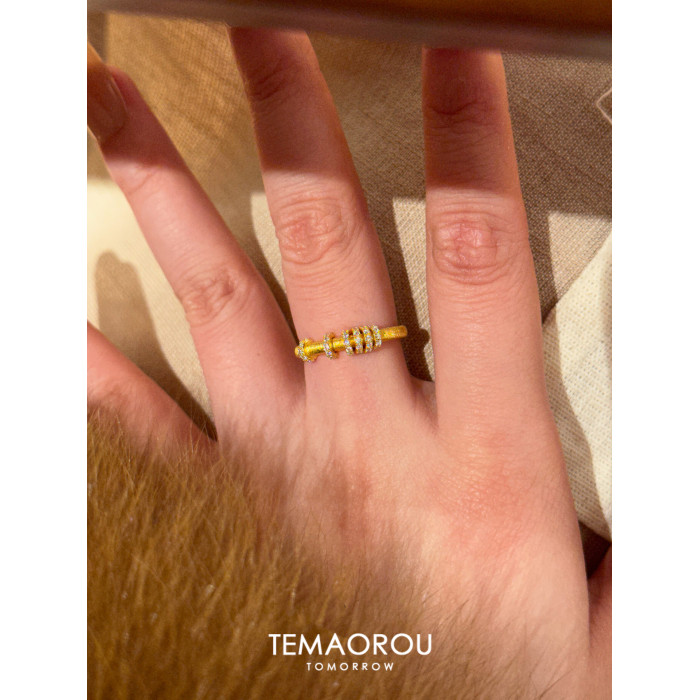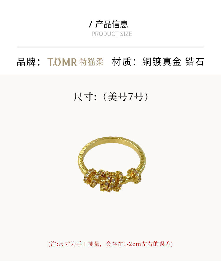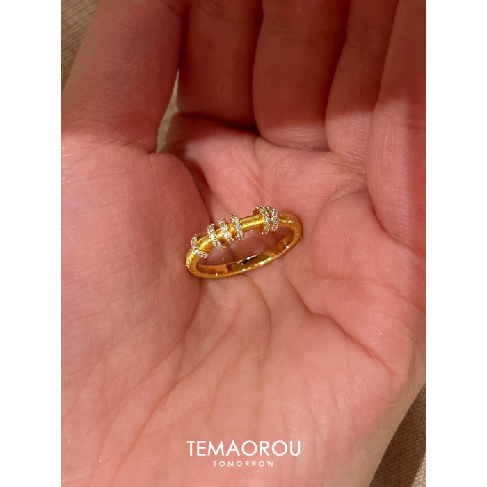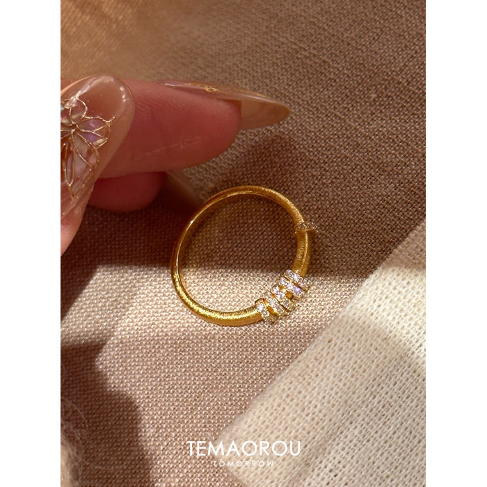 手工拉絲「轉運環」點鑽金跑環戒指輕奢高級感沙金不掉色食指戒