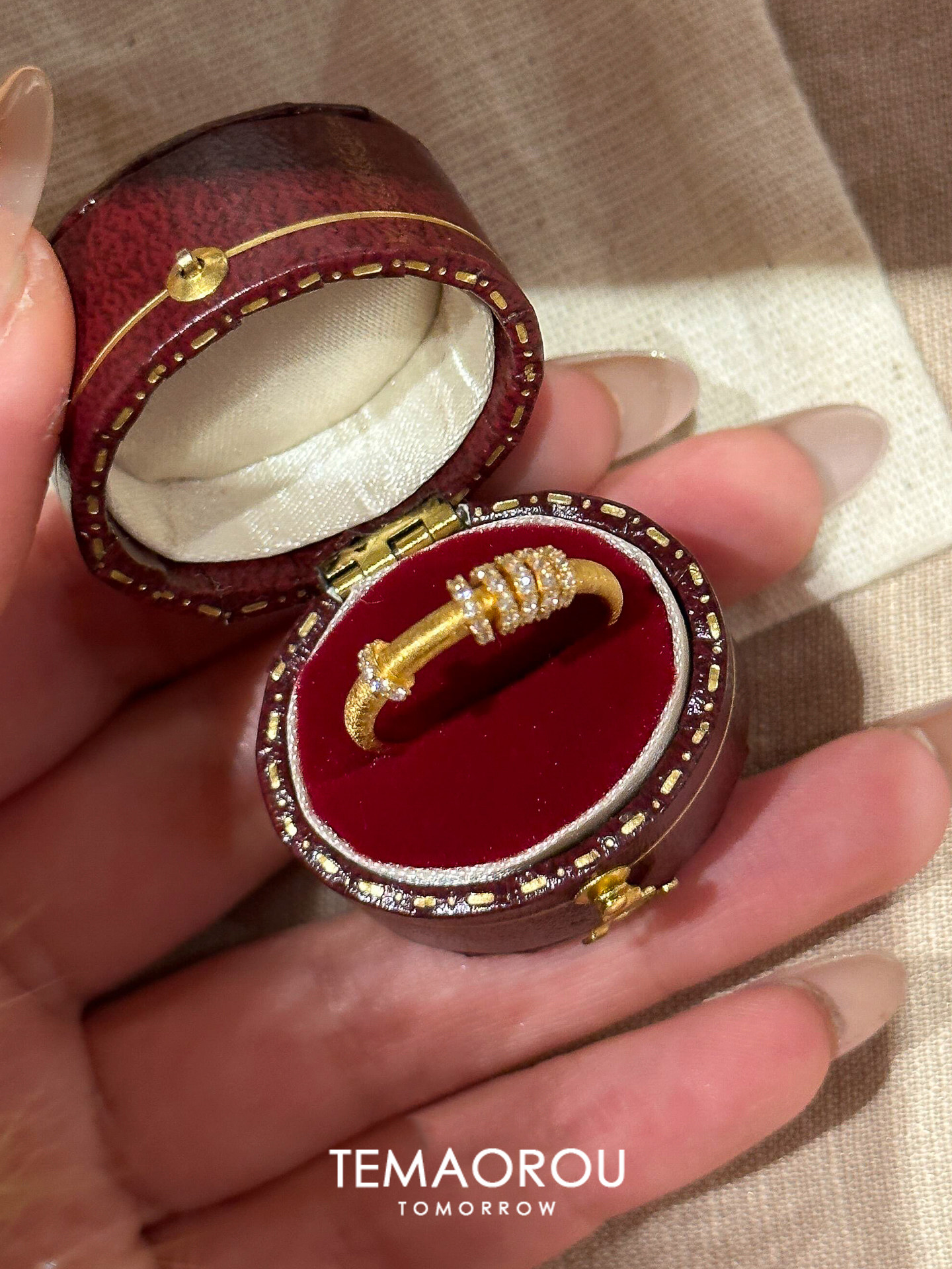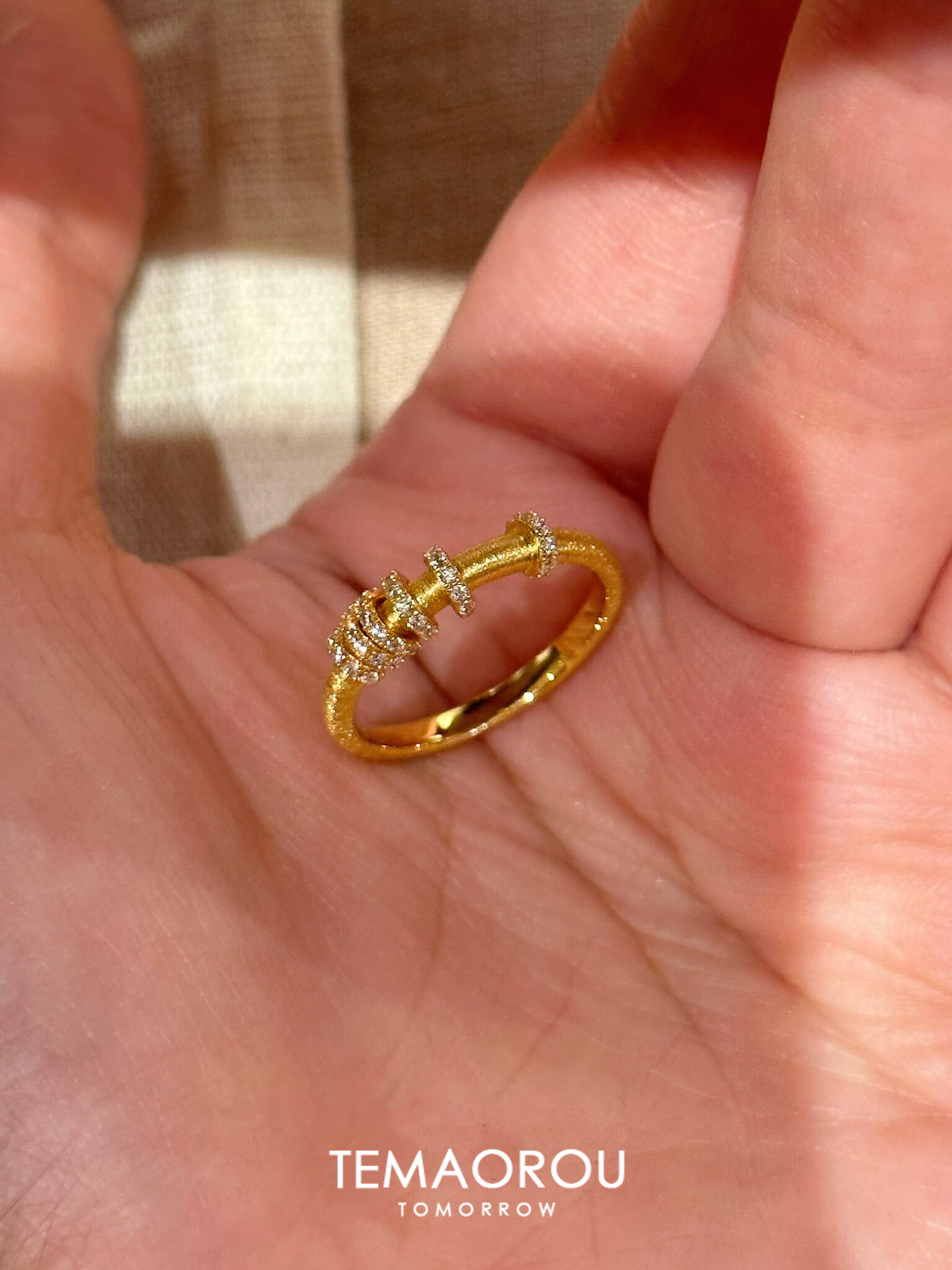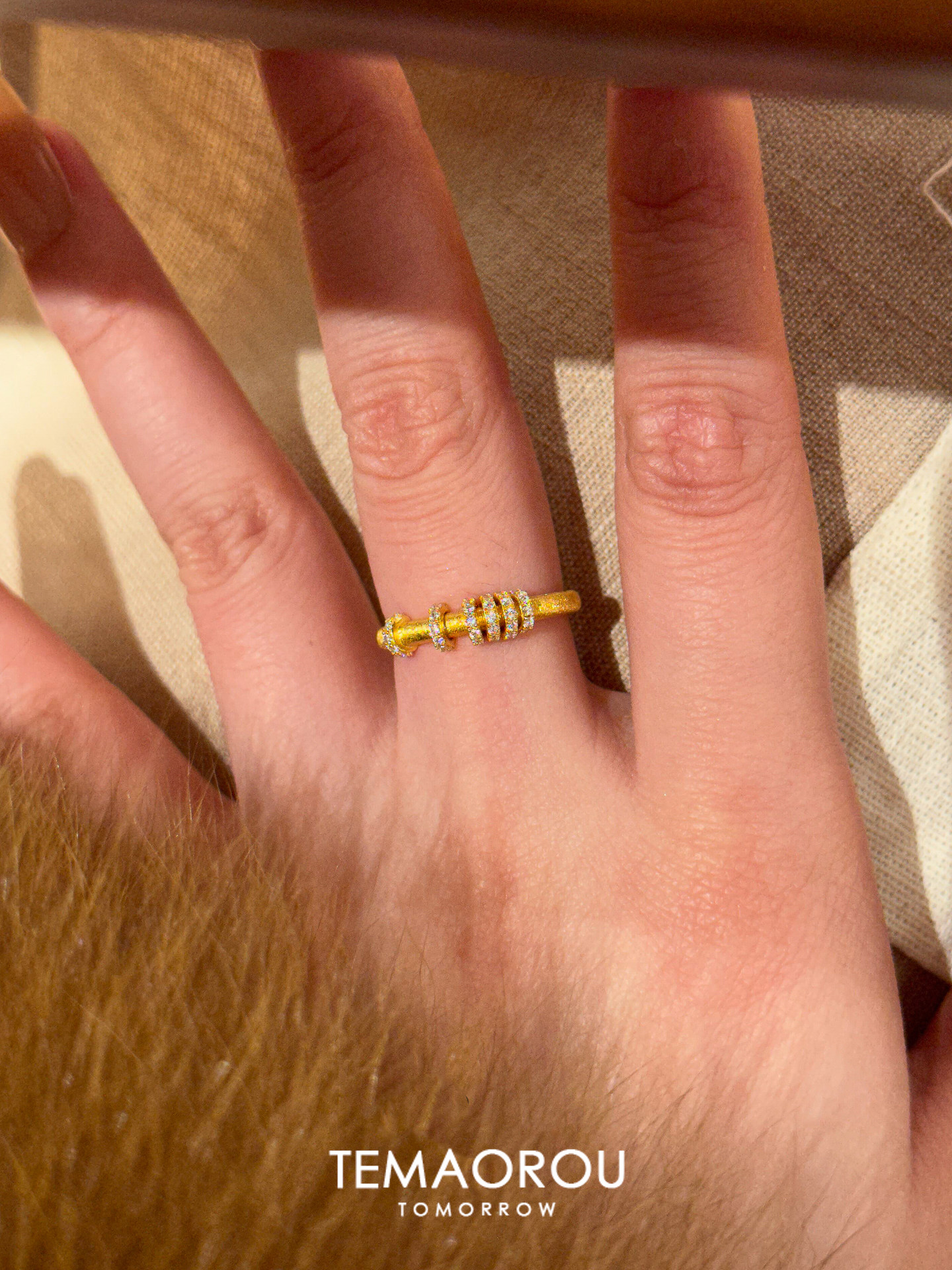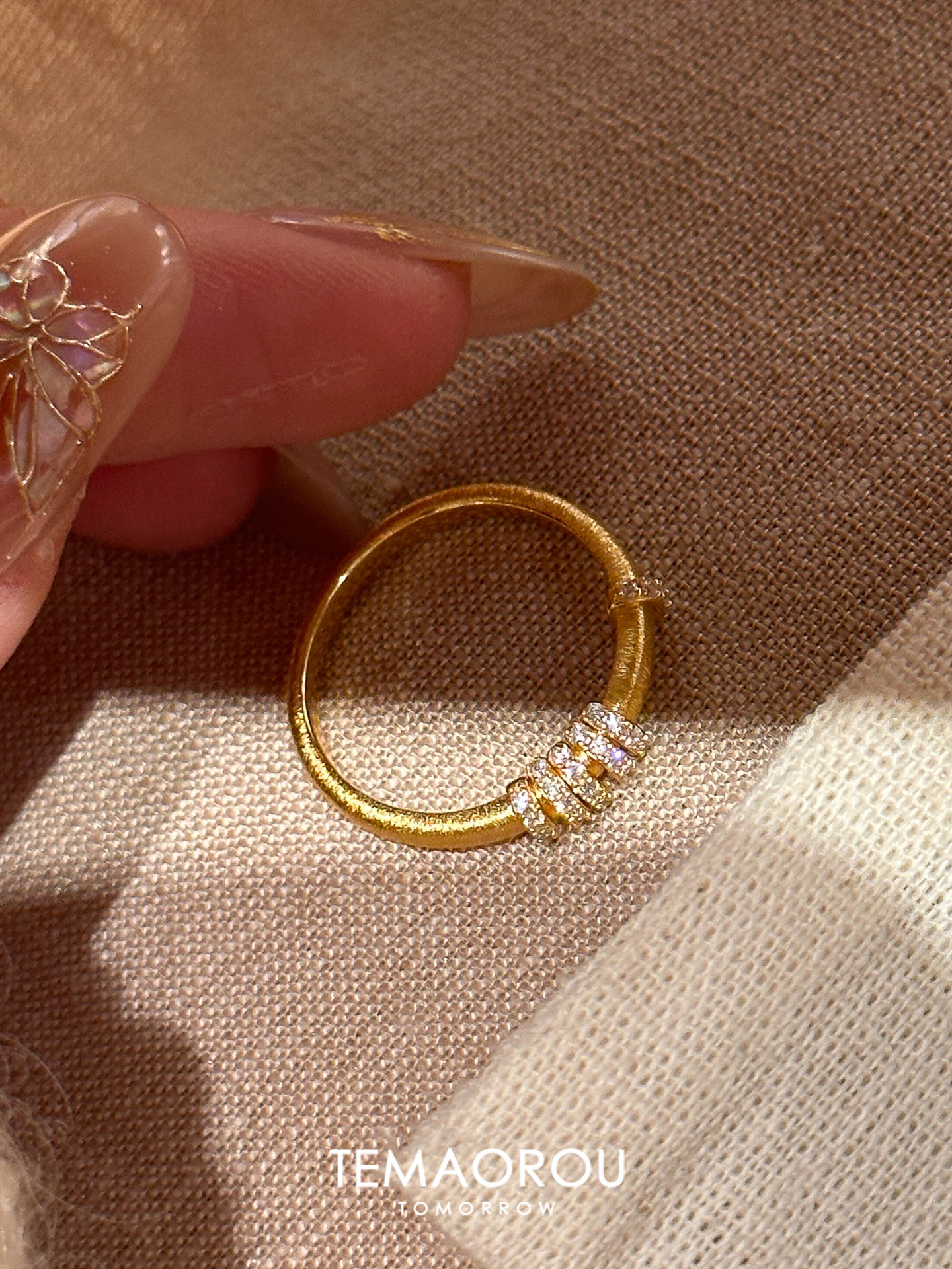 手工拉絲「轉運環」點鑽金跑環戒指輕奢高級感沙金不掉色食指戒