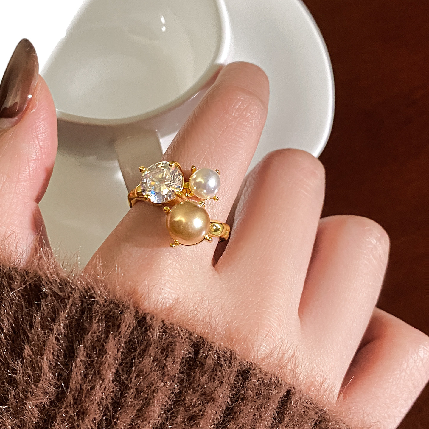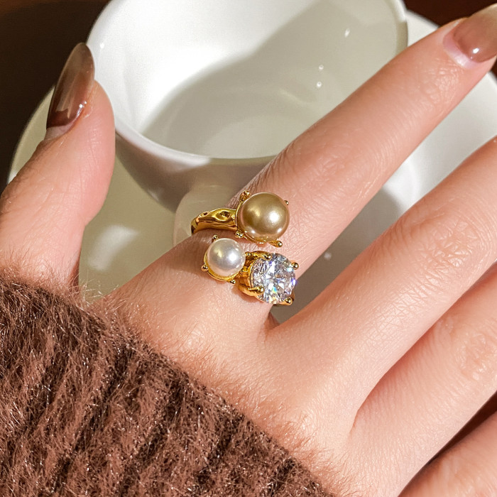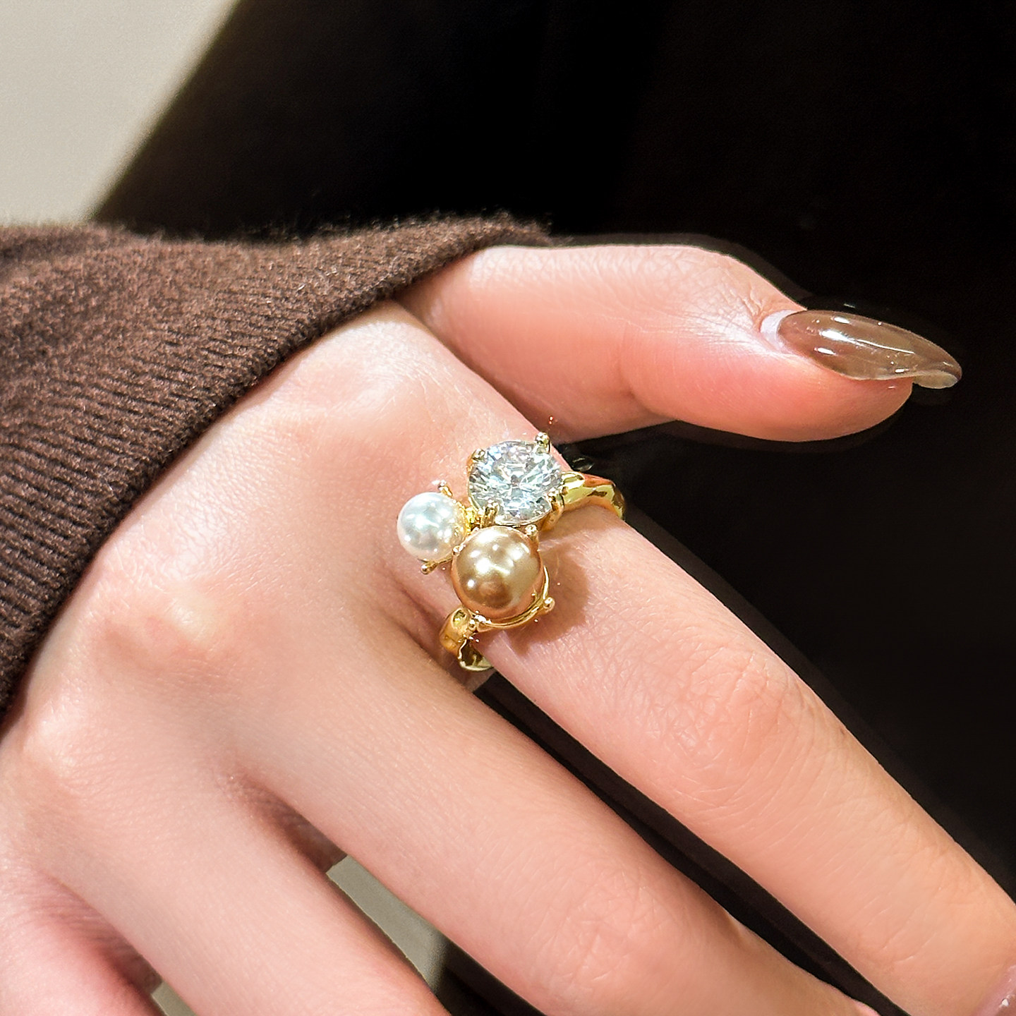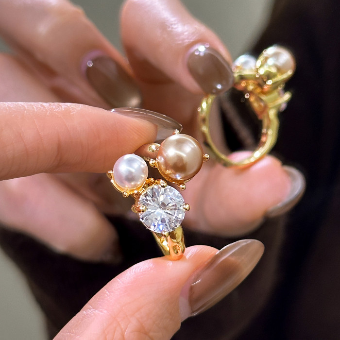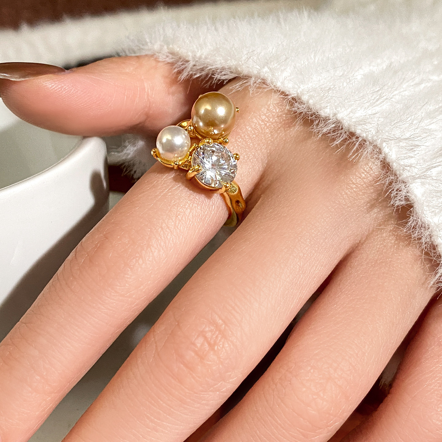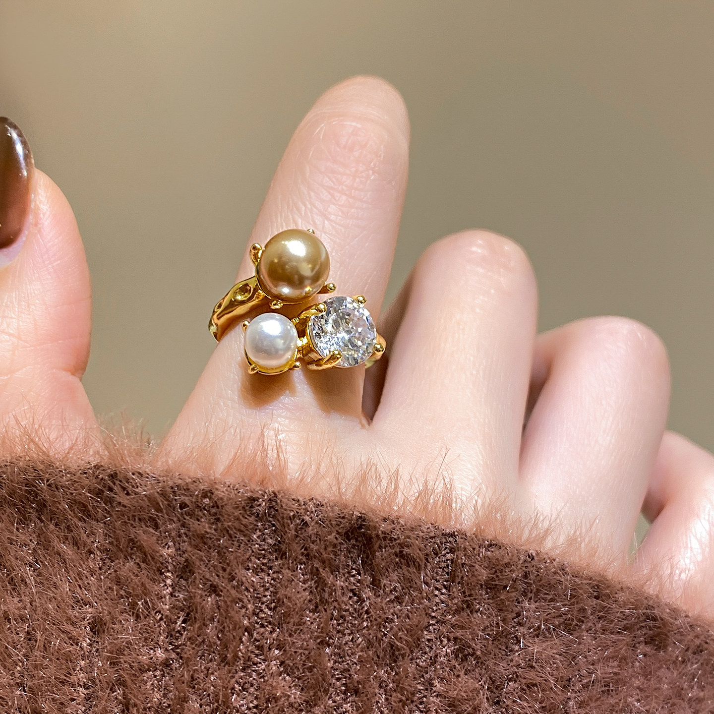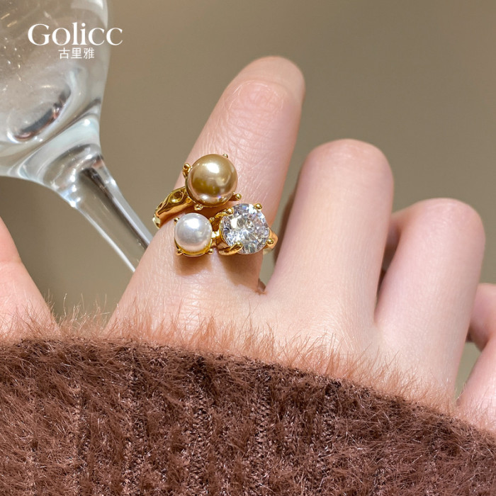 金色珍珠開口戒指女士輕奢高級感食指戒小衆設計指環巨好看的尾戒