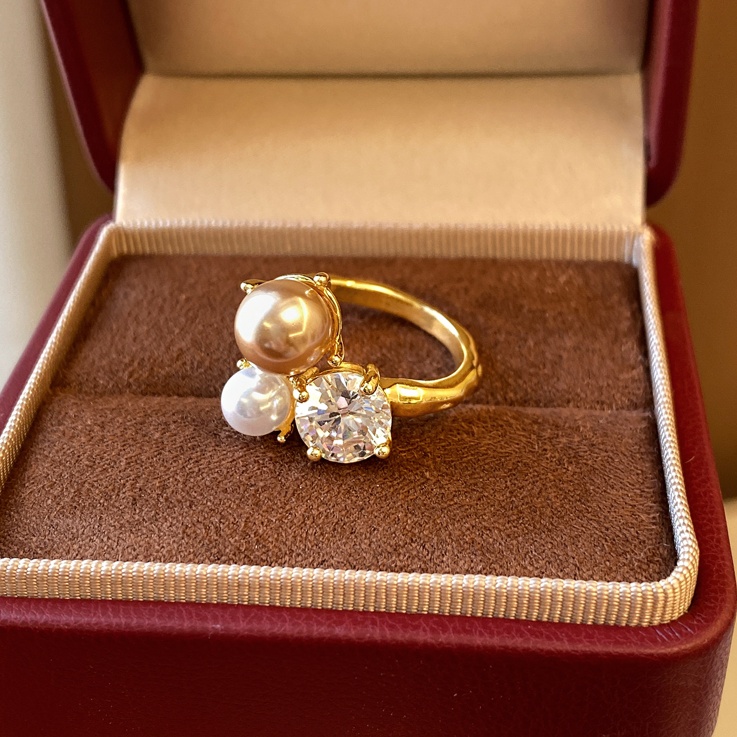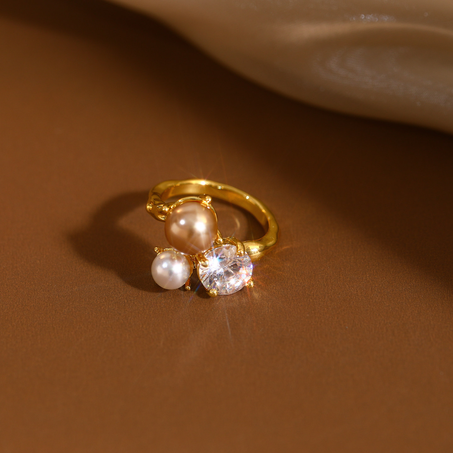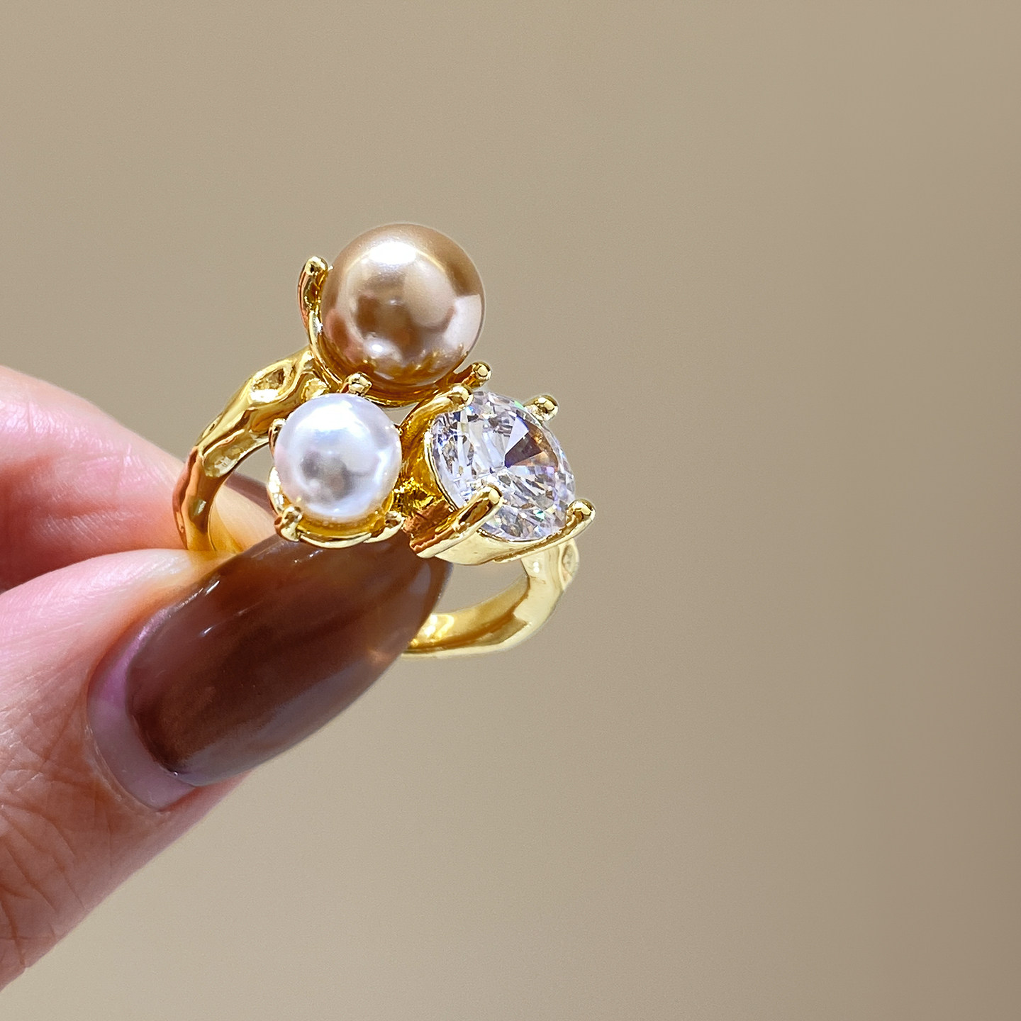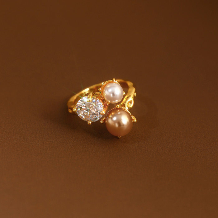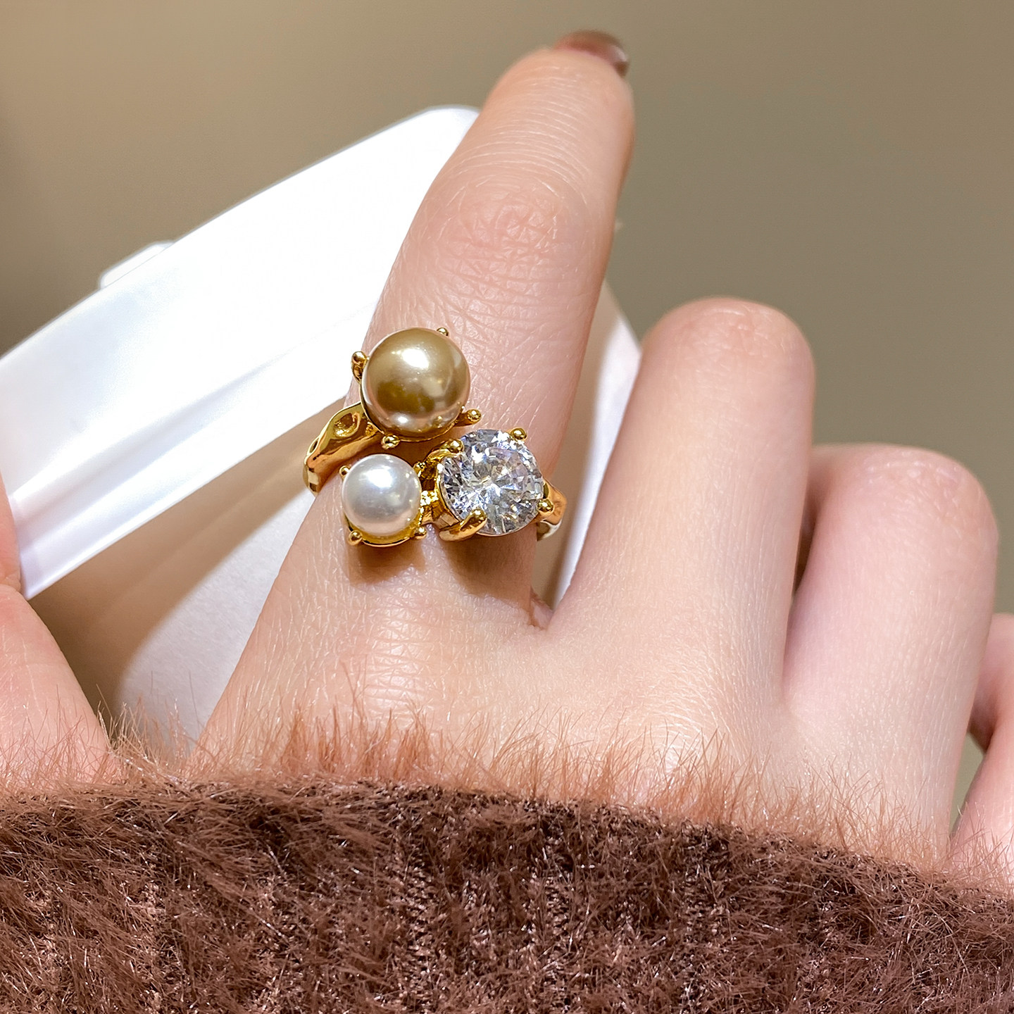 金色珍珠開口戒指女士輕奢高級感食指戒小衆設計指環巨好看的尾戒