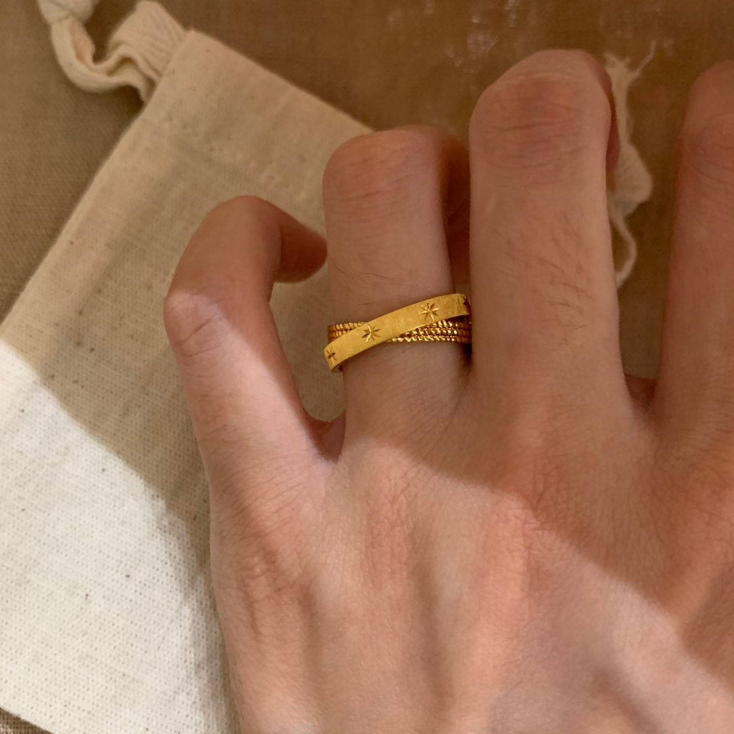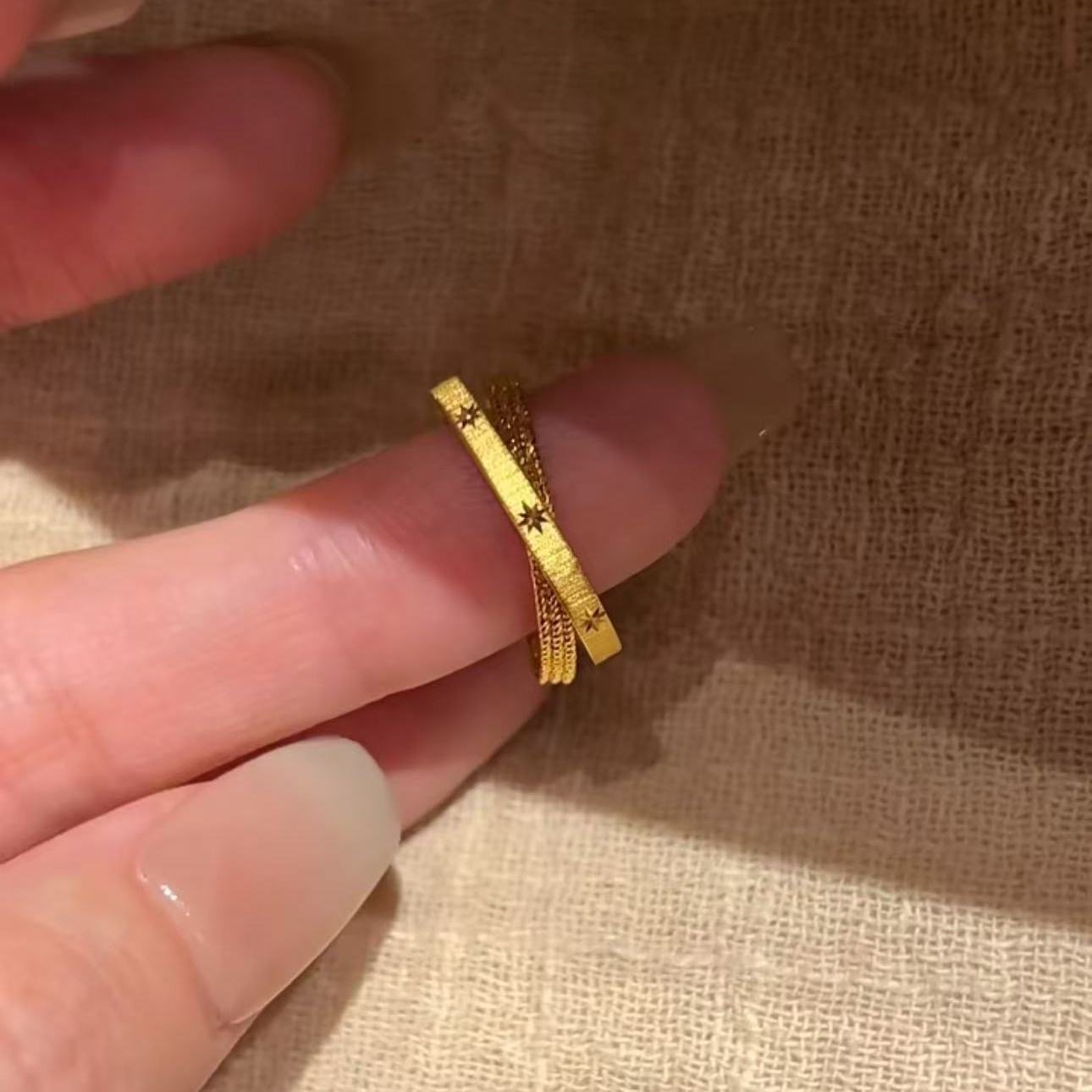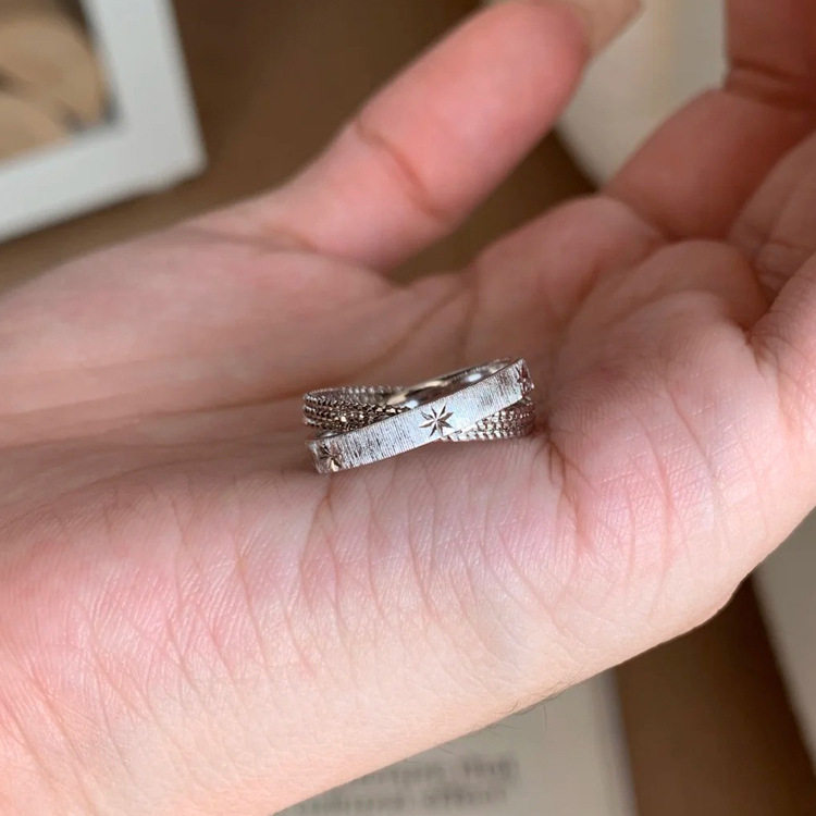 中古vintager超閃星芒雙環戒指女輕奢高級感食指戒小衆設計感指環