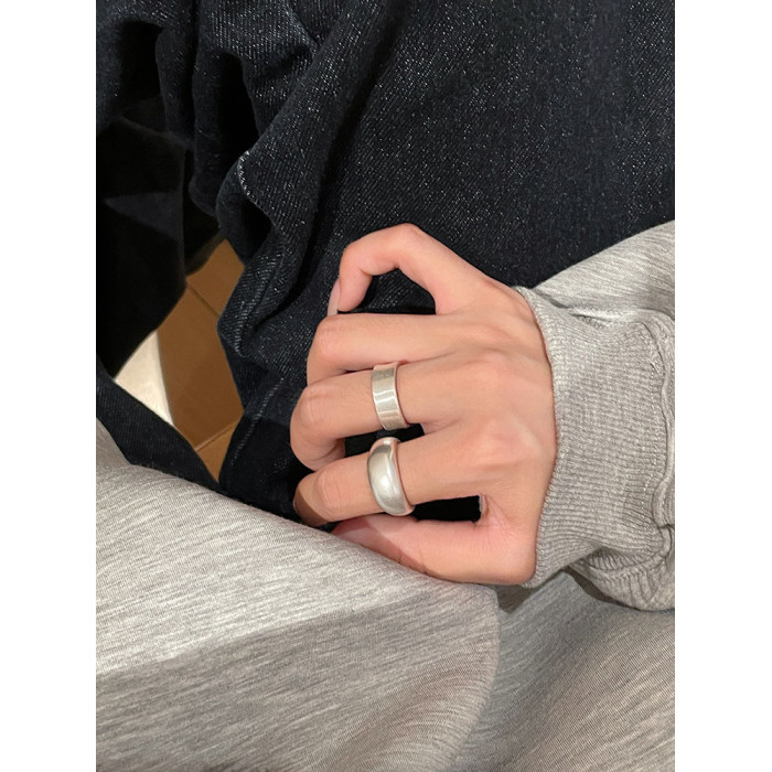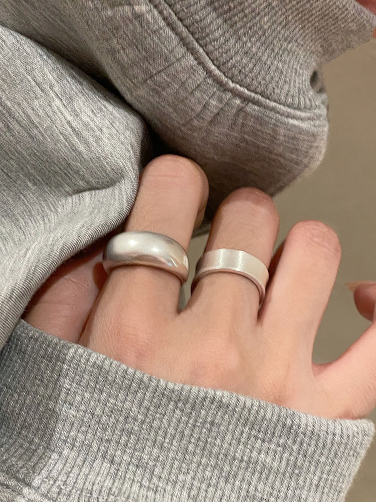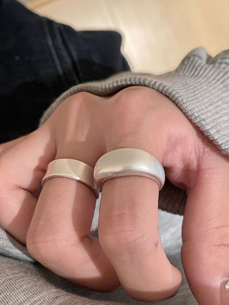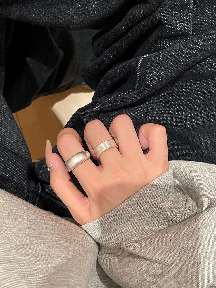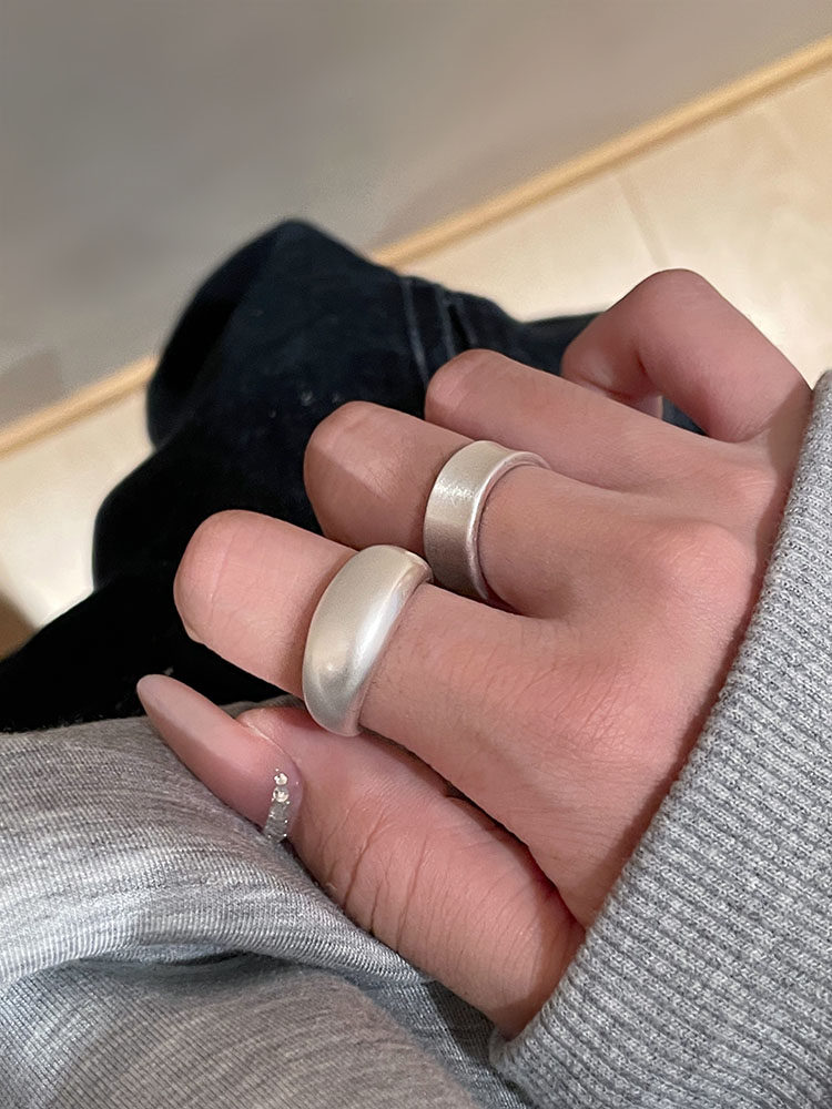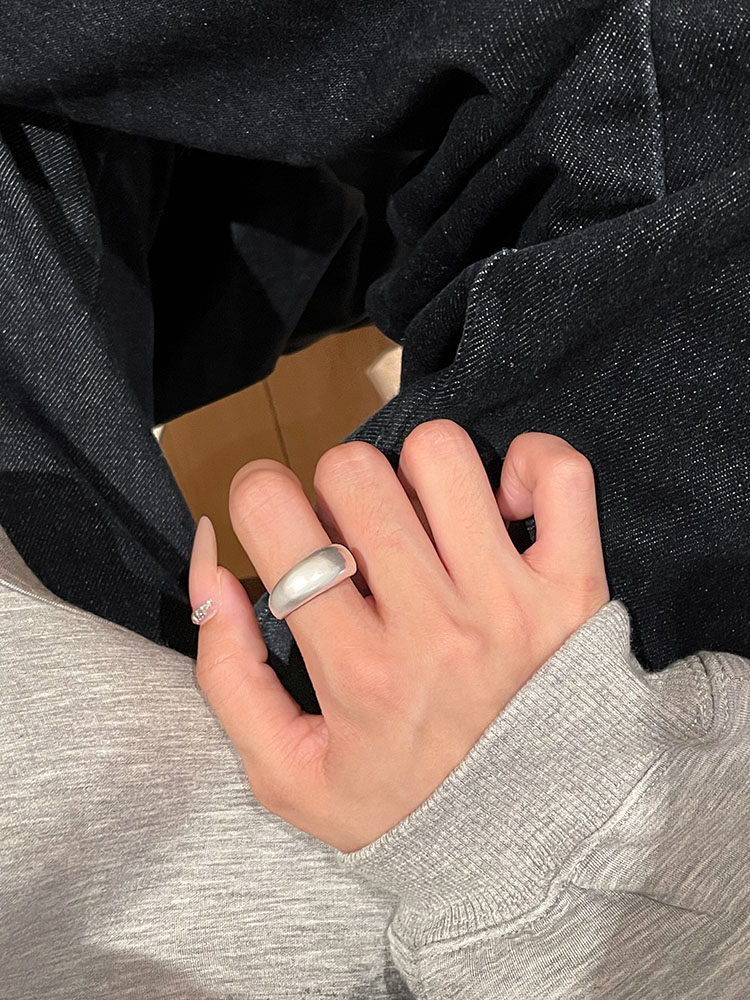TITI 極簡輕奢泥鰍背啞光銀色戒指素圈寬面開口ins小衆設計冷淡風