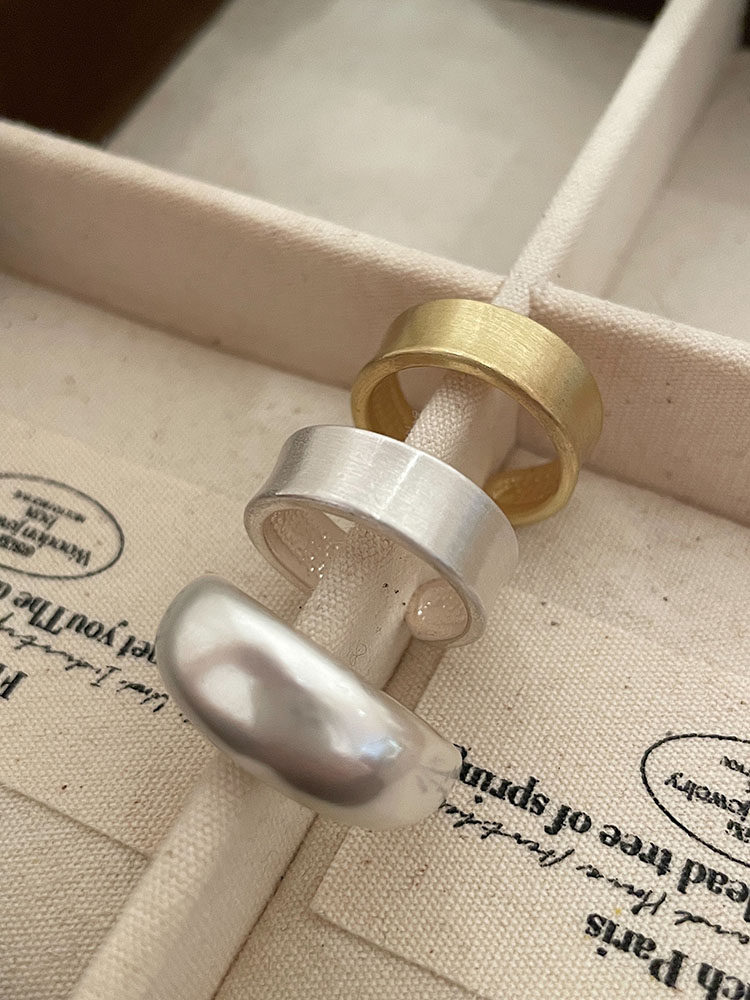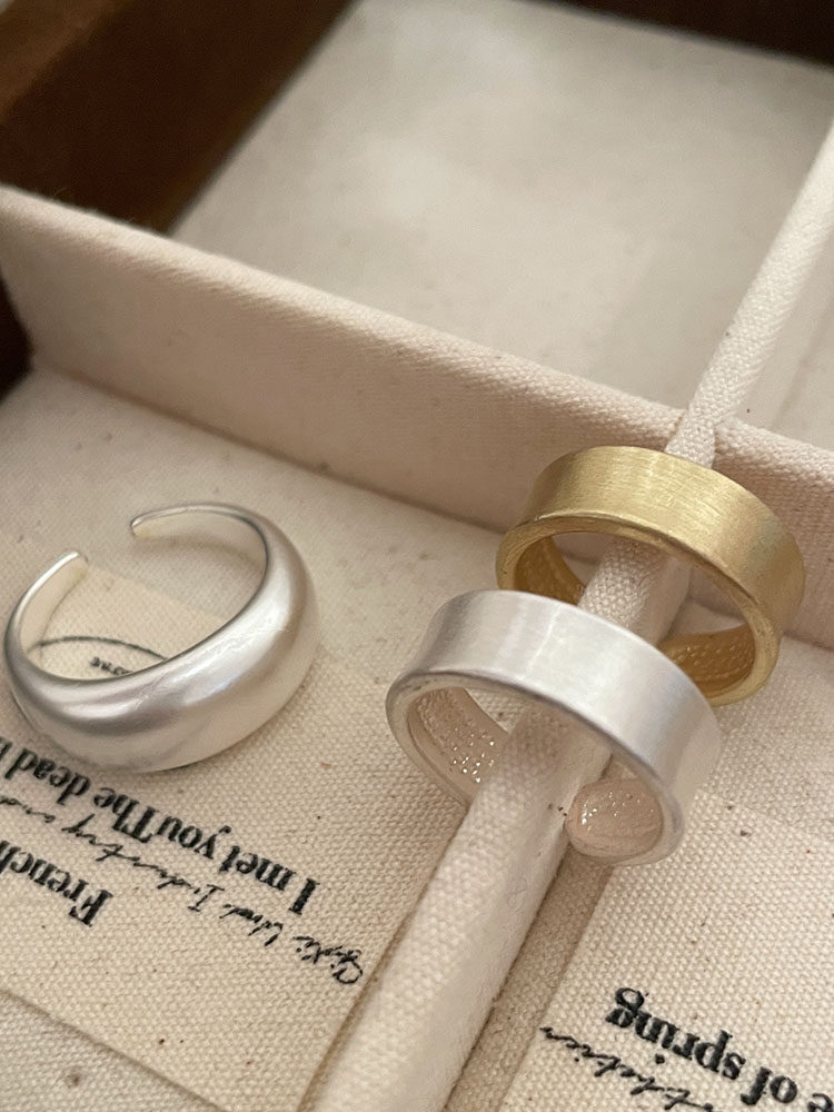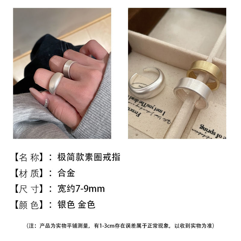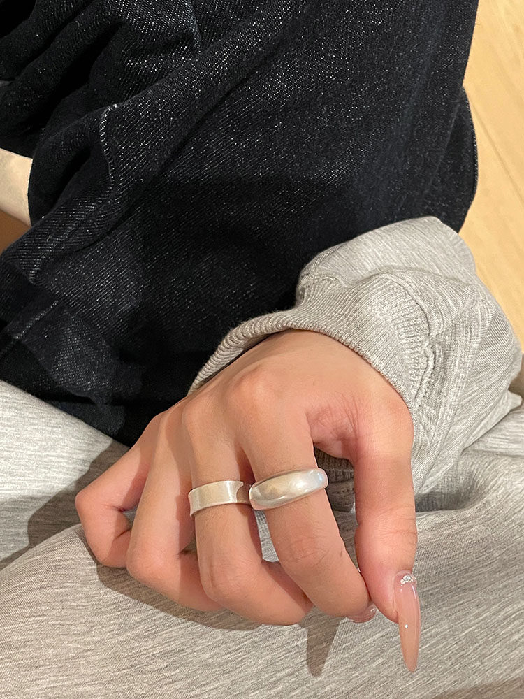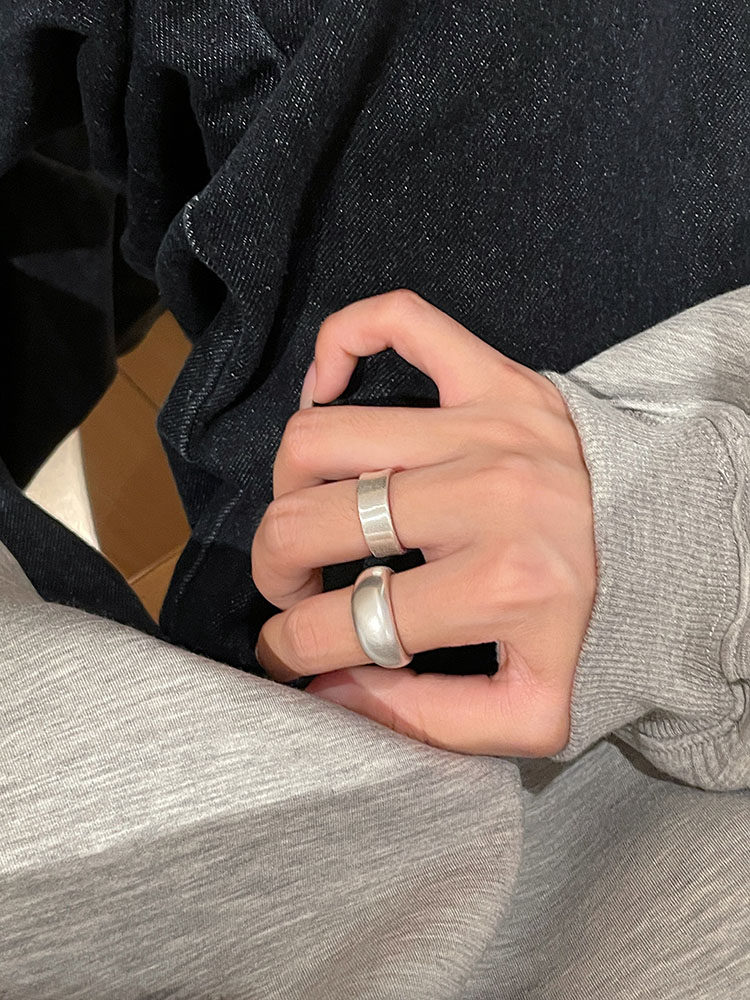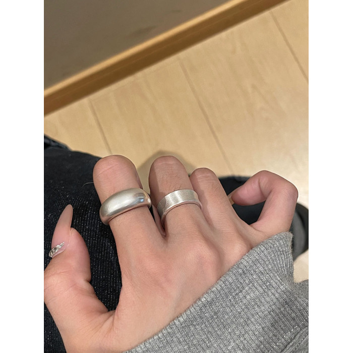 TITI 極簡輕奢泥鰍背啞光銀色戒指素圈寬面開口ins小衆設計冷淡風