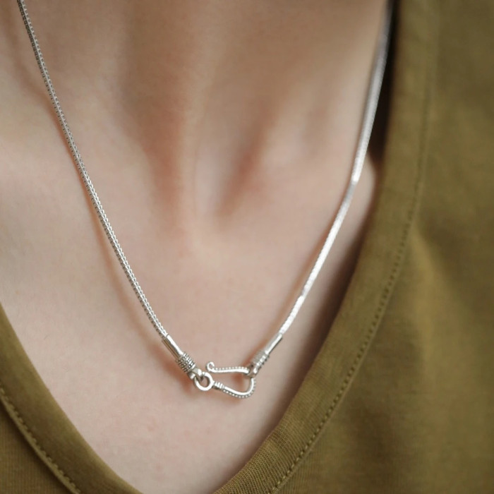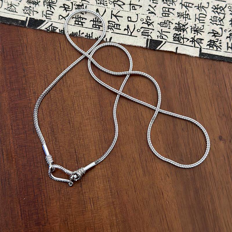925銀螺旋口50cm鎖骨毛衣鏈四方龍骨旋轉鉤子項鍊設計高級感簡約