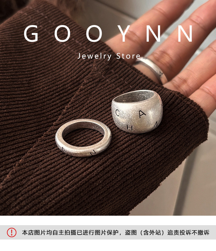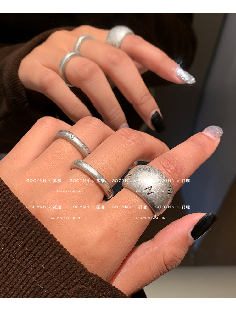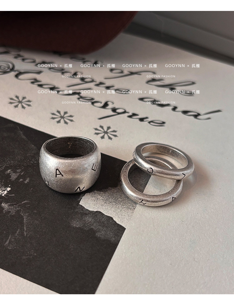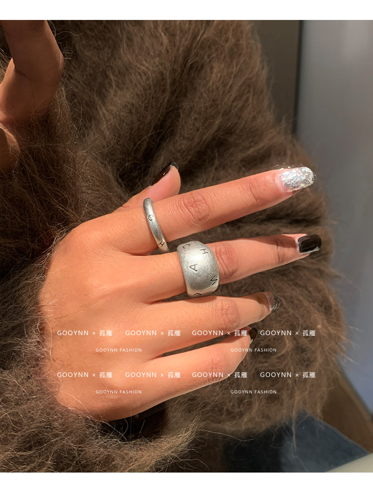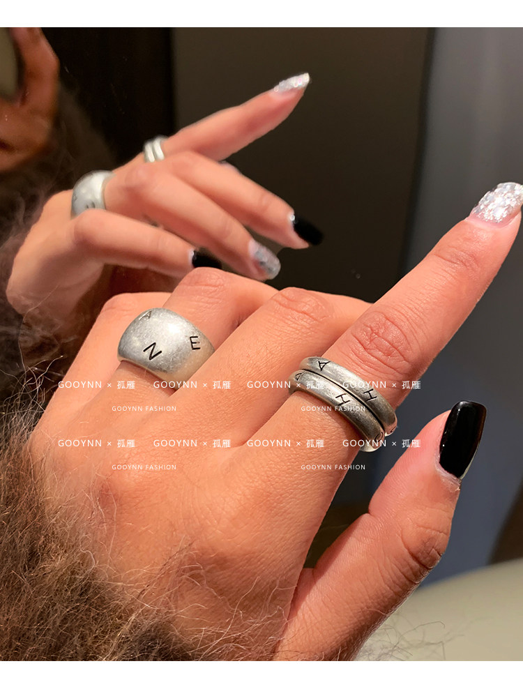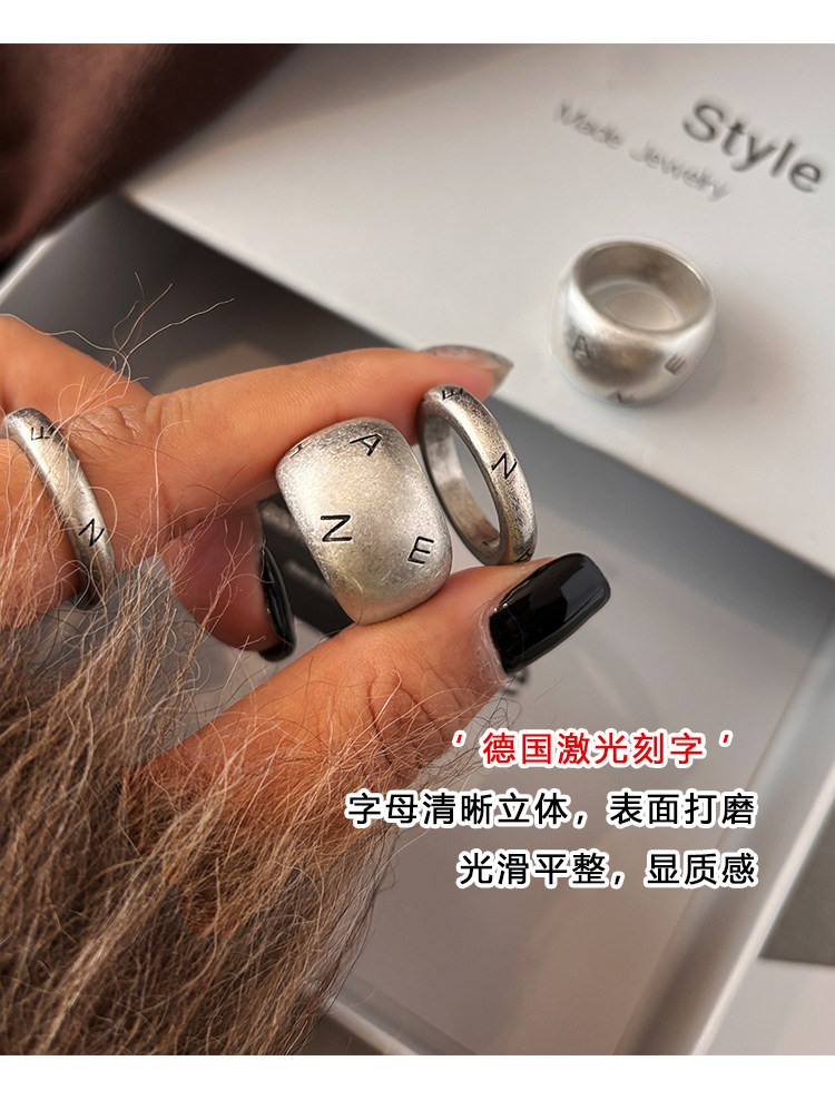 老錢風復古銀色戒指女輕奢小衆設計高級感中古食指戒情侶對戒指環