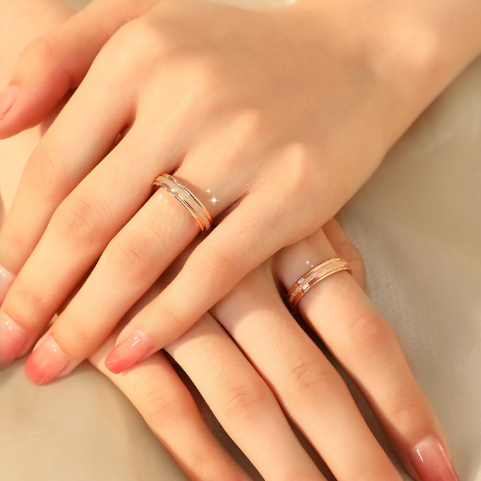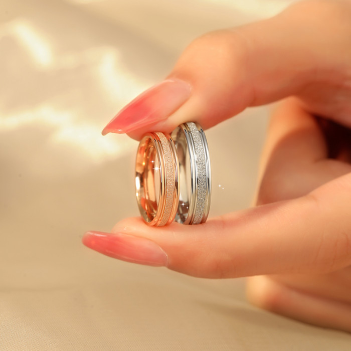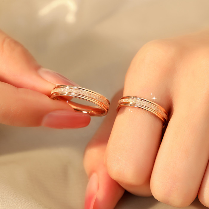 磨砂戒指素圈輕奢高級感尾戒小衆設計指環關節18k玫瑰金情侶男女