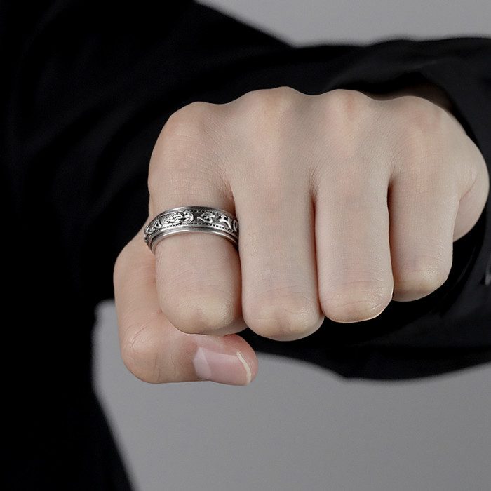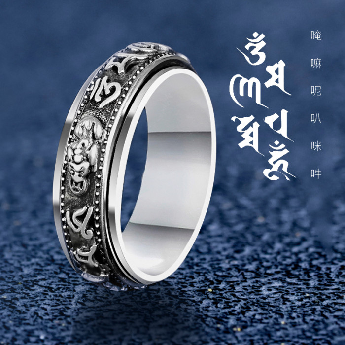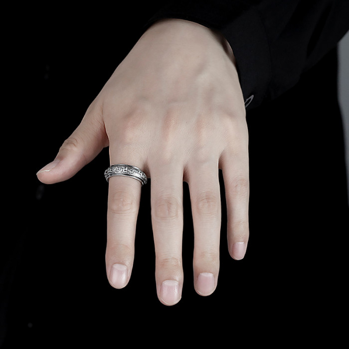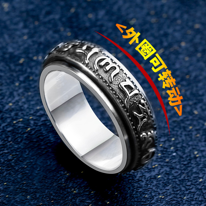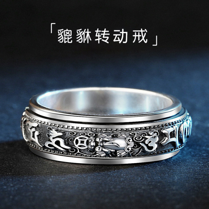 貔貅可轉動鈦鋼戒指男潮高級感單身潮流個性復古食指指環小衆女生