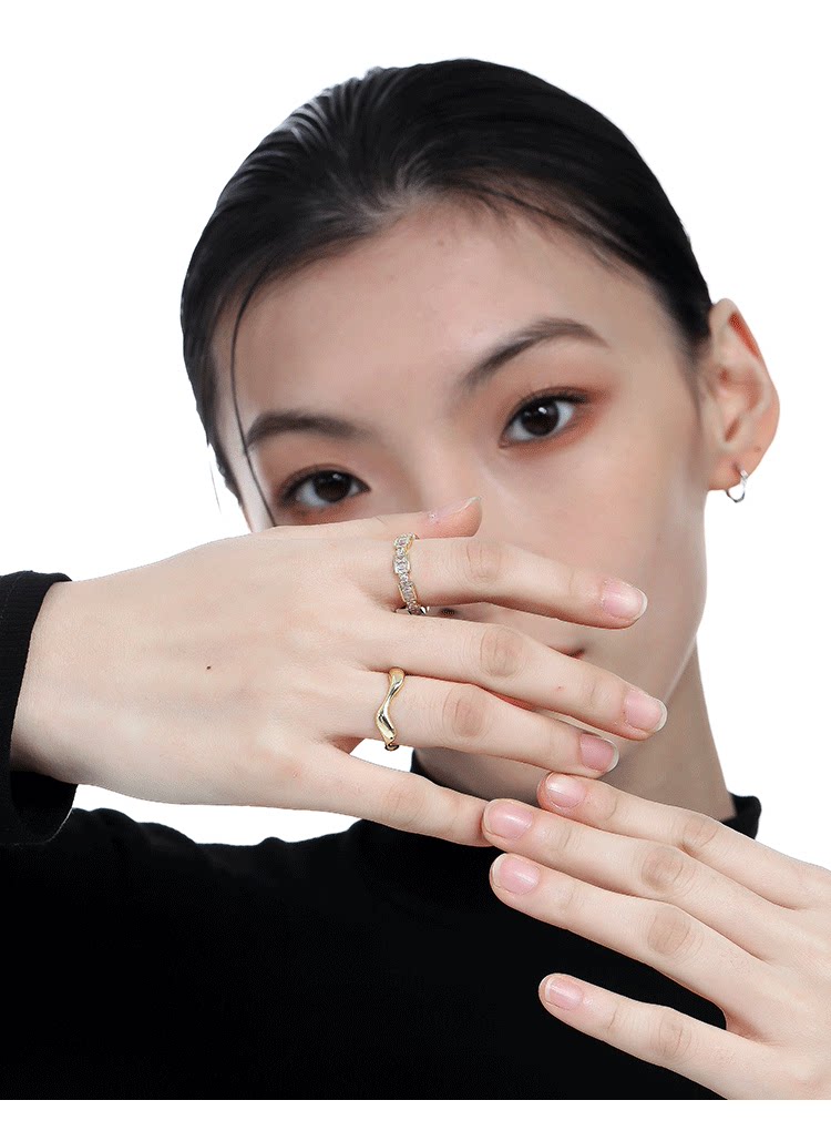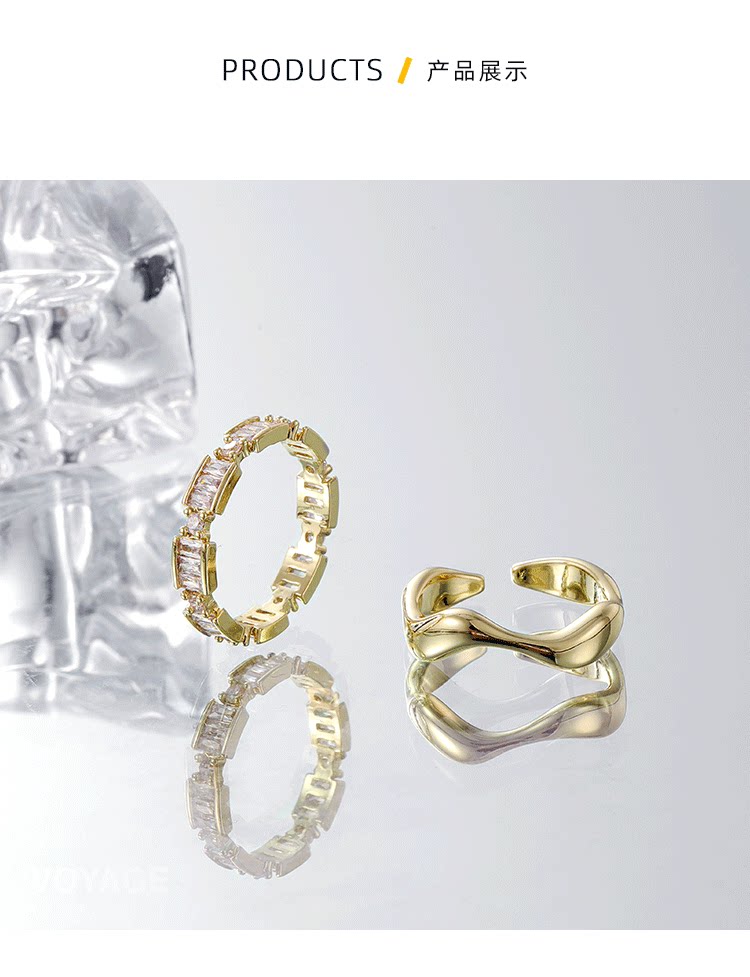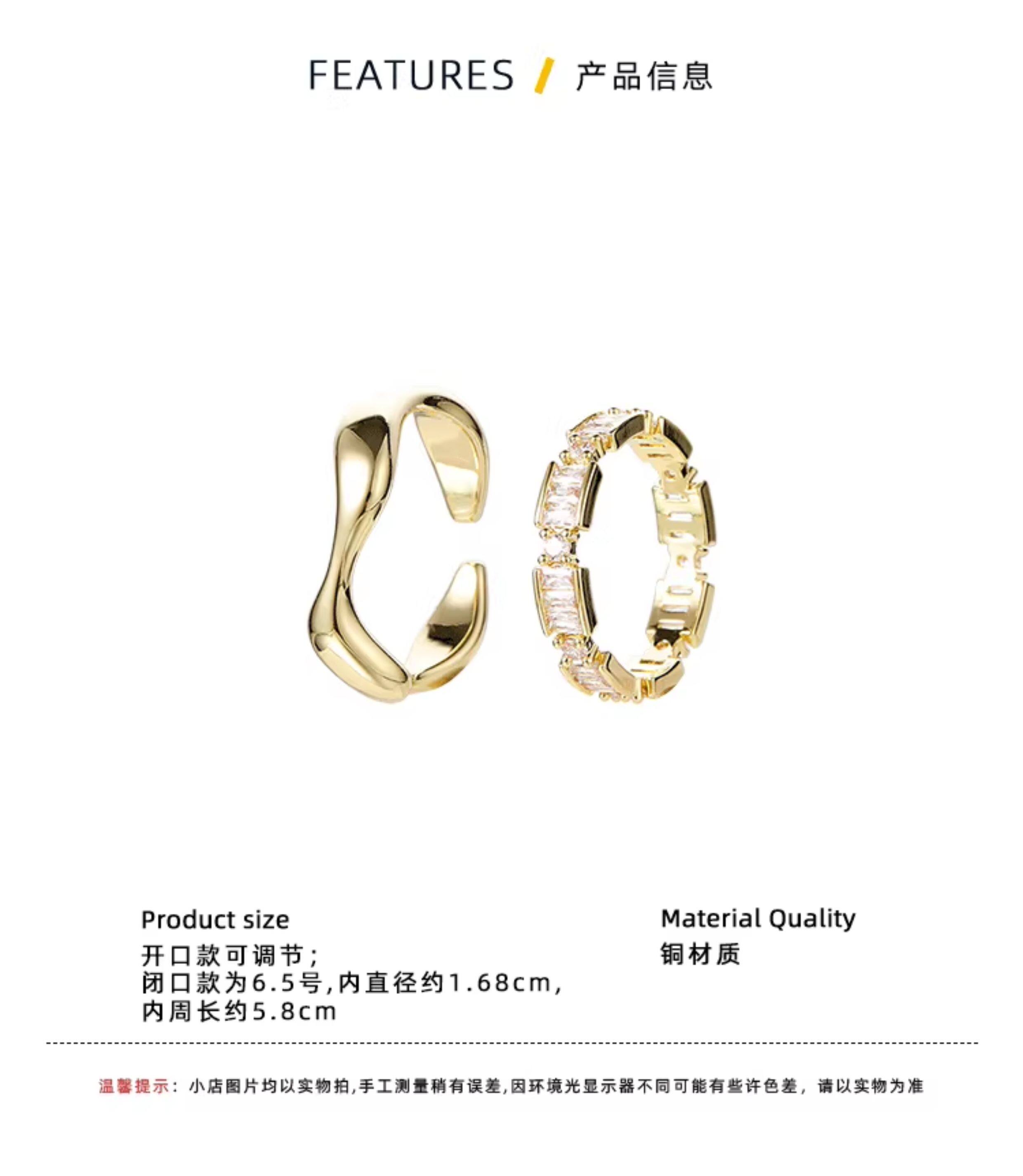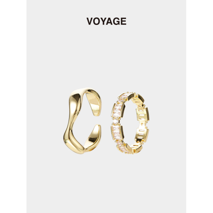 VOYAGE兩件套輕奢金色戒指女小衆設計高級感食指女生指環對戒情侶