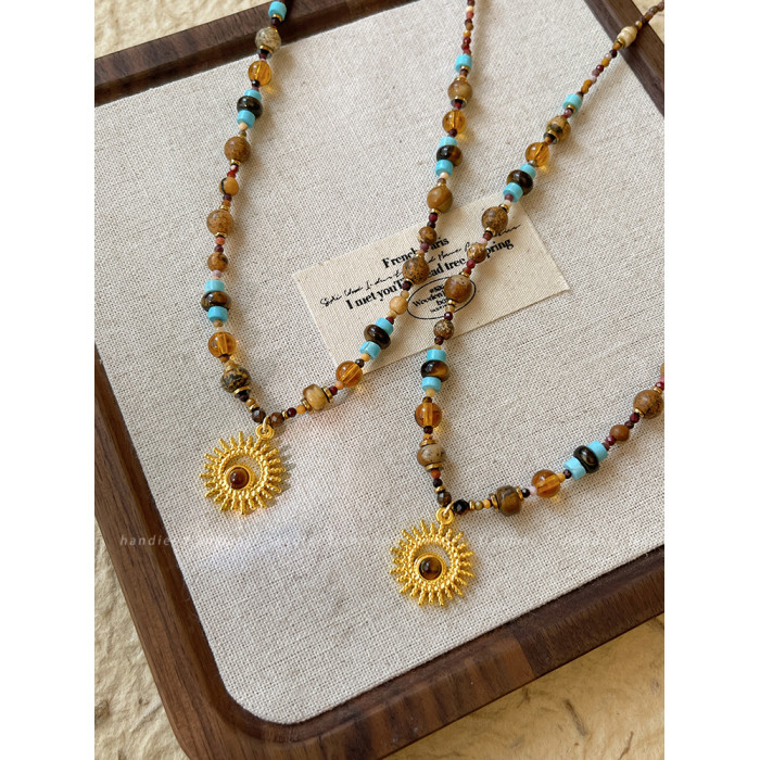 波西米亞串珠小衆項鍊女2025新款吊墜高級感輕奢鎖骨鍊頸鏈配飾秋