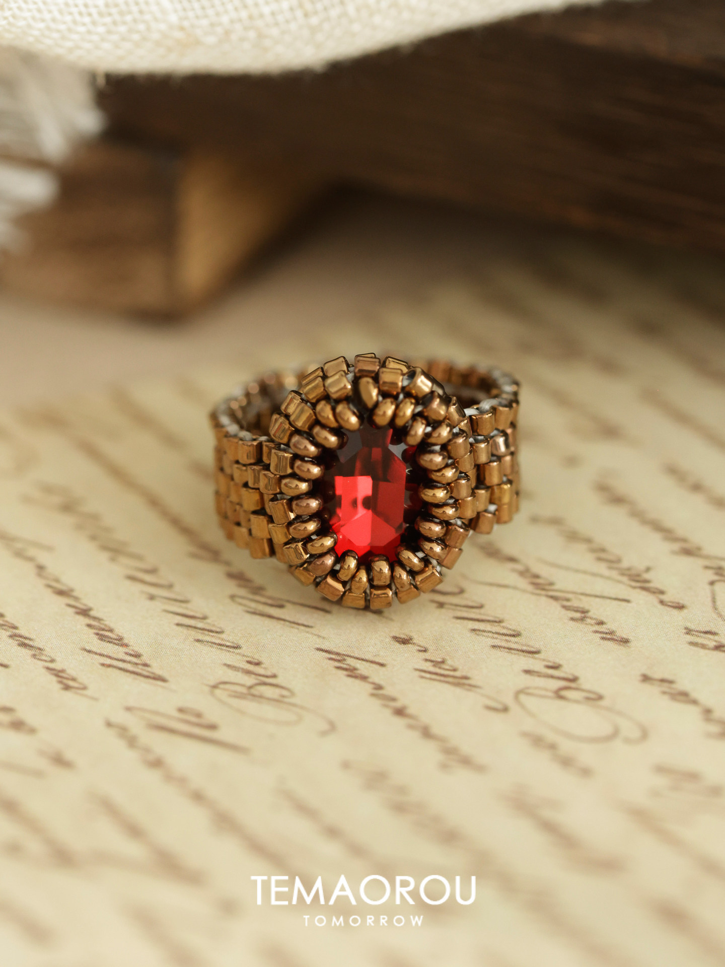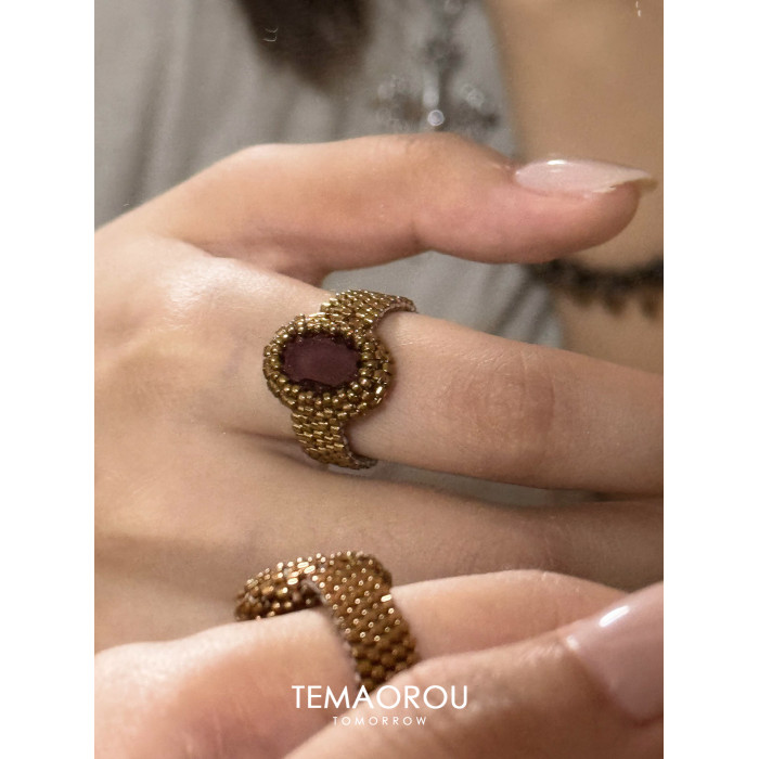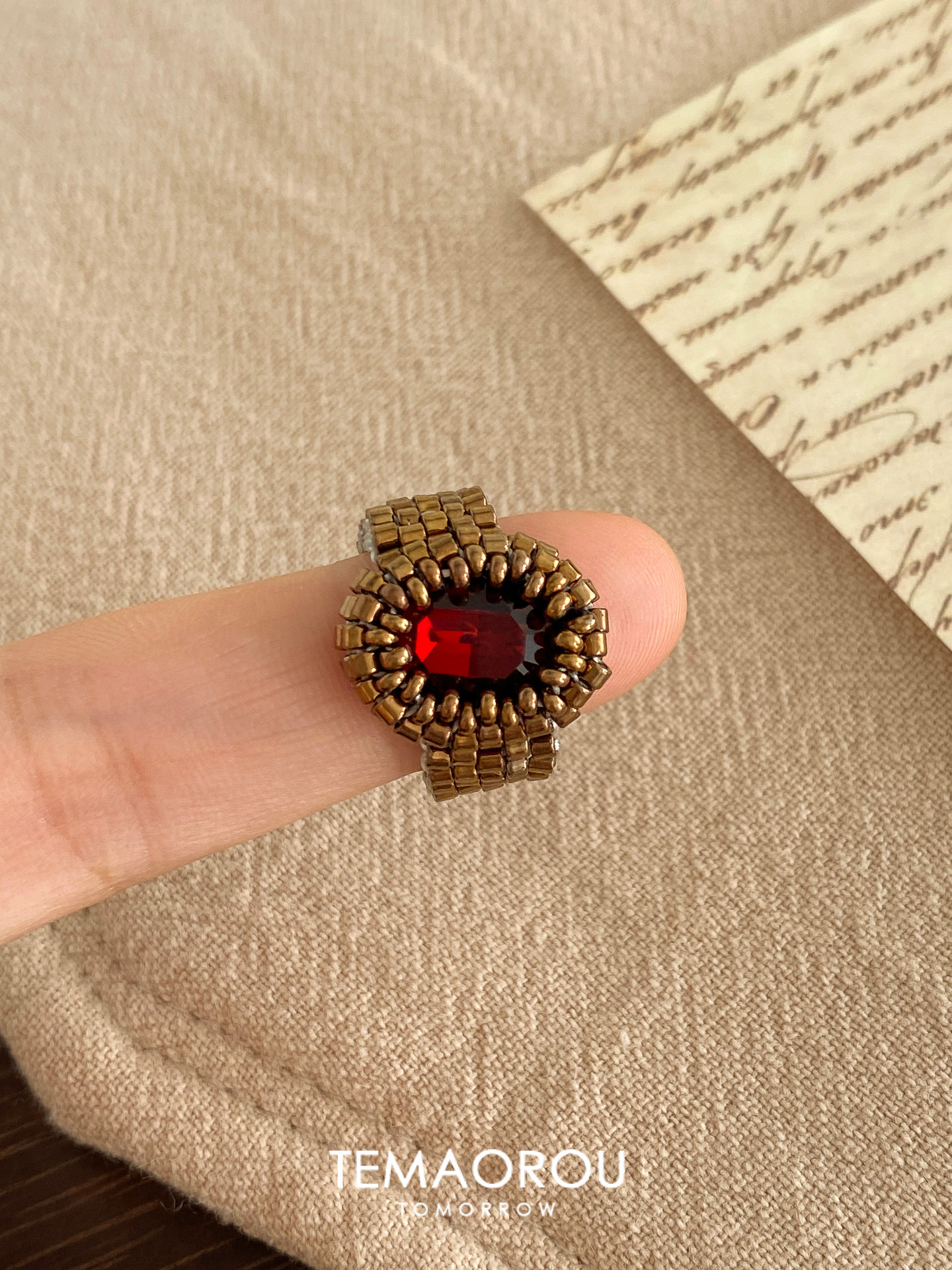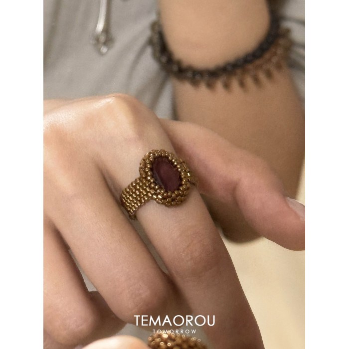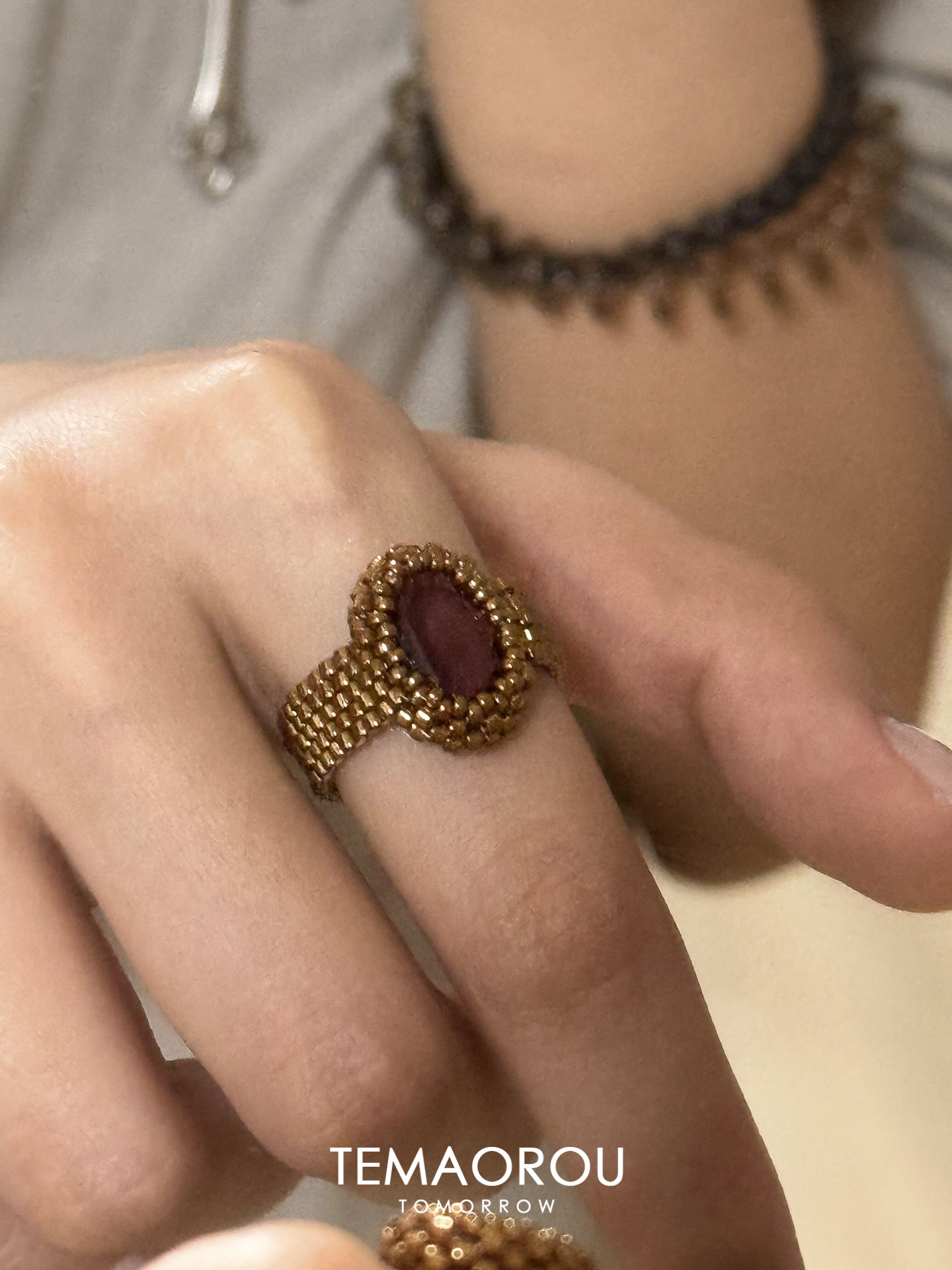 手作!編織串珠紅寶石戒指設計感輕奢不撞款手飾春夏新款指環食指