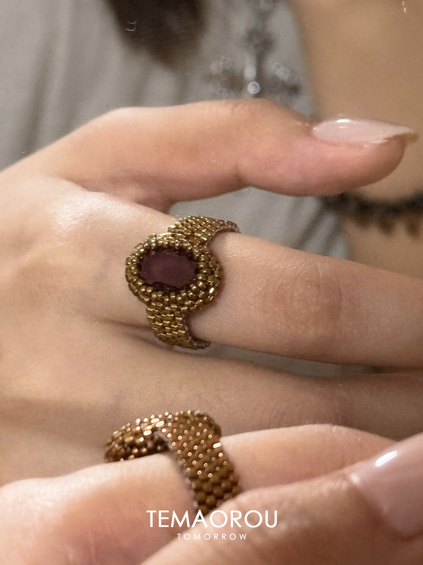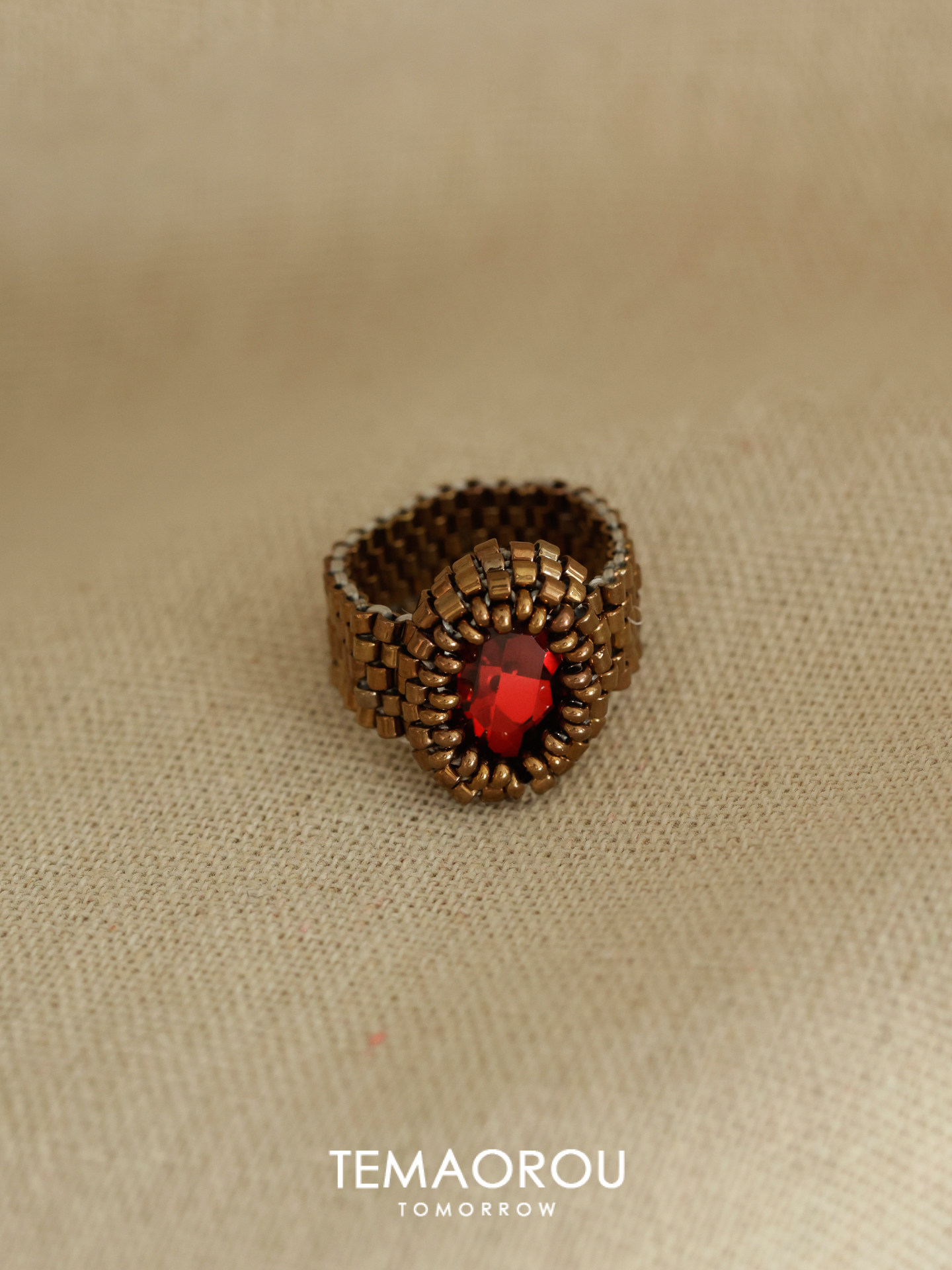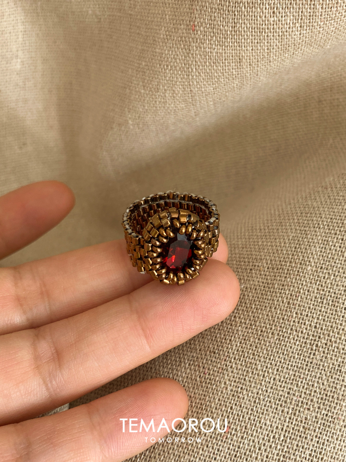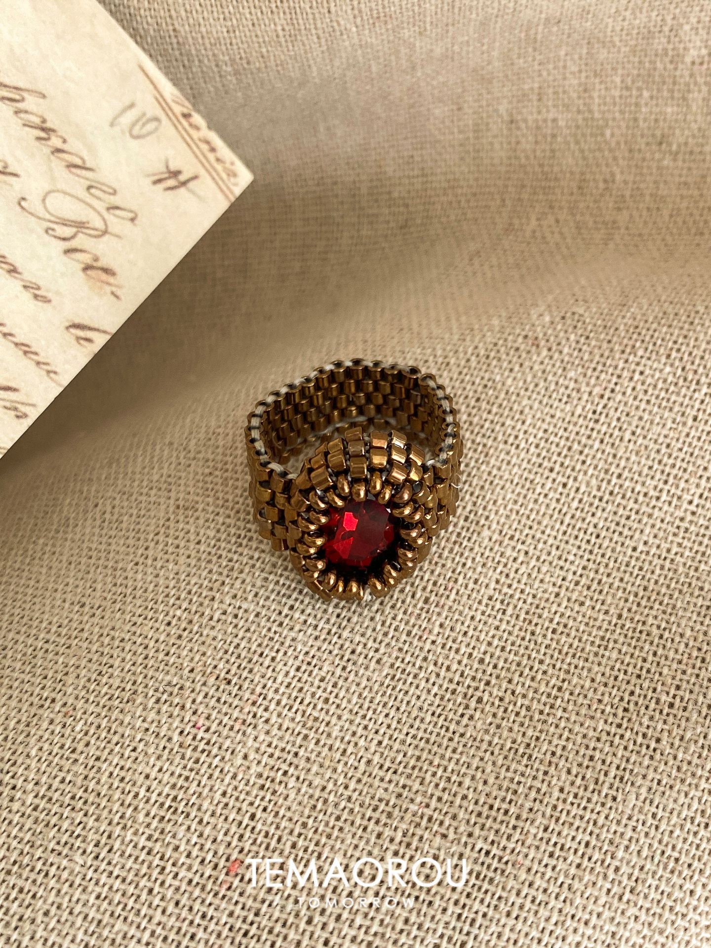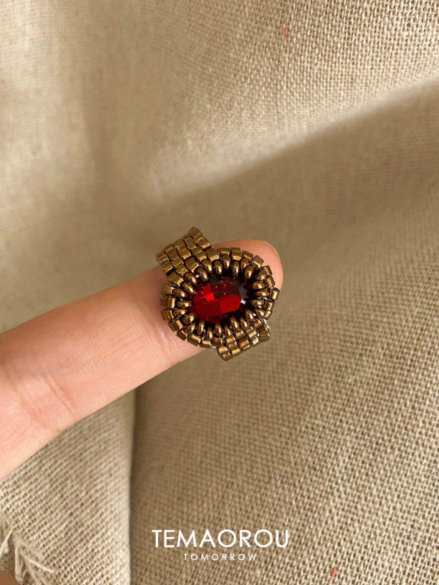 手作!編織串珠紅寶石戒指設計感輕奢不撞款手飾春夏新款指環食指