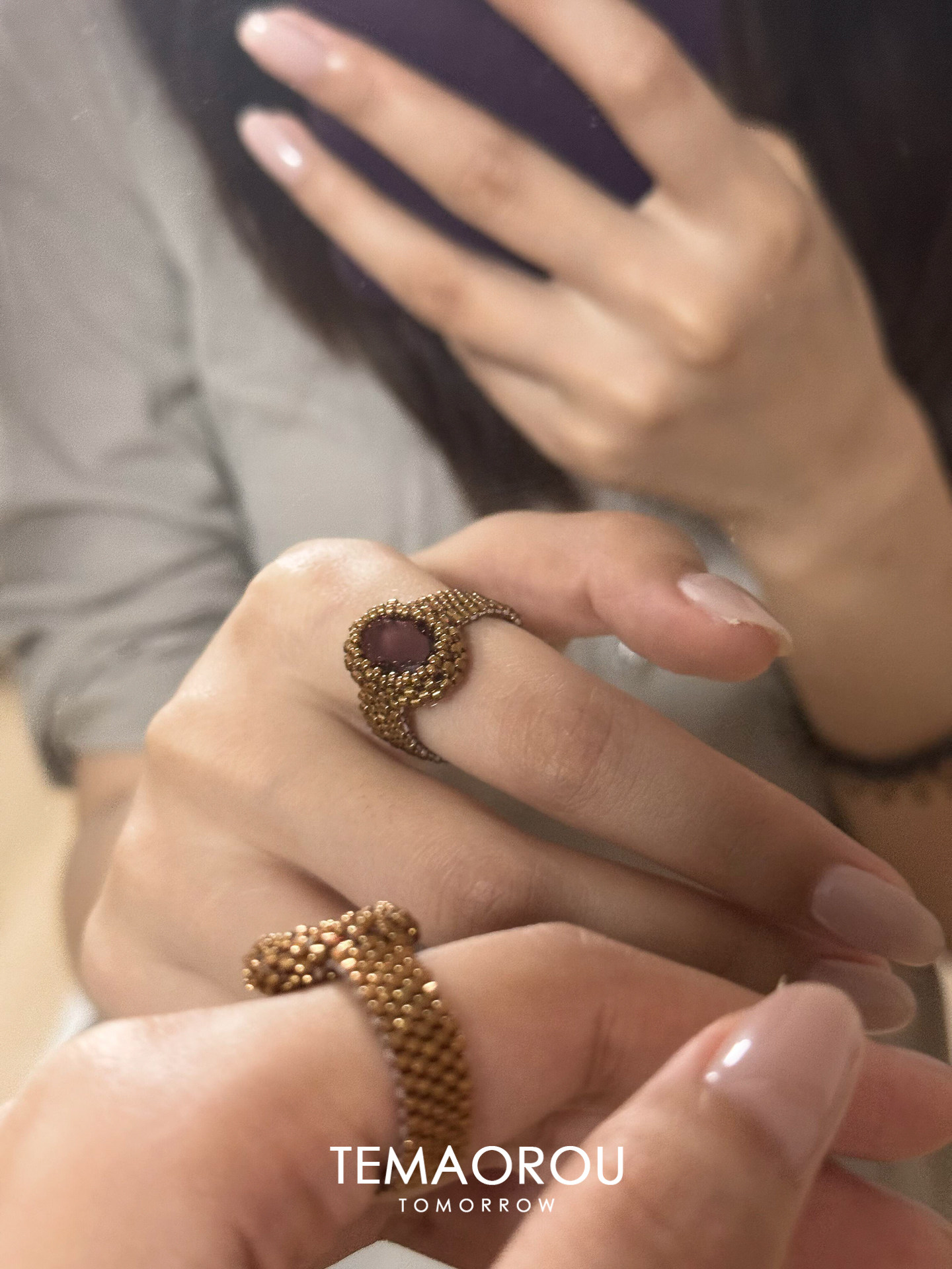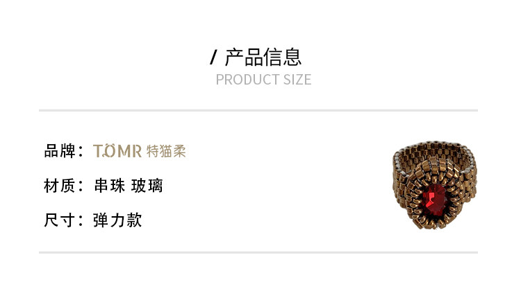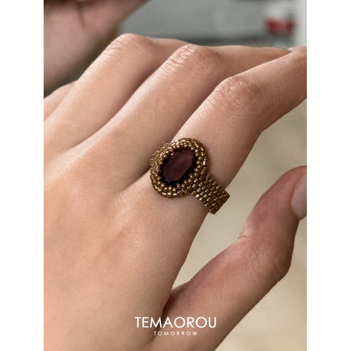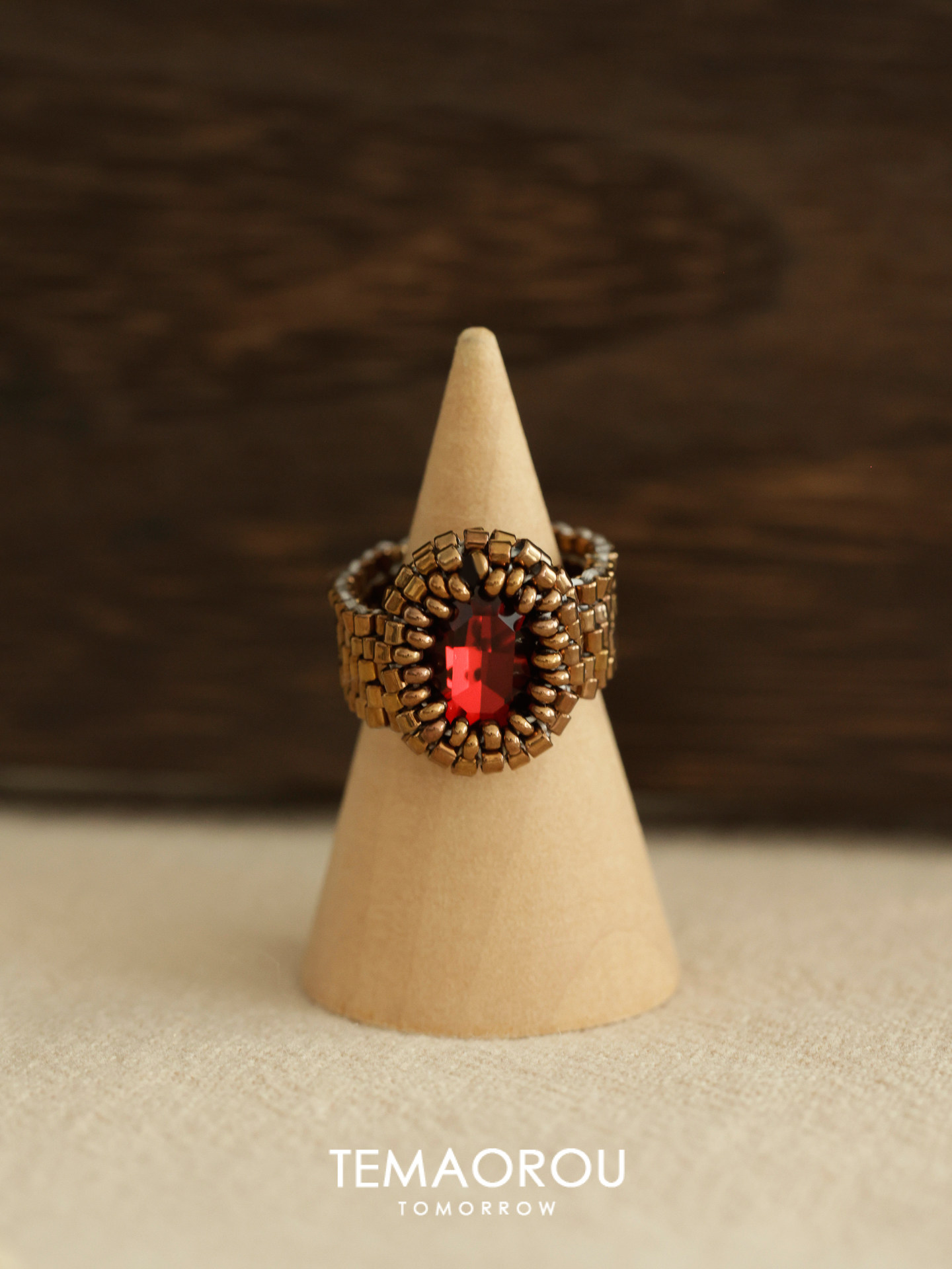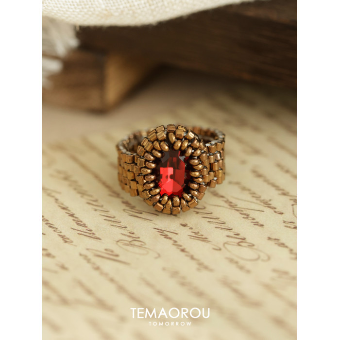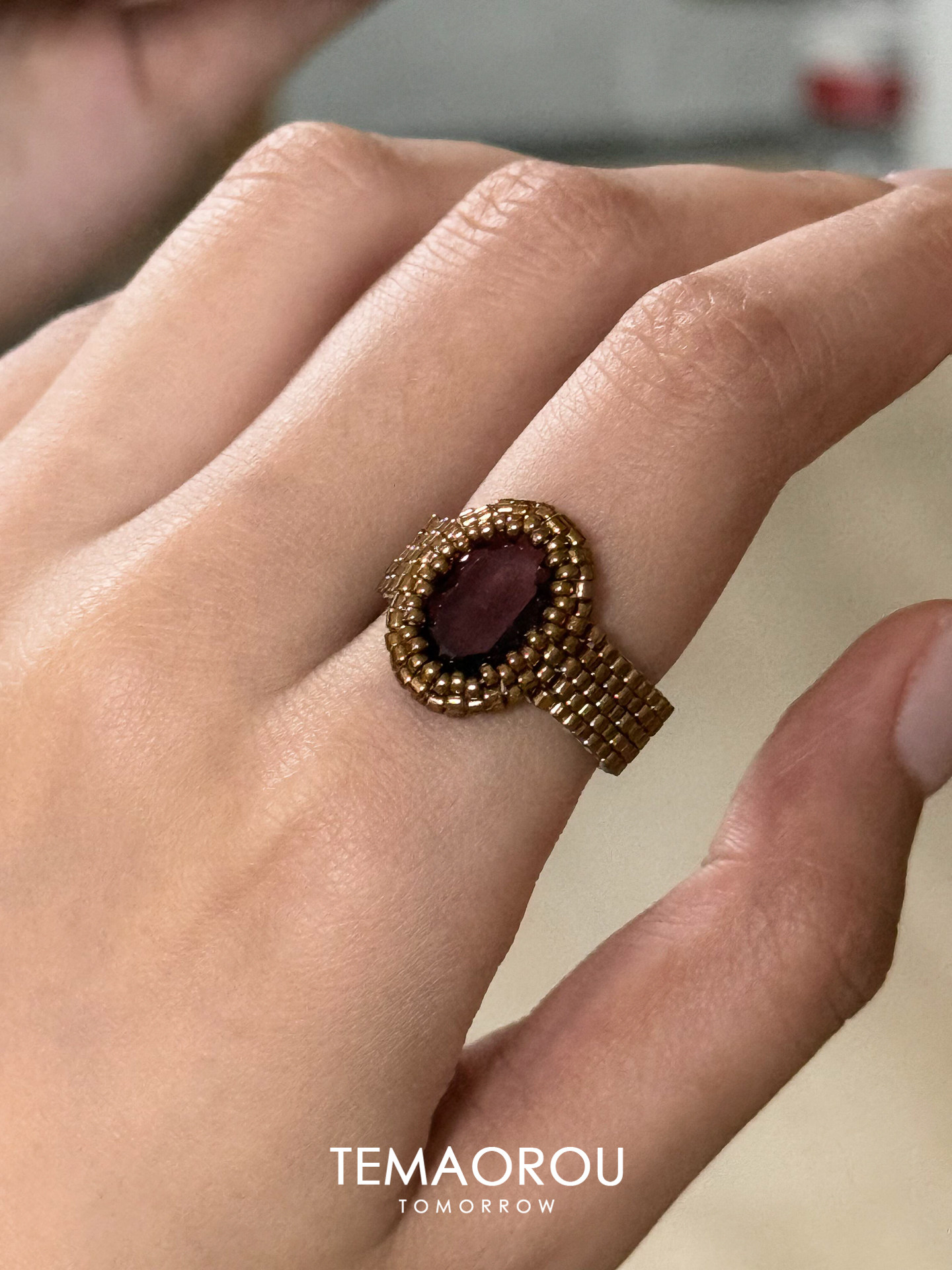 手作!編織串珠紅寶石戒指設計感輕奢不撞款手飾春夏新款指環食指