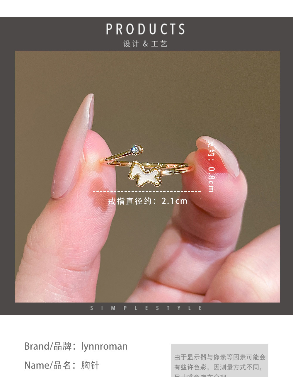LYNNROMAN小馬駒戒指女高級輕奢精緻時尚氣質百搭開口食指戒指環