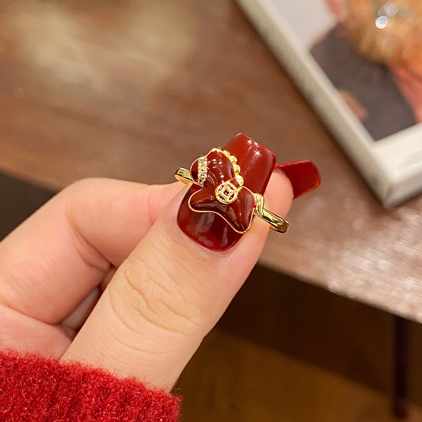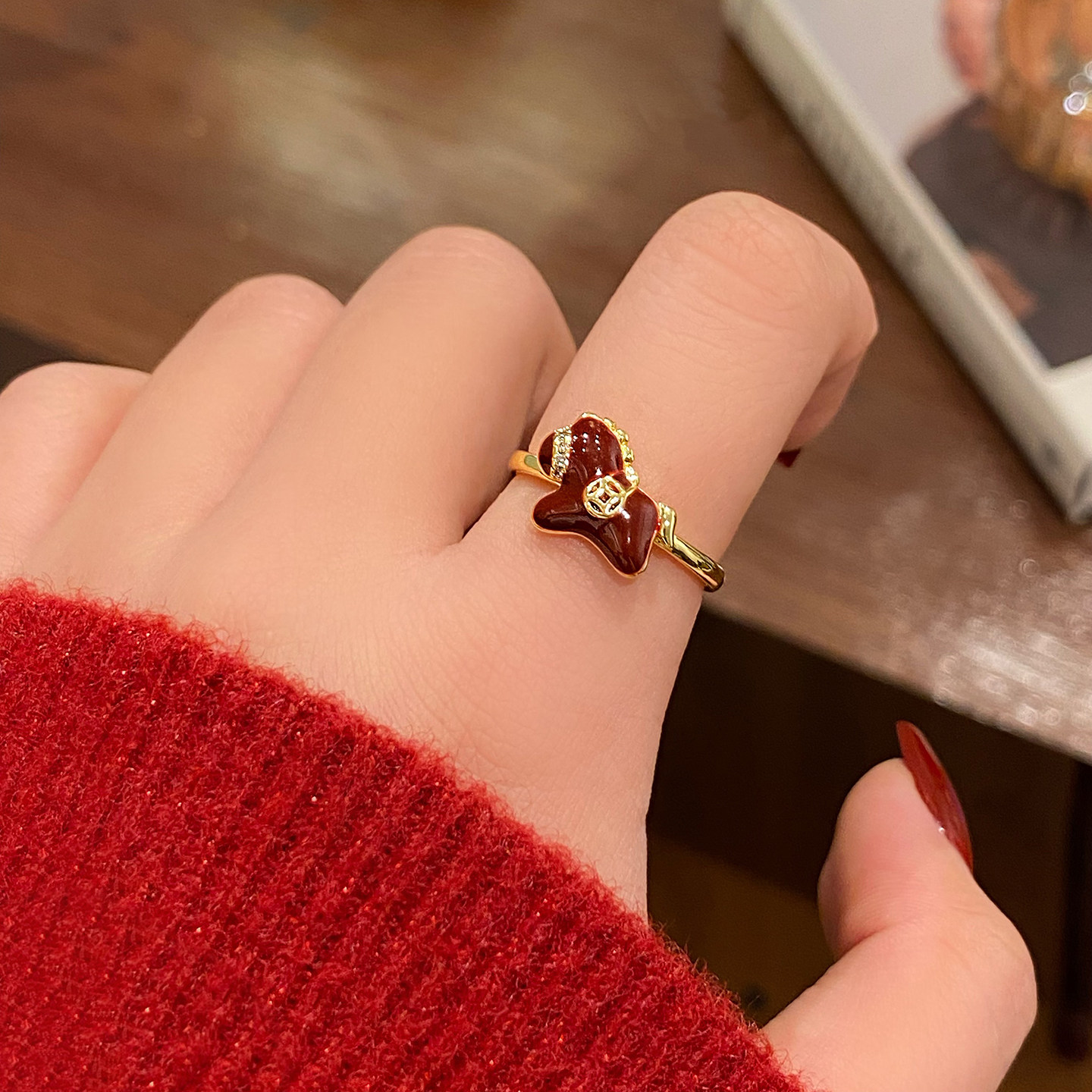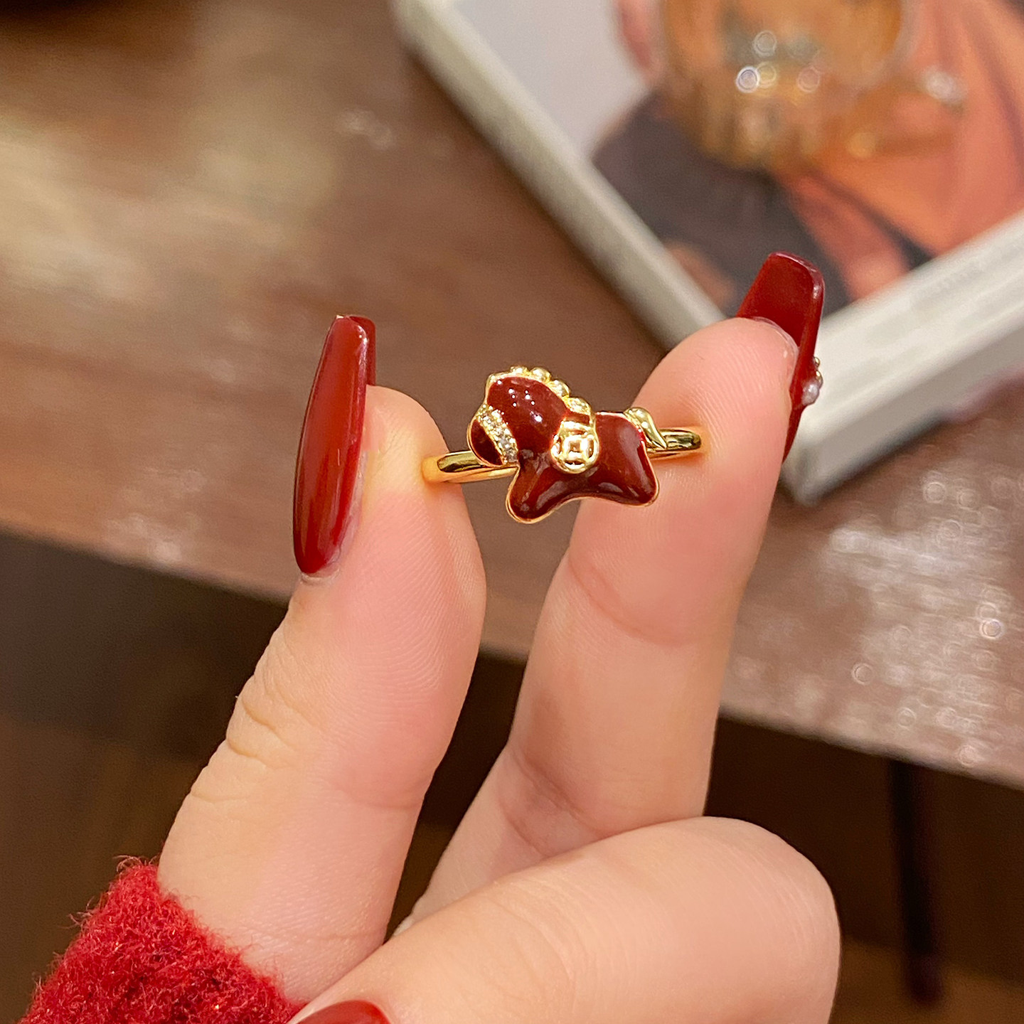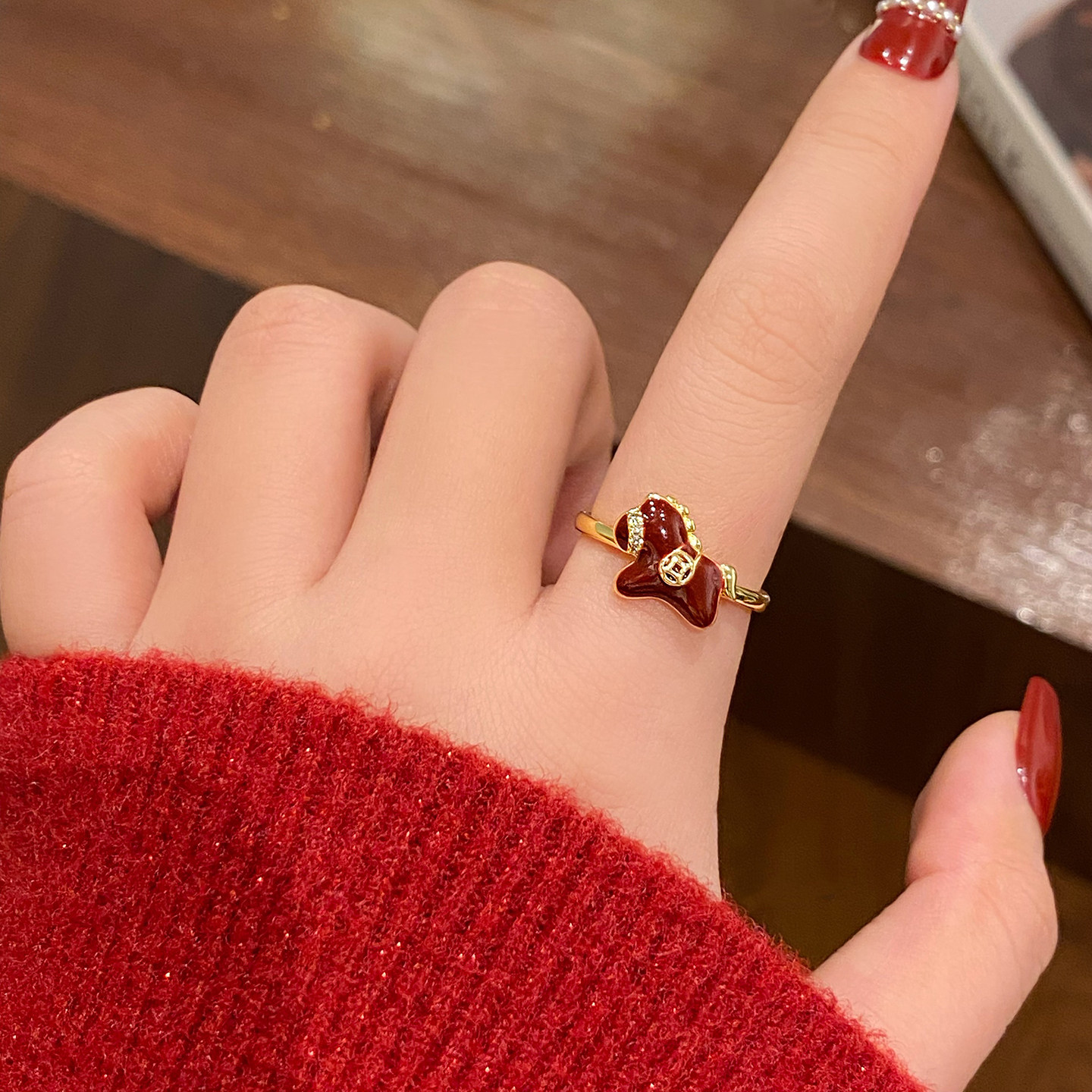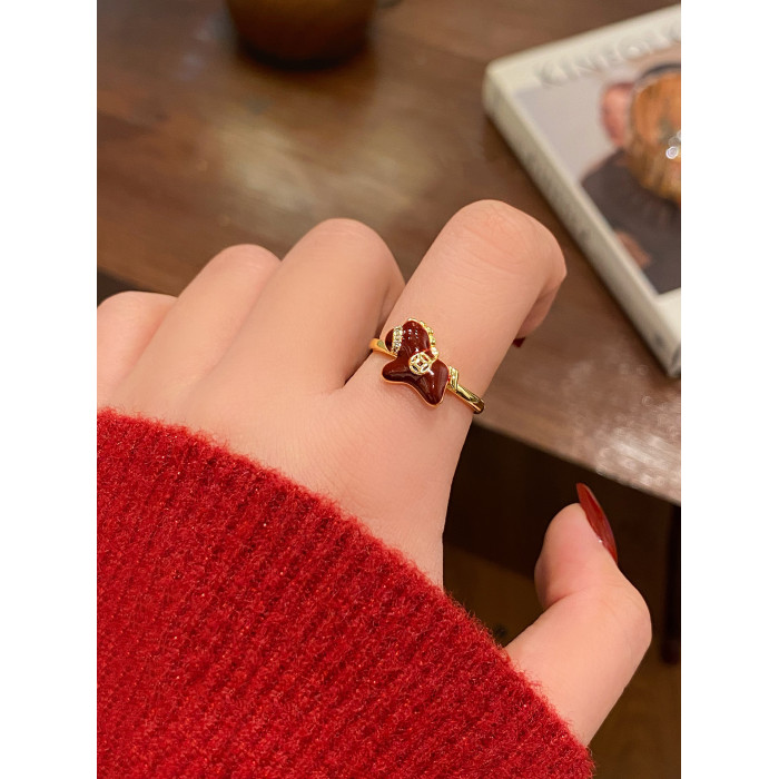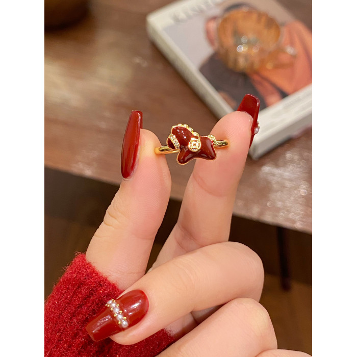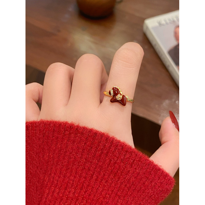 紅色生肖小馬開口新年戒指女馬年本命年指環小衆設計百搭食指戒