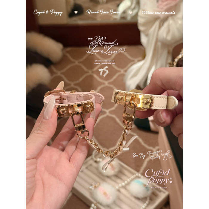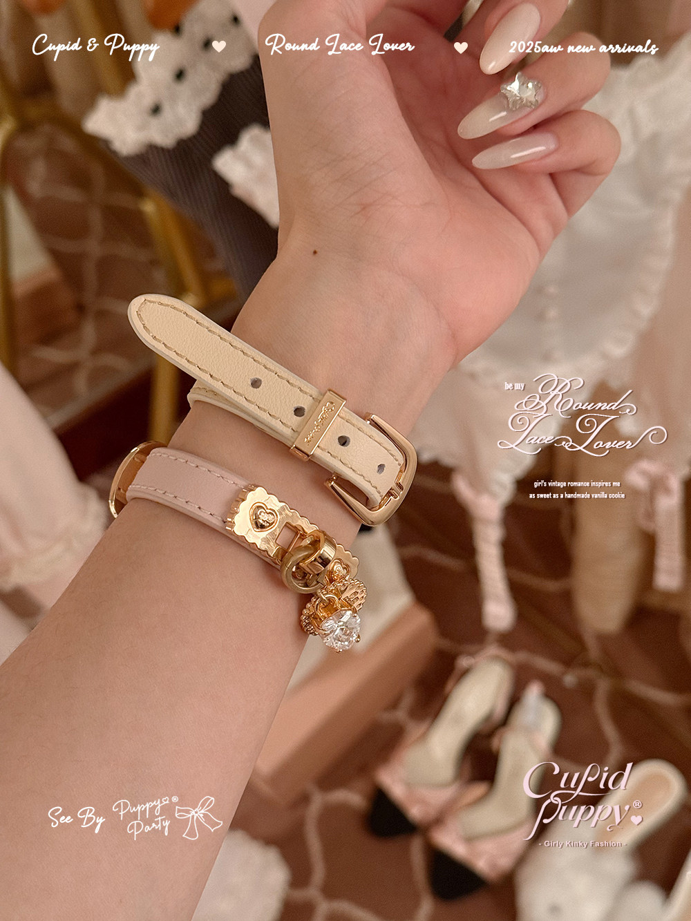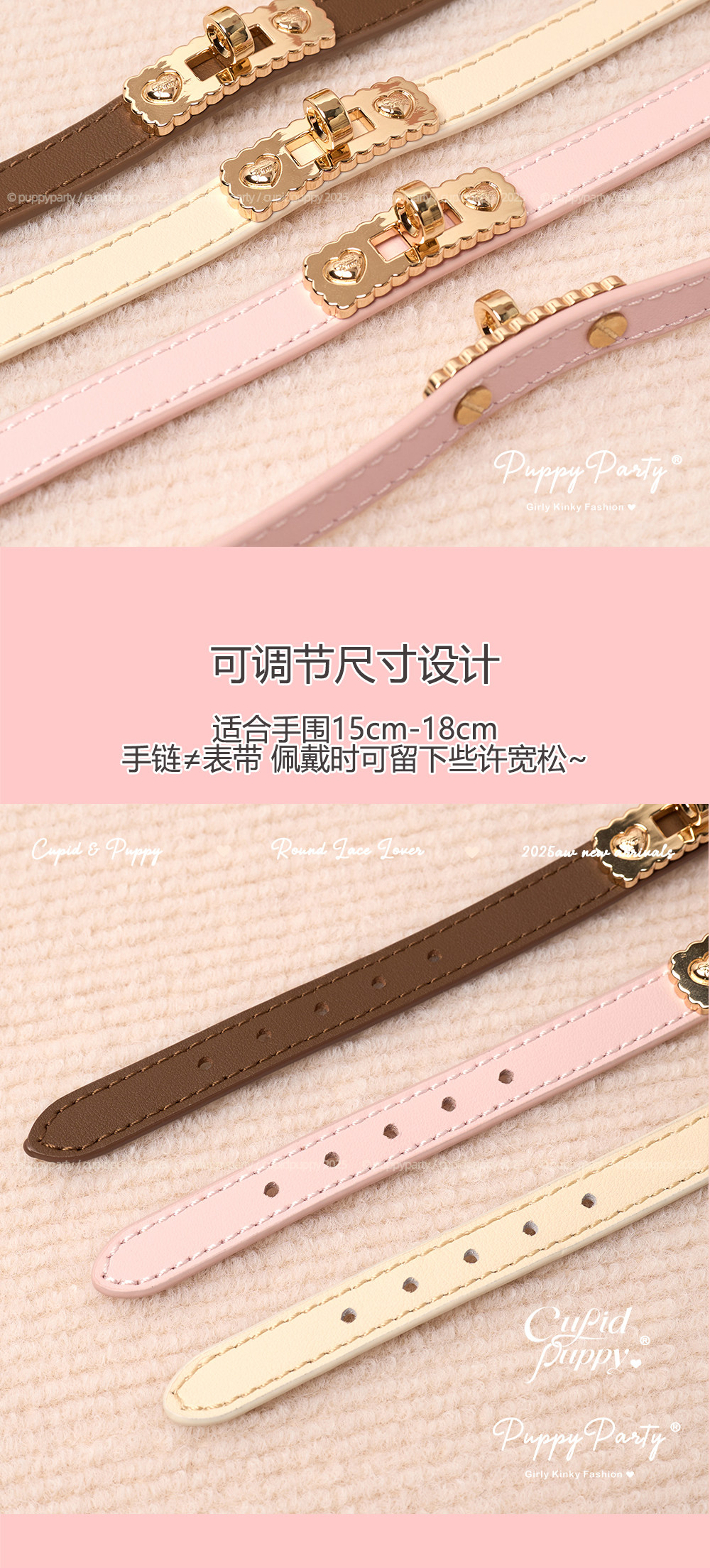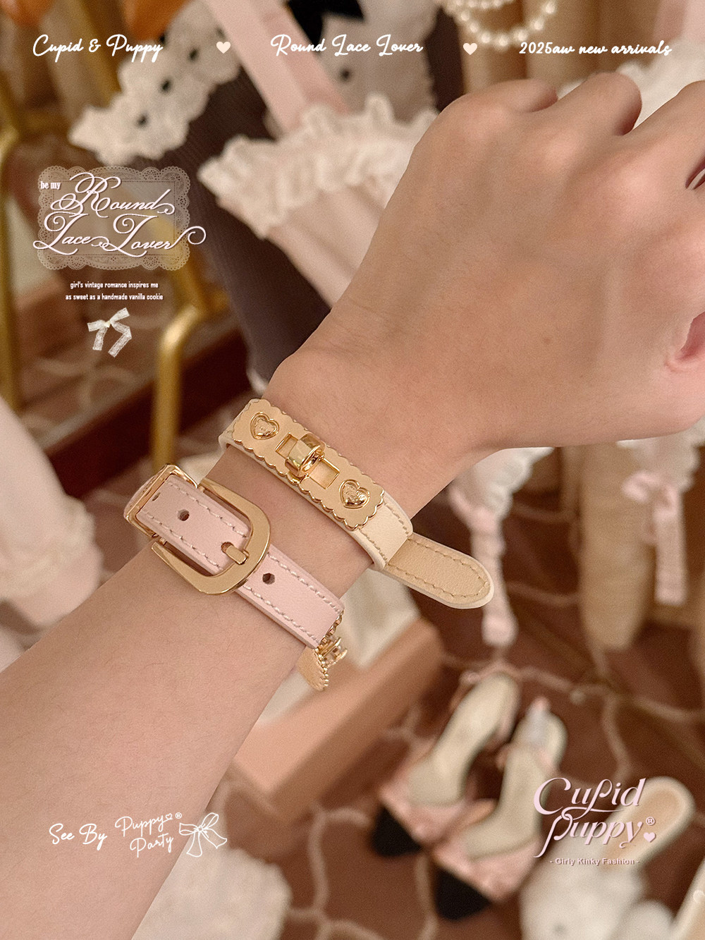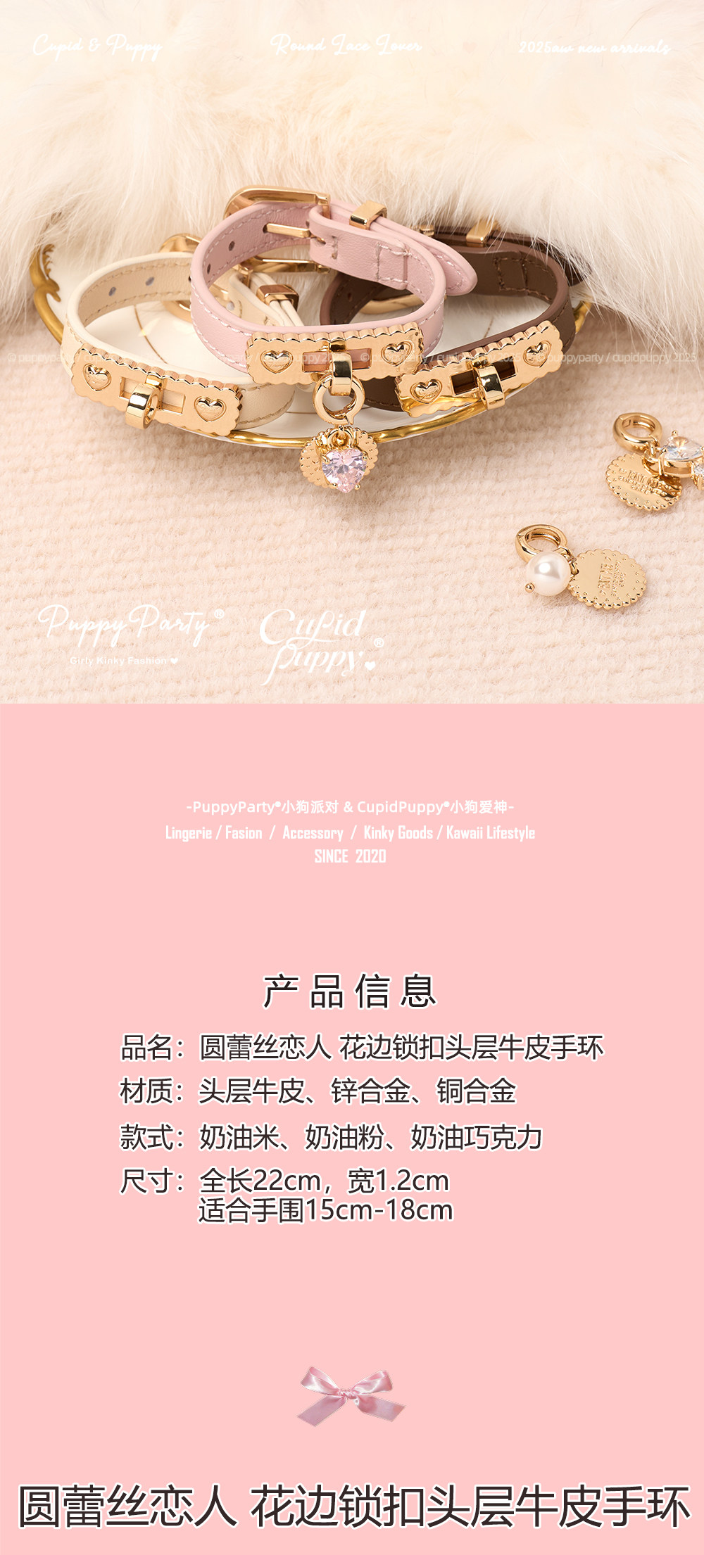 圓蕾絲戀人 原創花邊鎖釦頭層牛皮手環 小狗派對原創設計