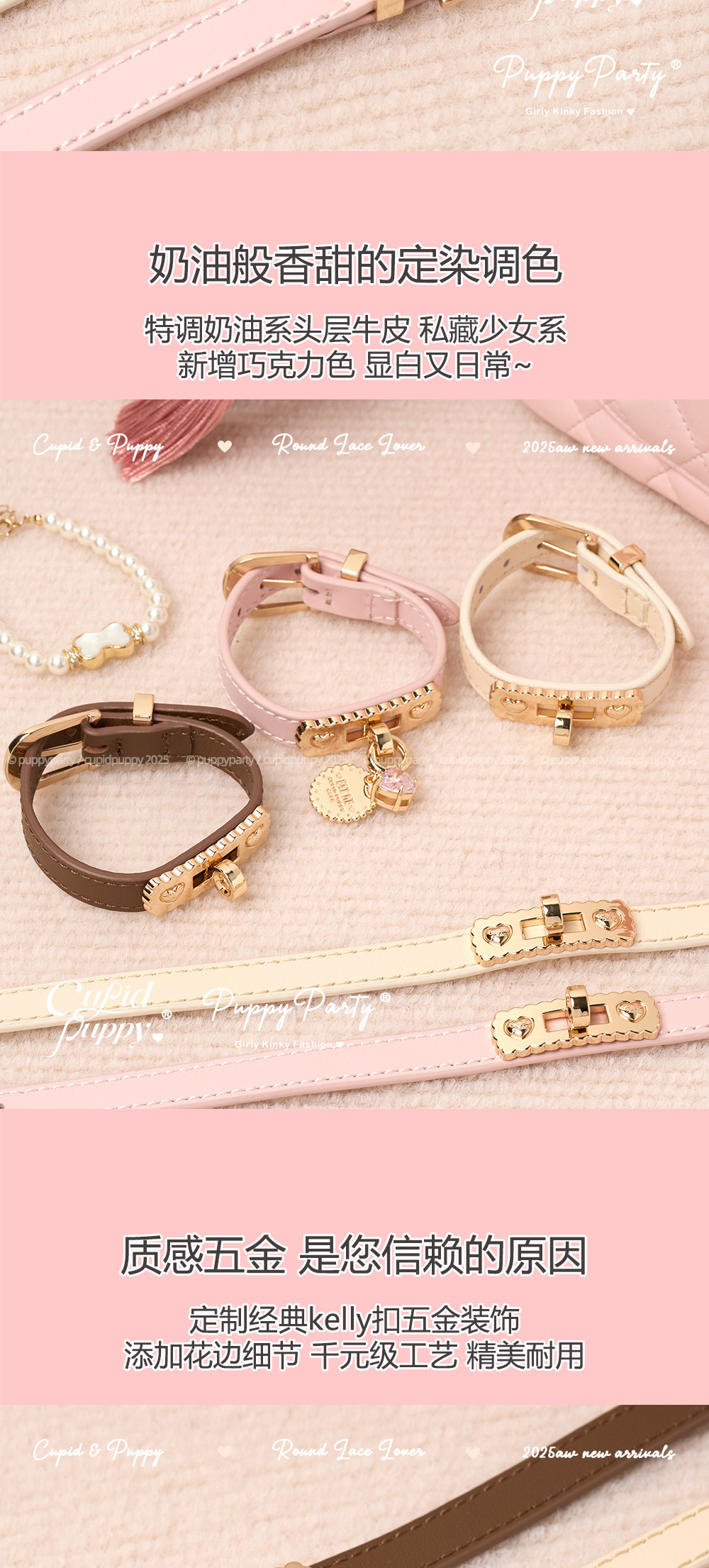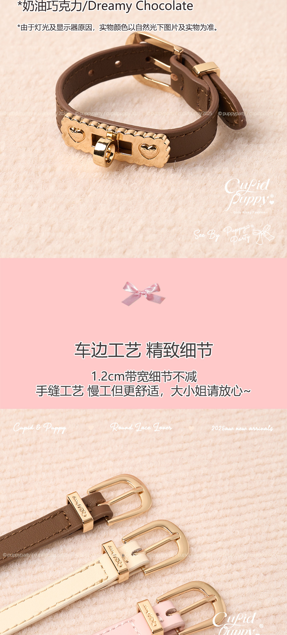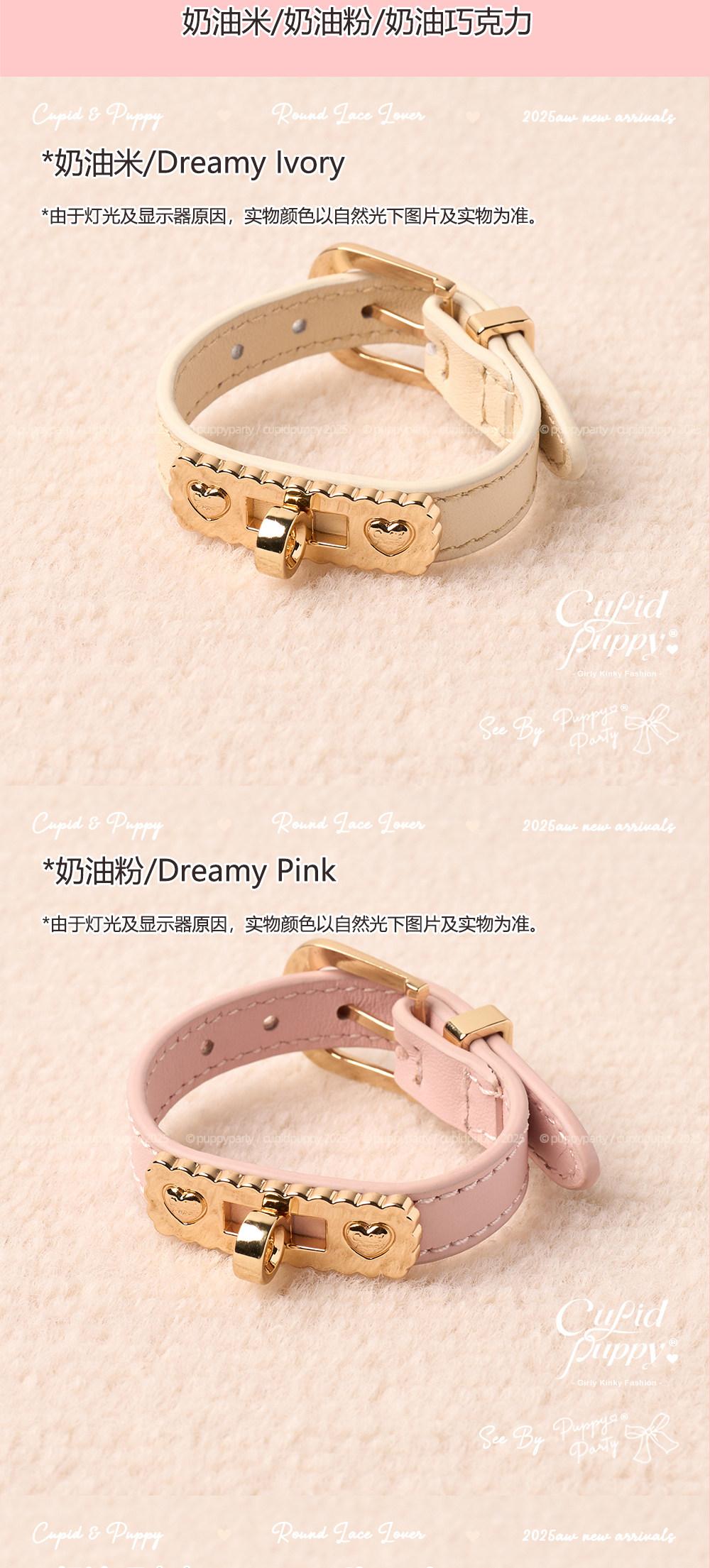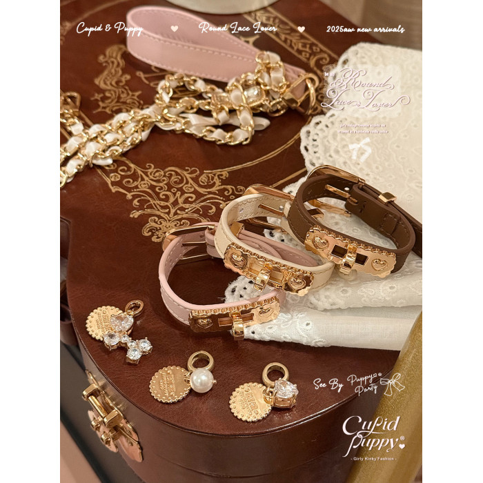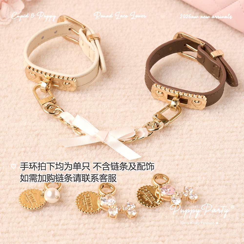 圓蕾絲戀人 原創花邊鎖釦頭層牛皮手環 小狗派對原創設計