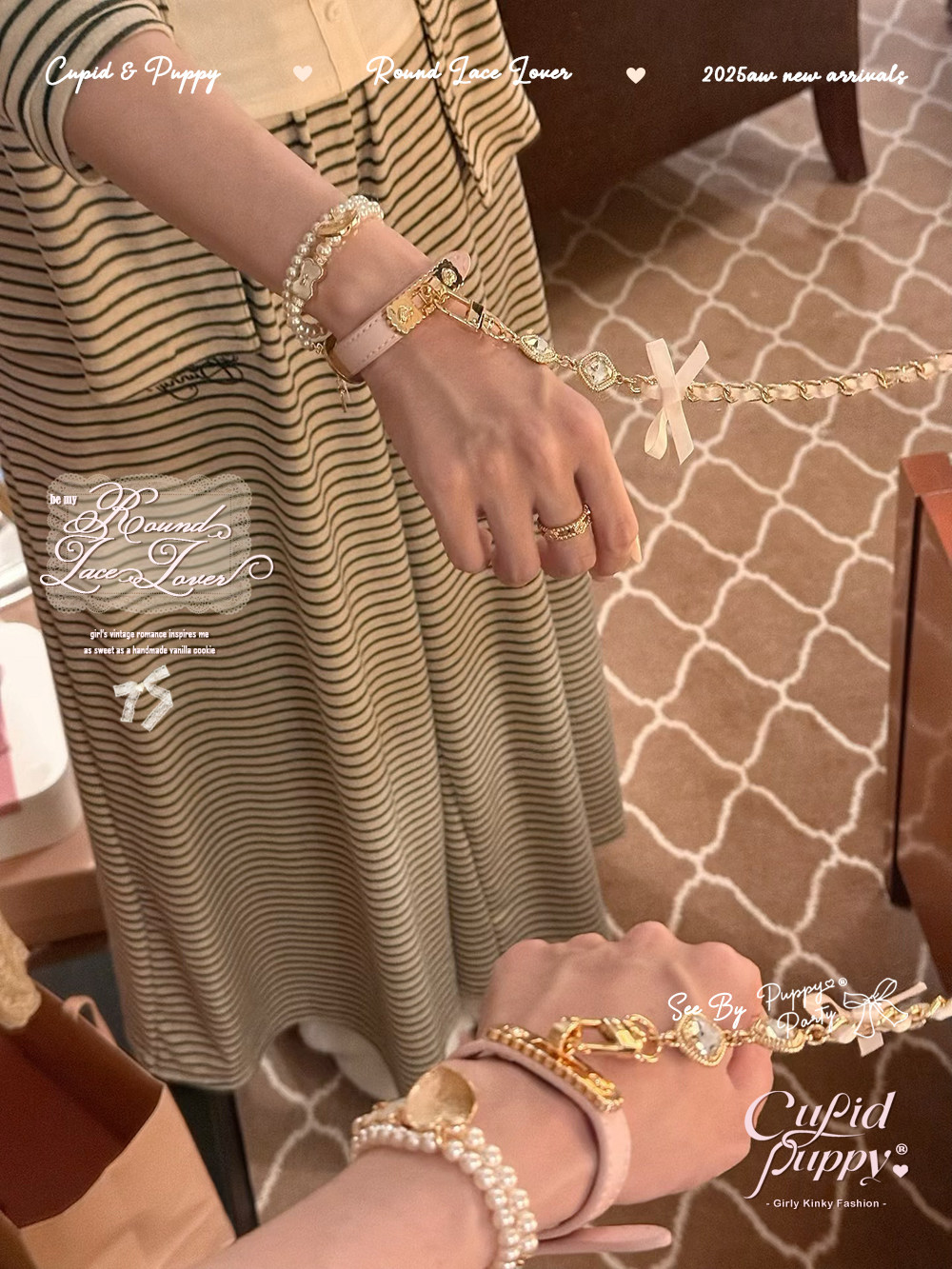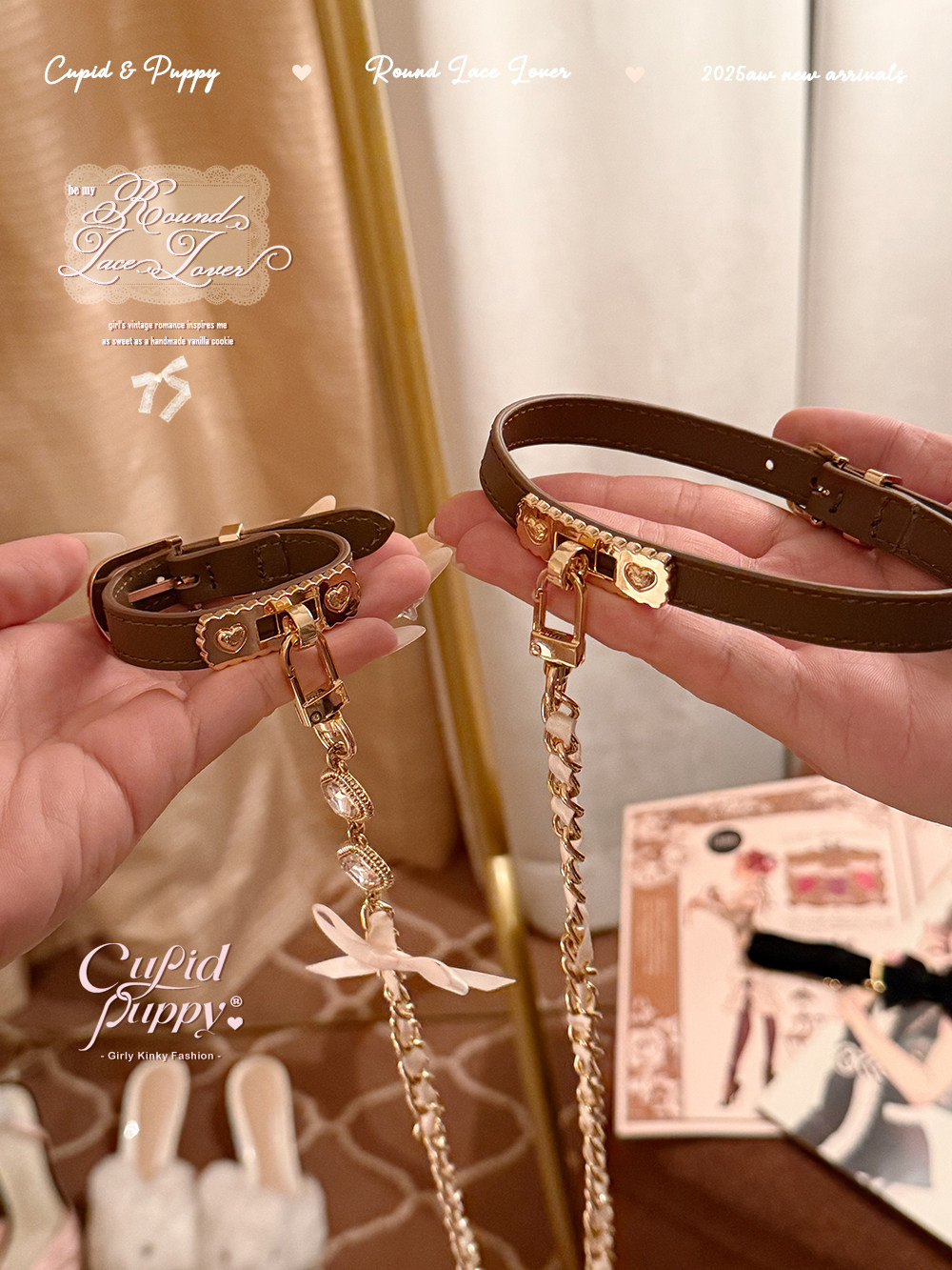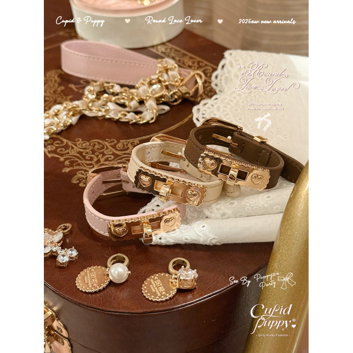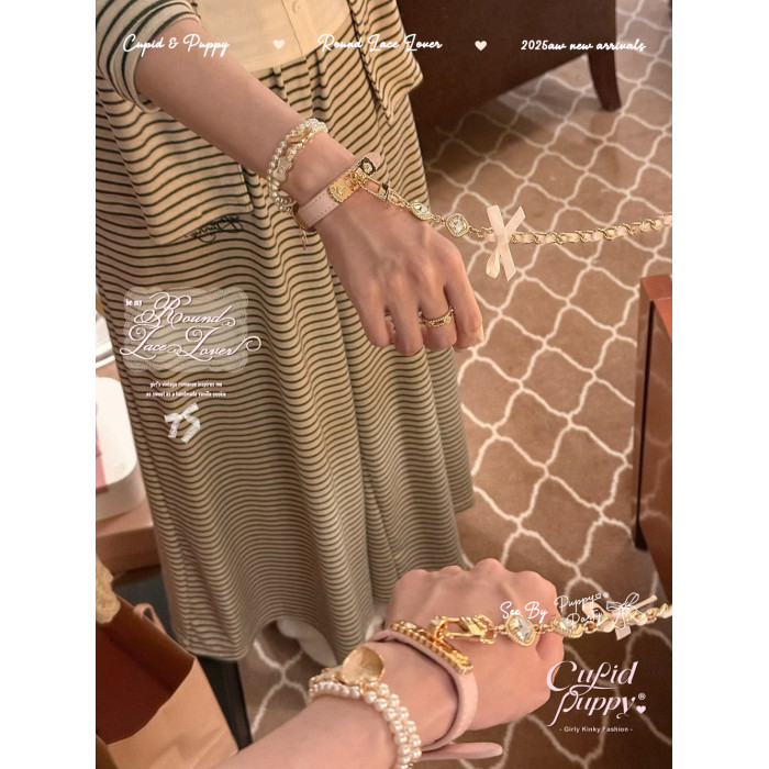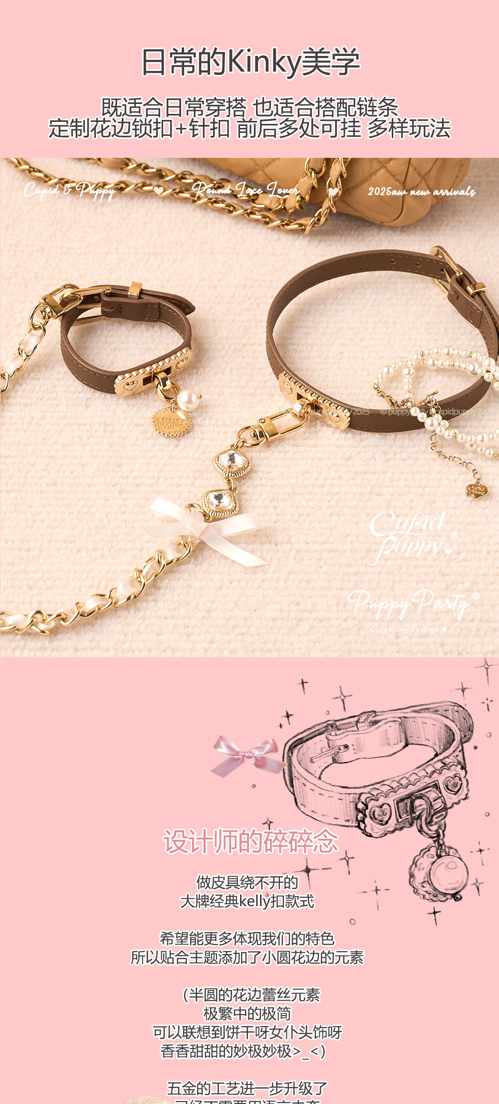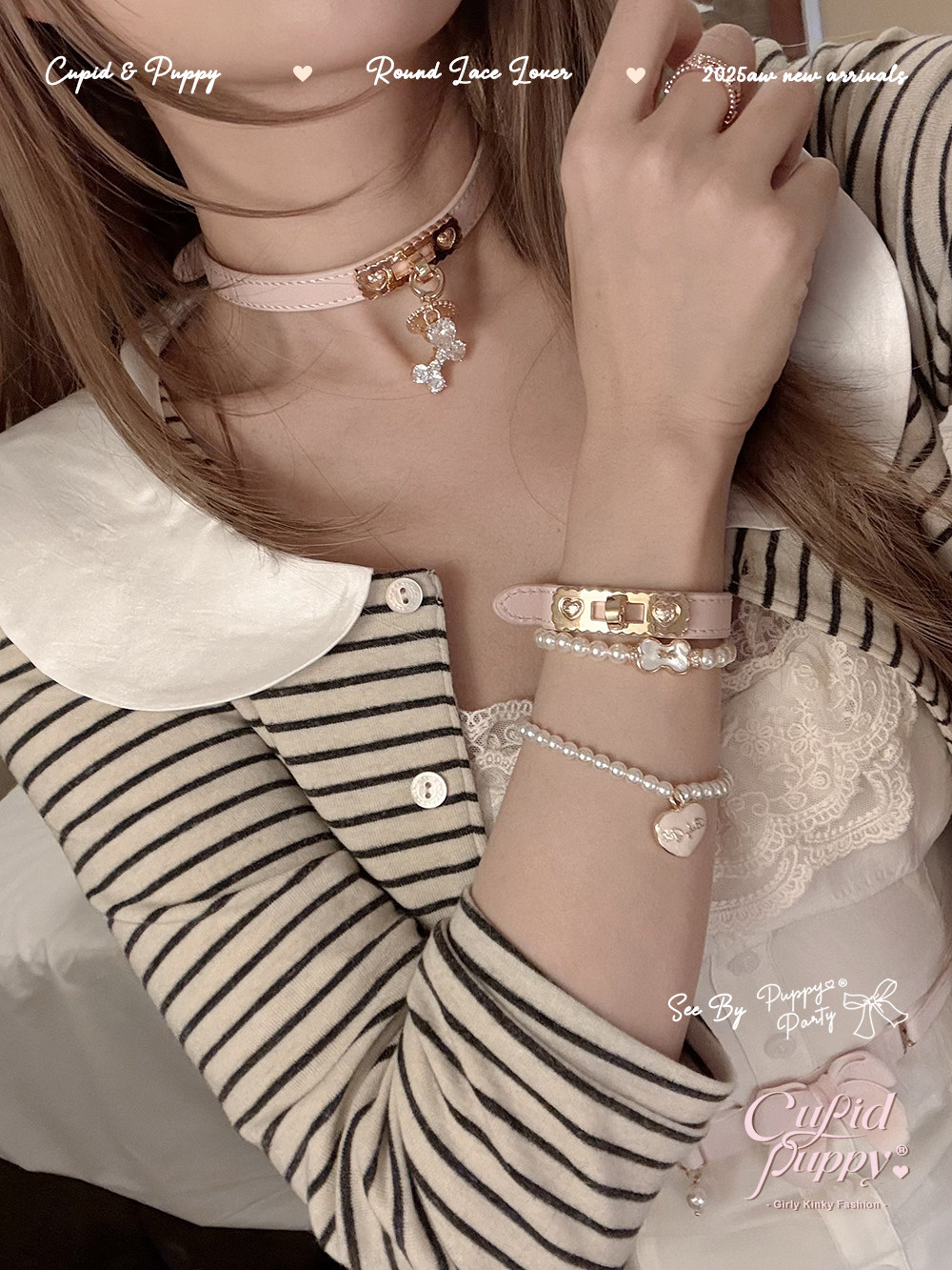 圓蕾絲戀人 原創花邊鎖釦頭層牛皮手環 小狗派對原創設計