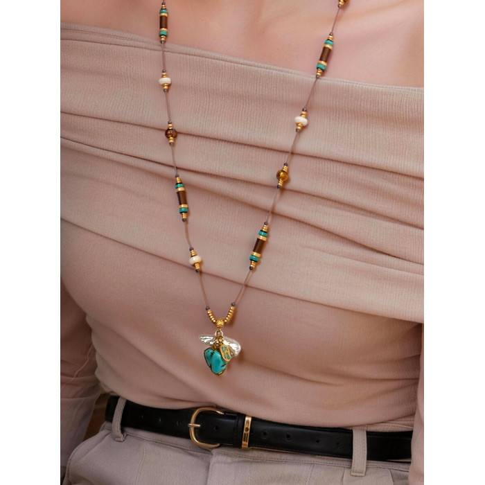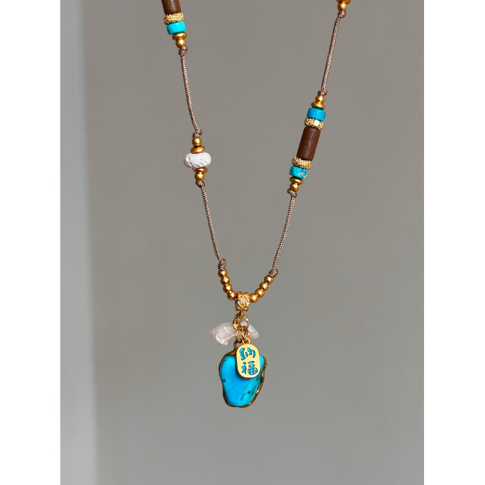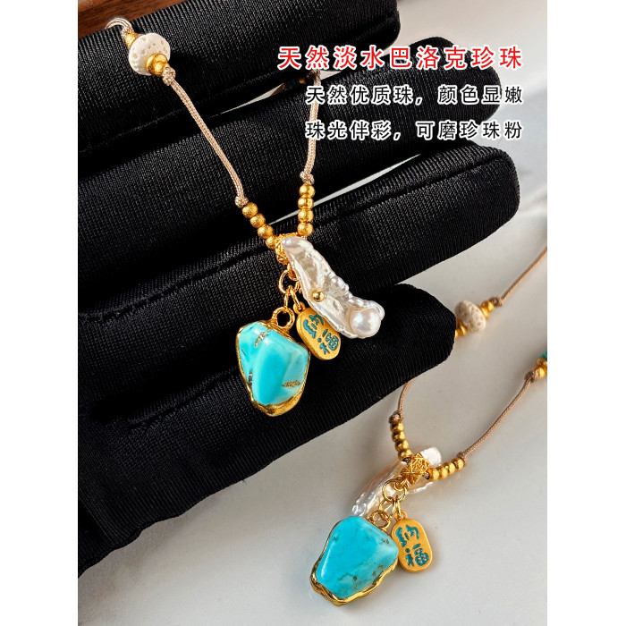 民族風復古天然綠松石項鍊女款2026新款淡水巴洛克珍珠長款毛衣鏈