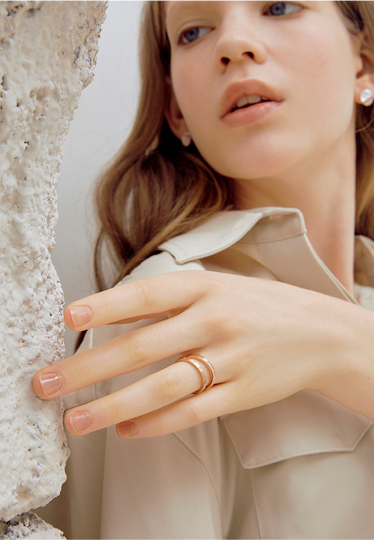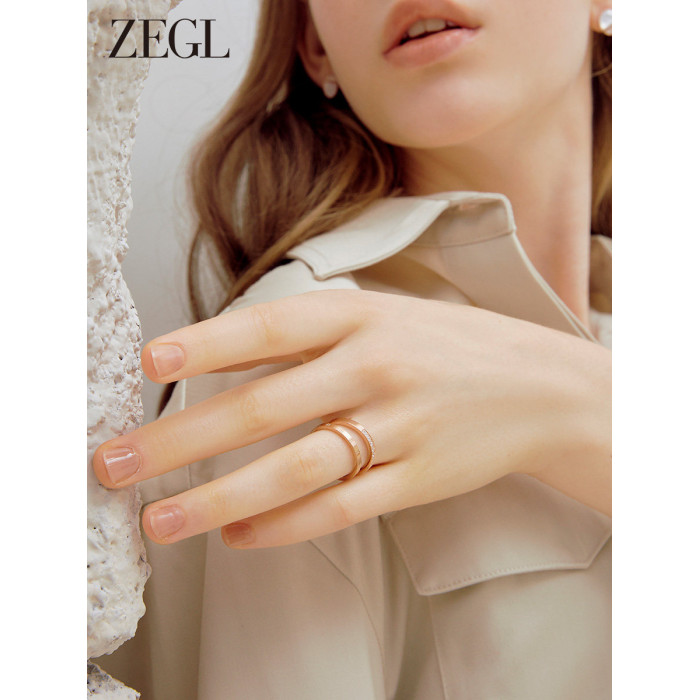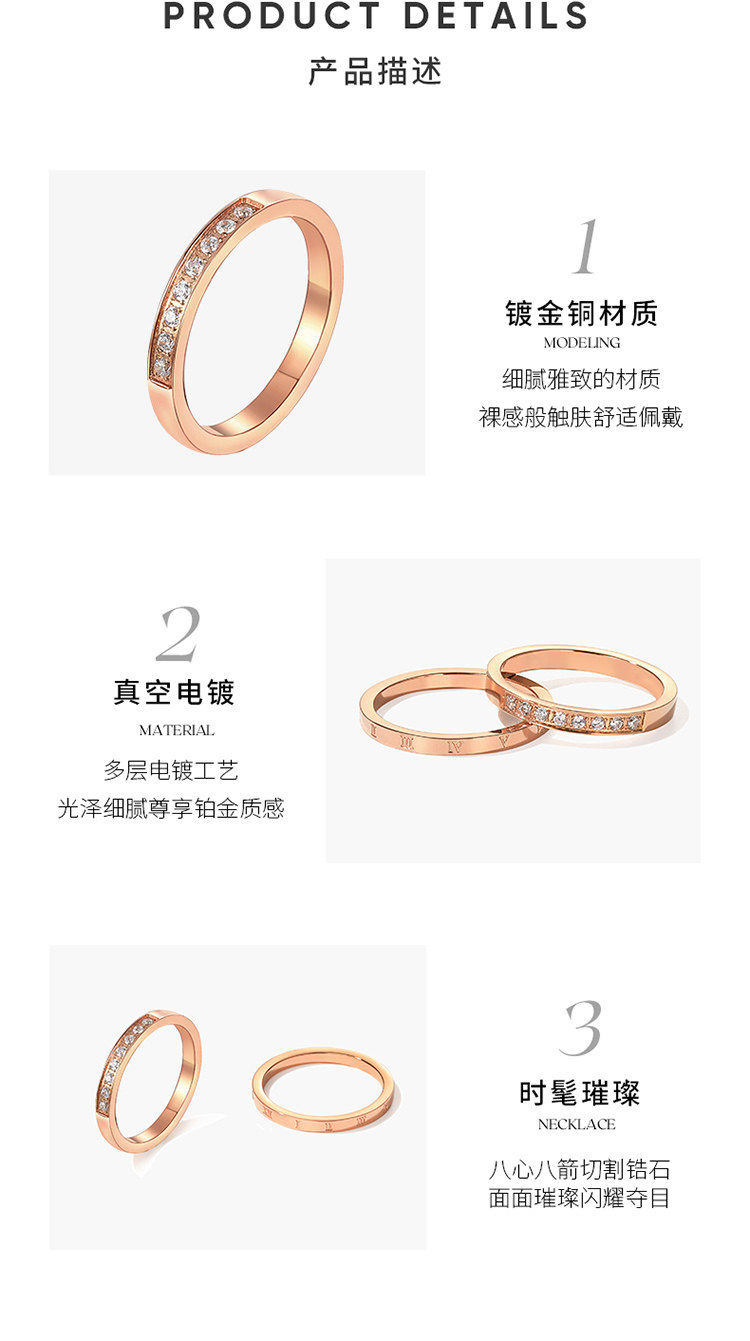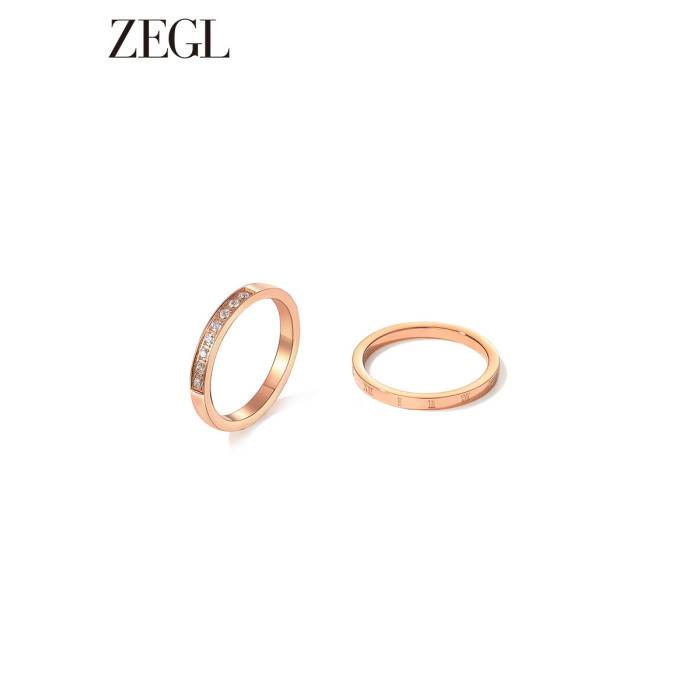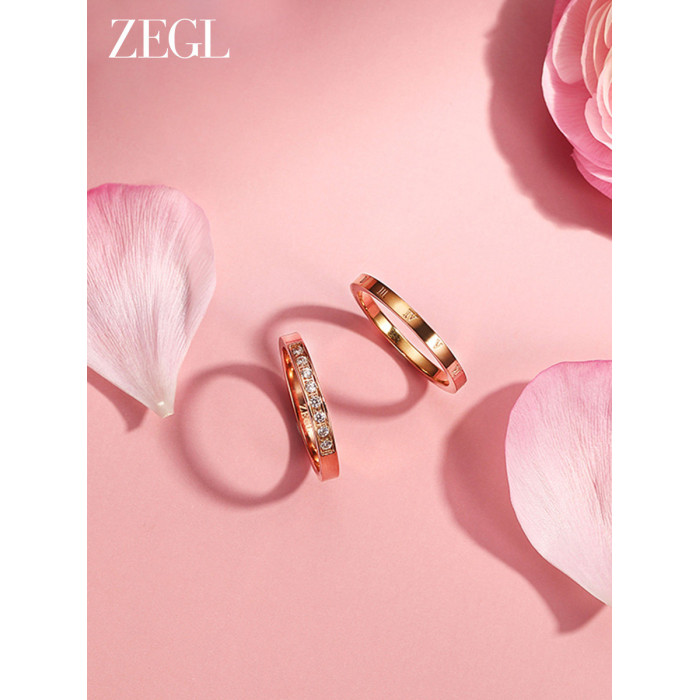 ZENGLIU玫瑰金輕奢羅馬數字鈦鋼食指戒指女秋冬小衆設計情侶對戒