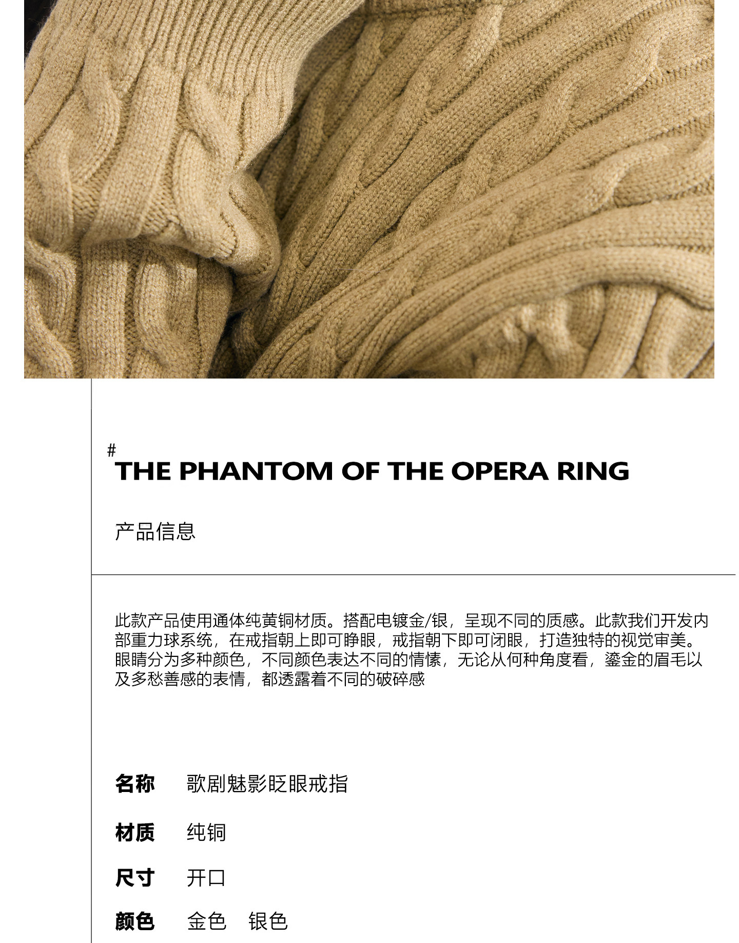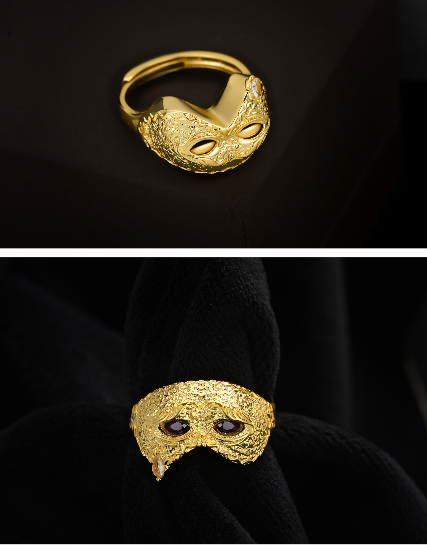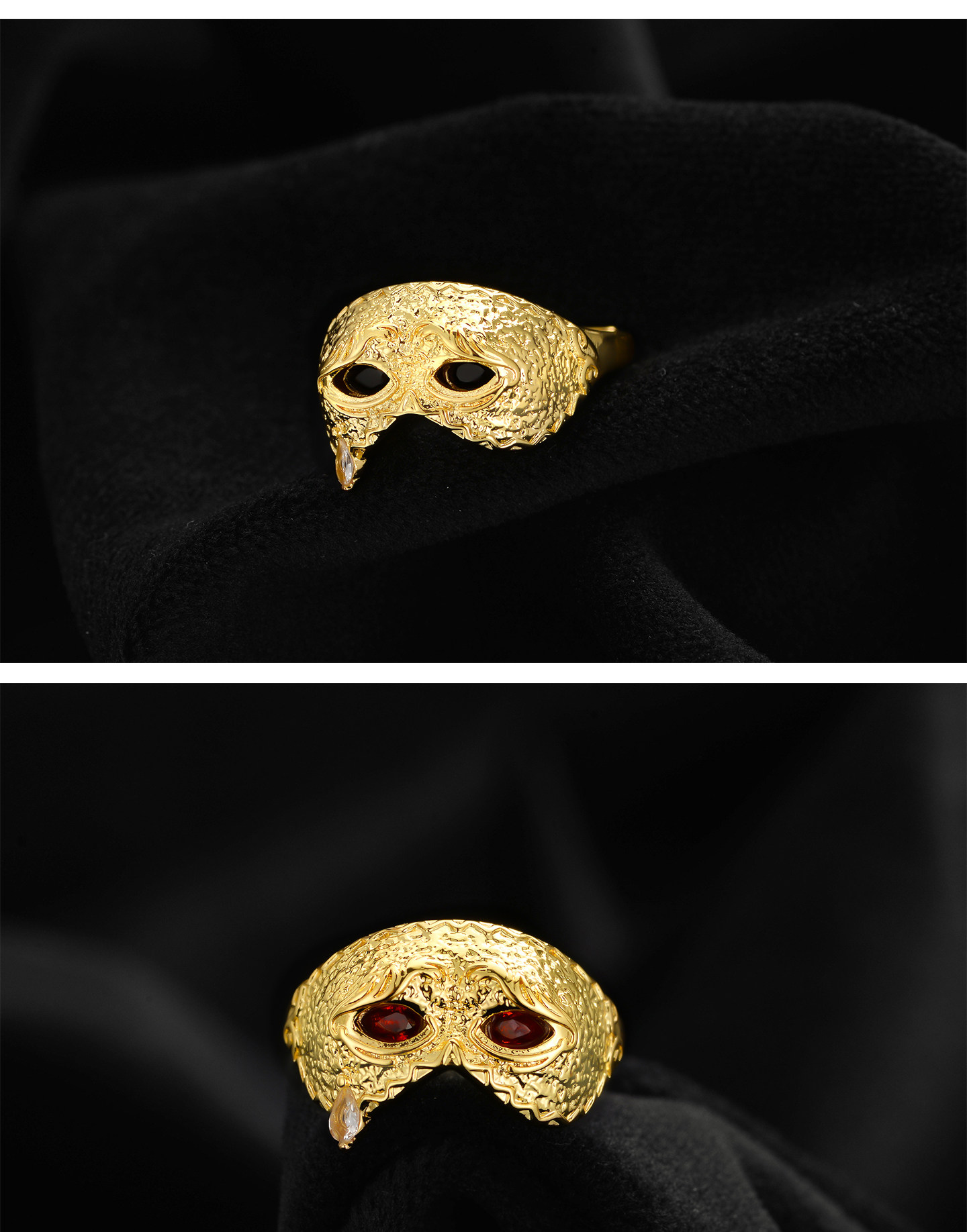 NO / 純銅鍍金銀 *歌劇魅影 寶石眨眼中世紀面具可調節戒指