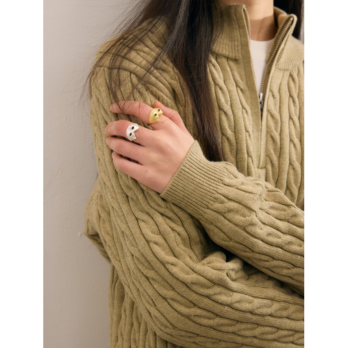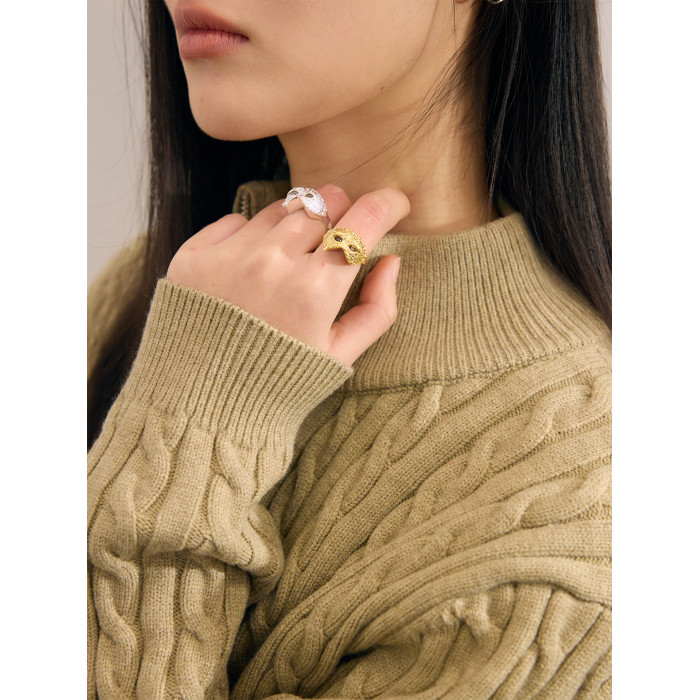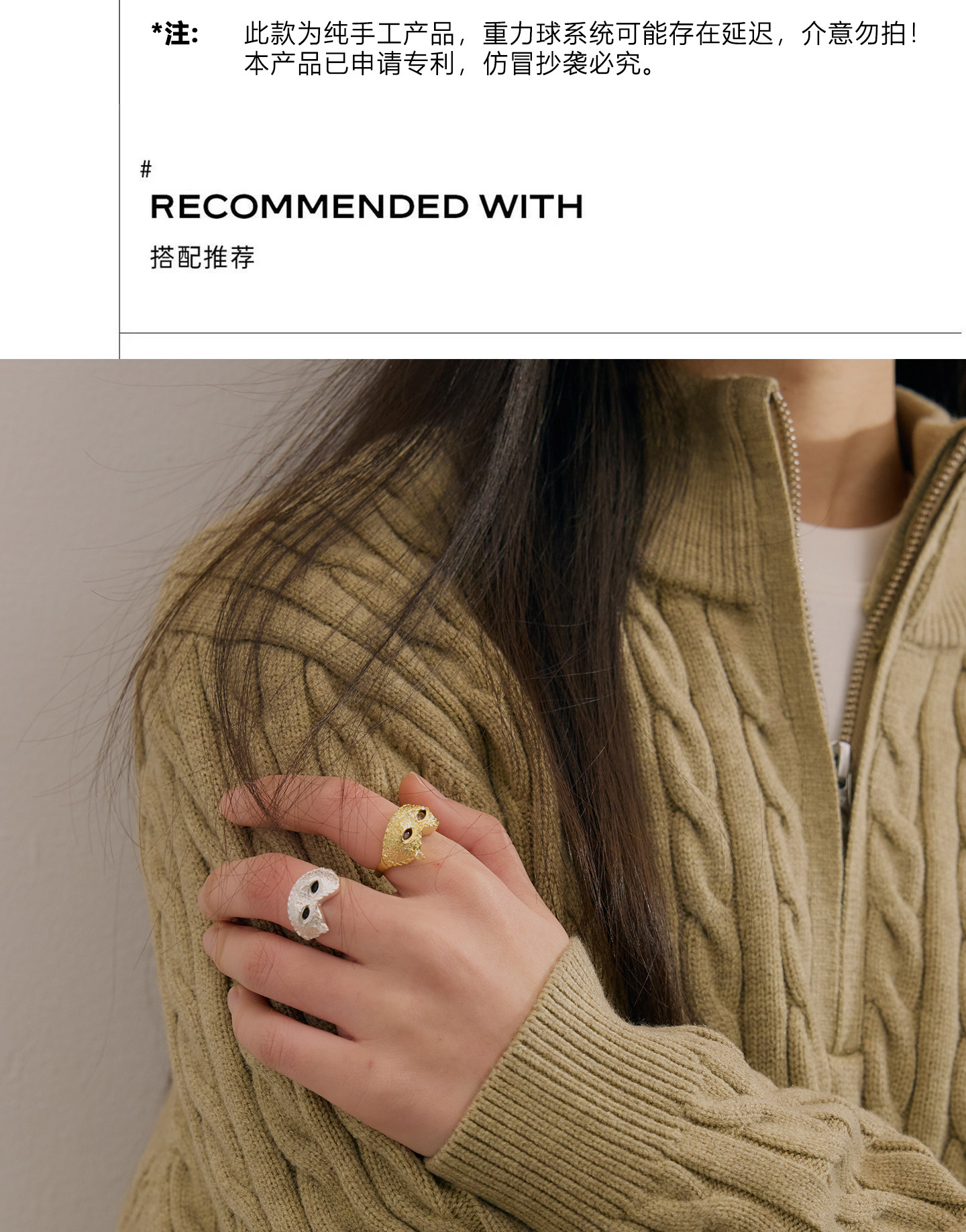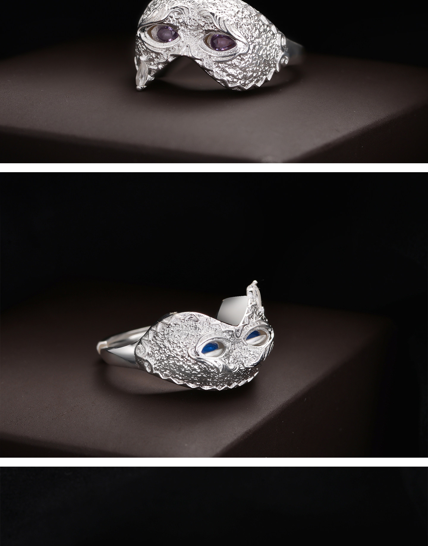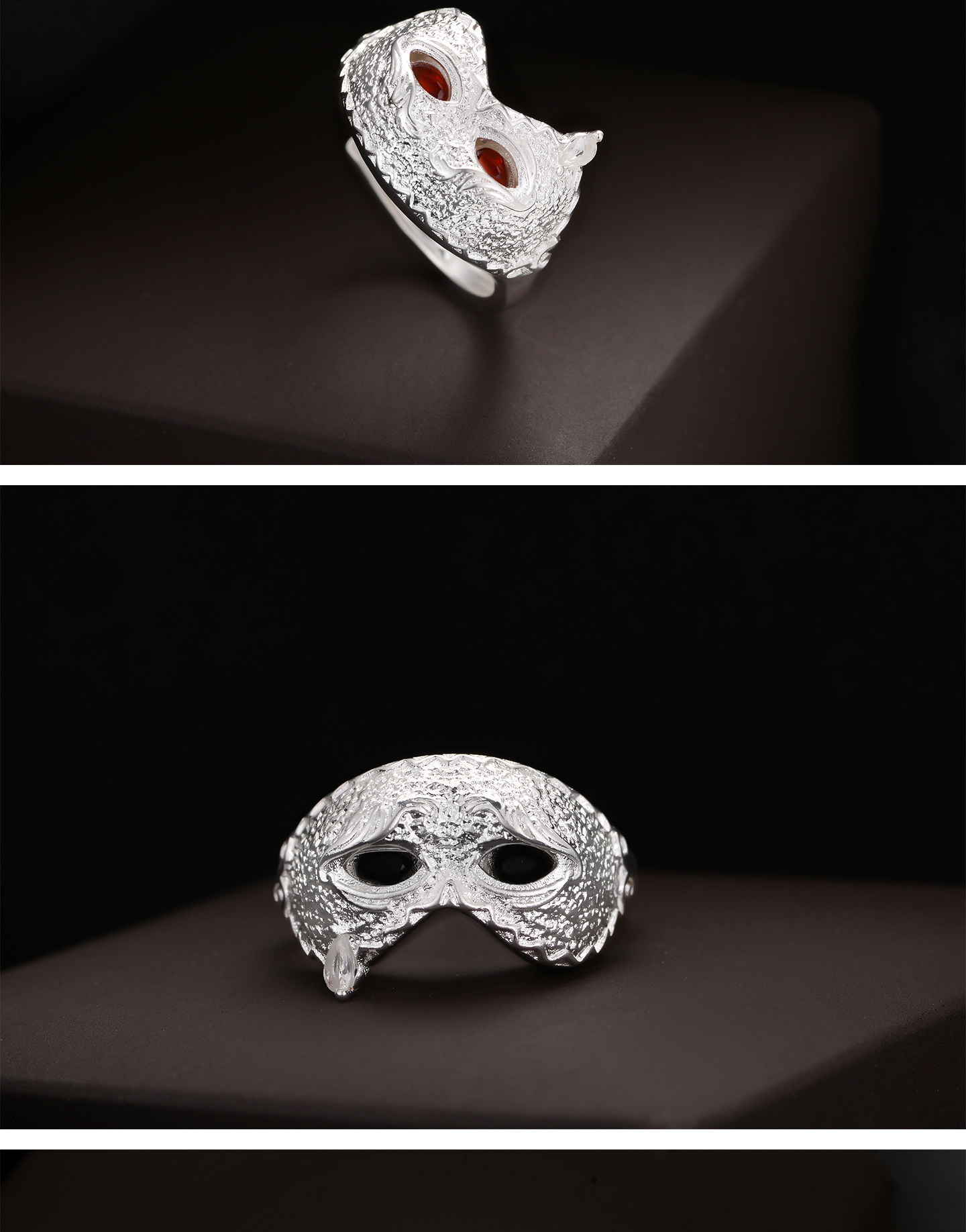 NO / 純銅鍍金銀 *歌劇魅影 寶石眨眼中世紀面具可調節戒指
