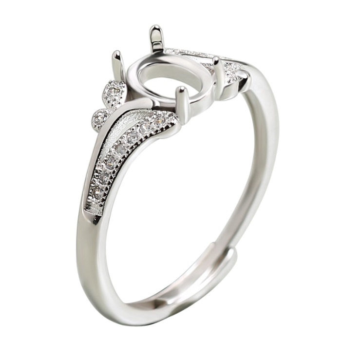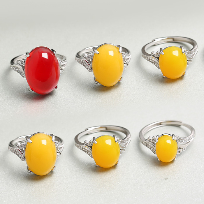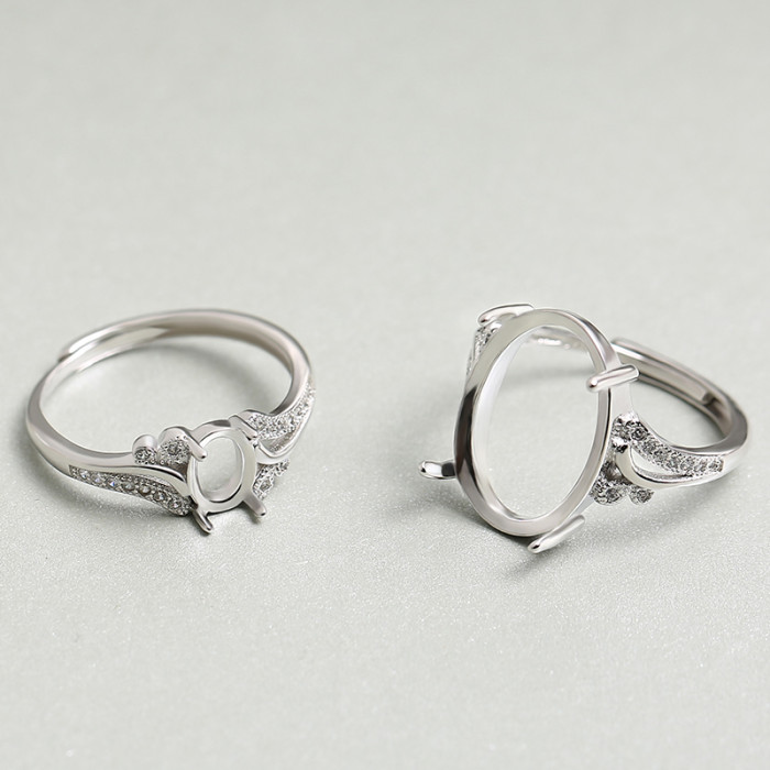 戒指托女款鑲嵌蜜蠟琥珀戒面橢圓形diy戒托8*10 10*13空托鍍925銀