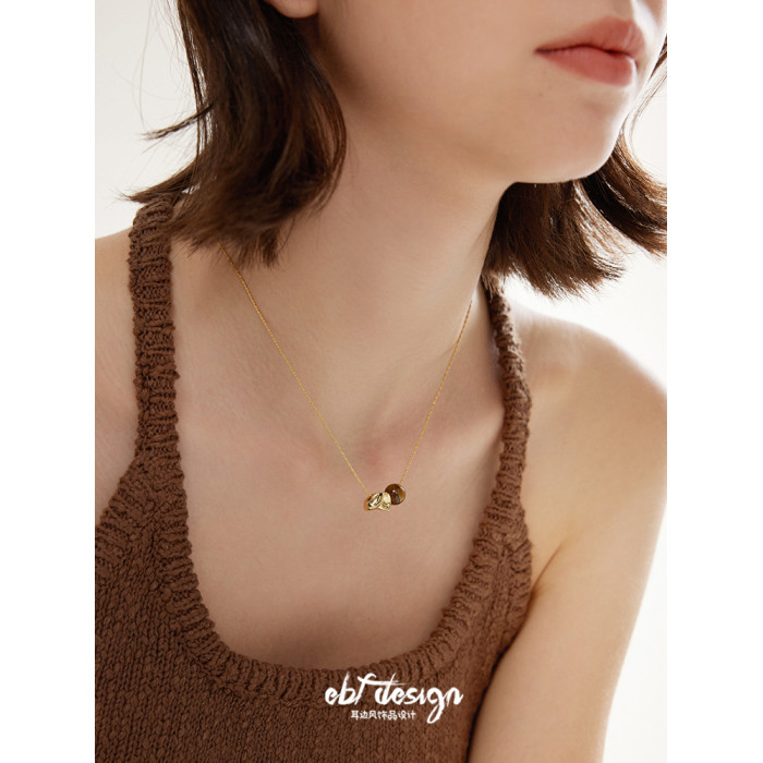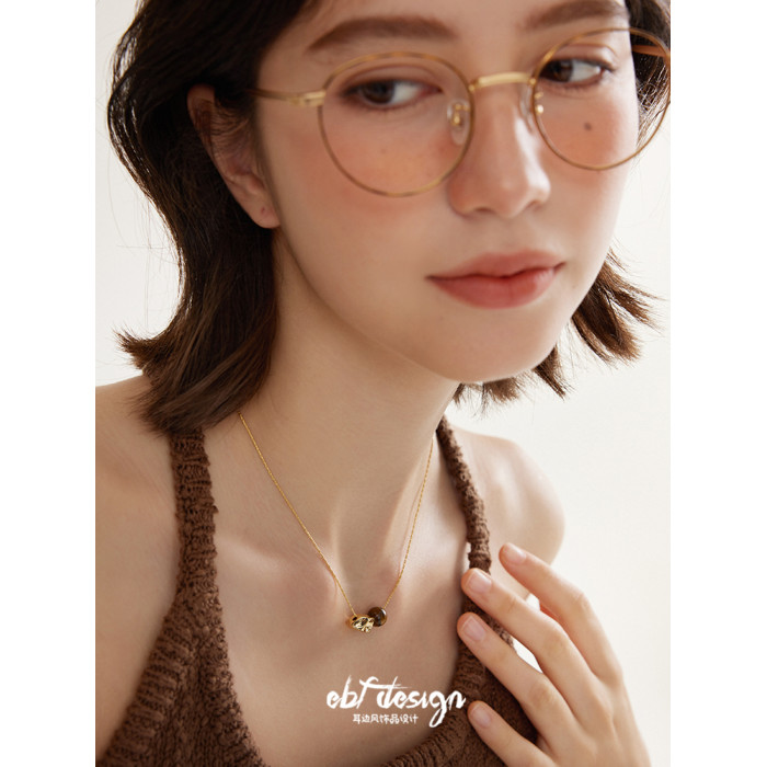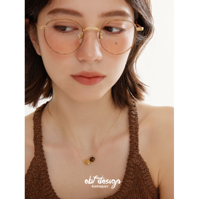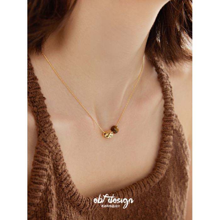 EBFWIND 烏木堅果 法式極簡浪漫幾何虎眼石復古高級感美拉德項鍊