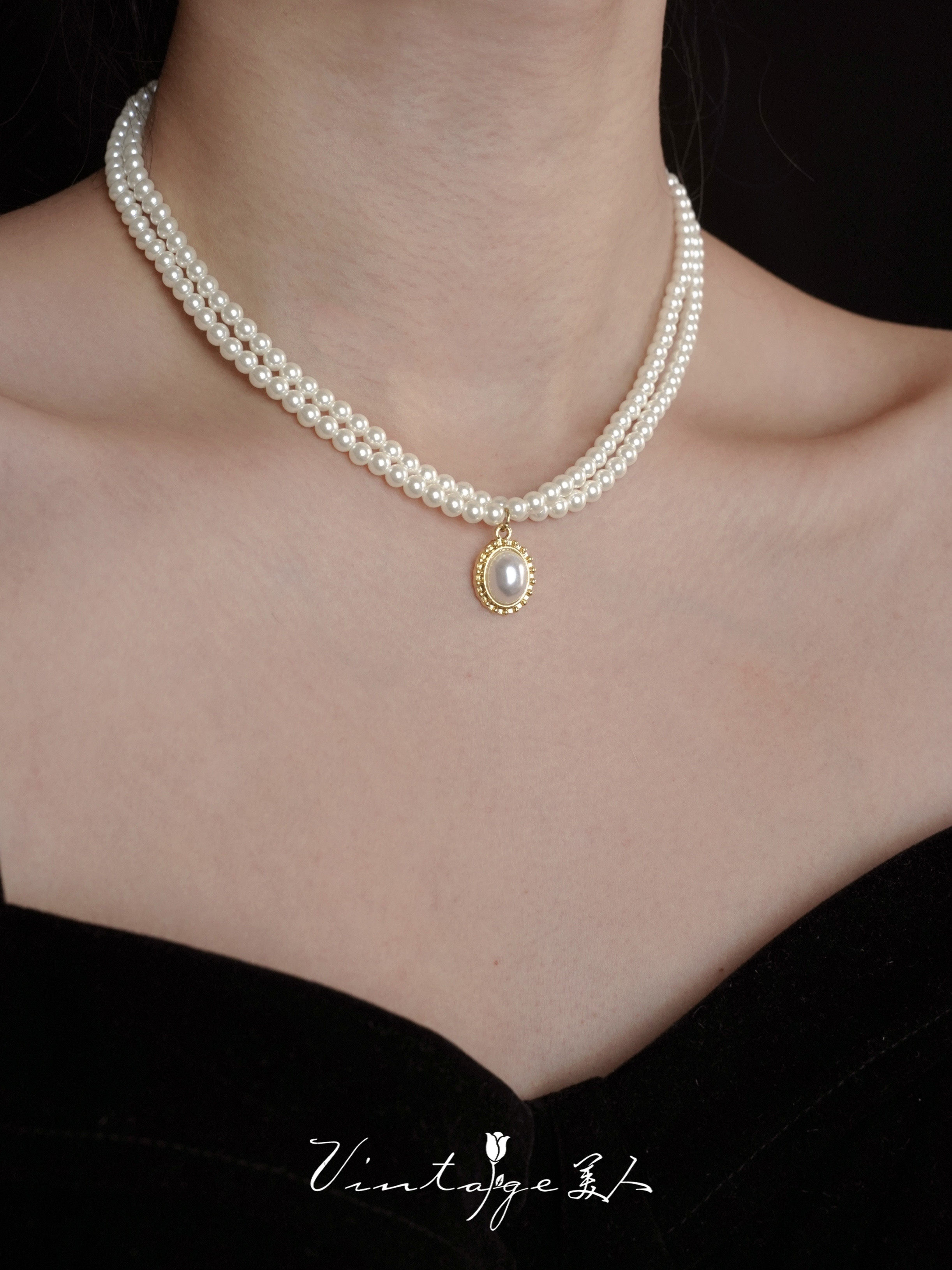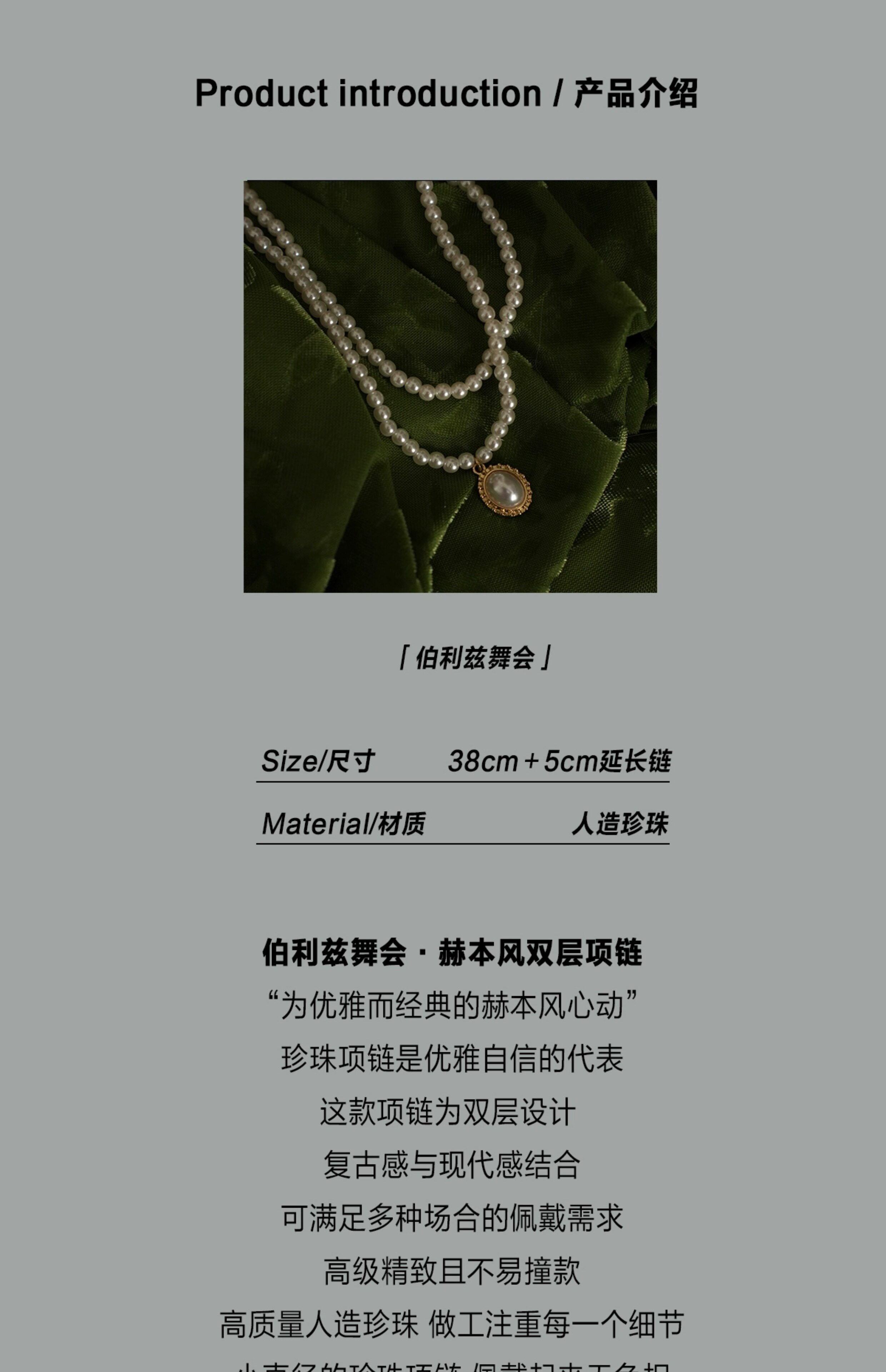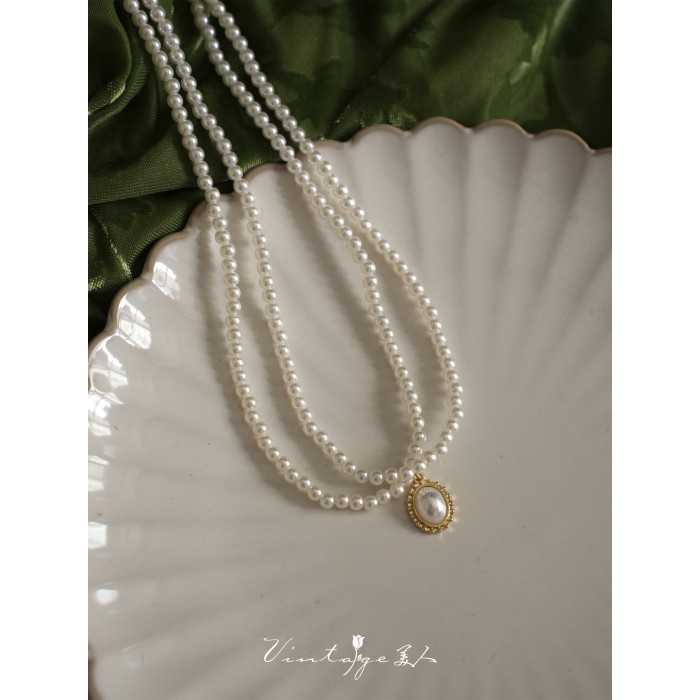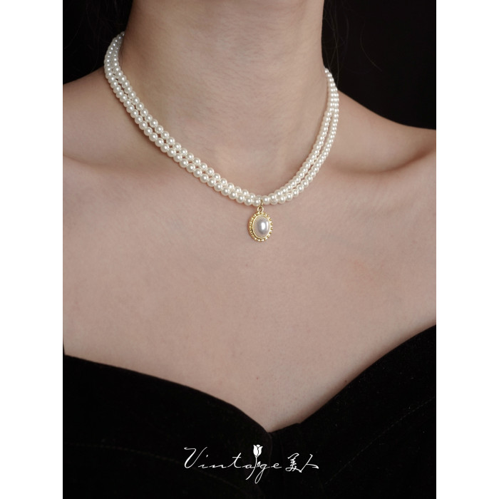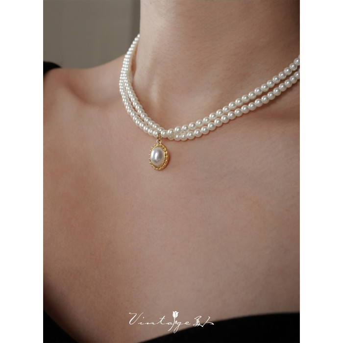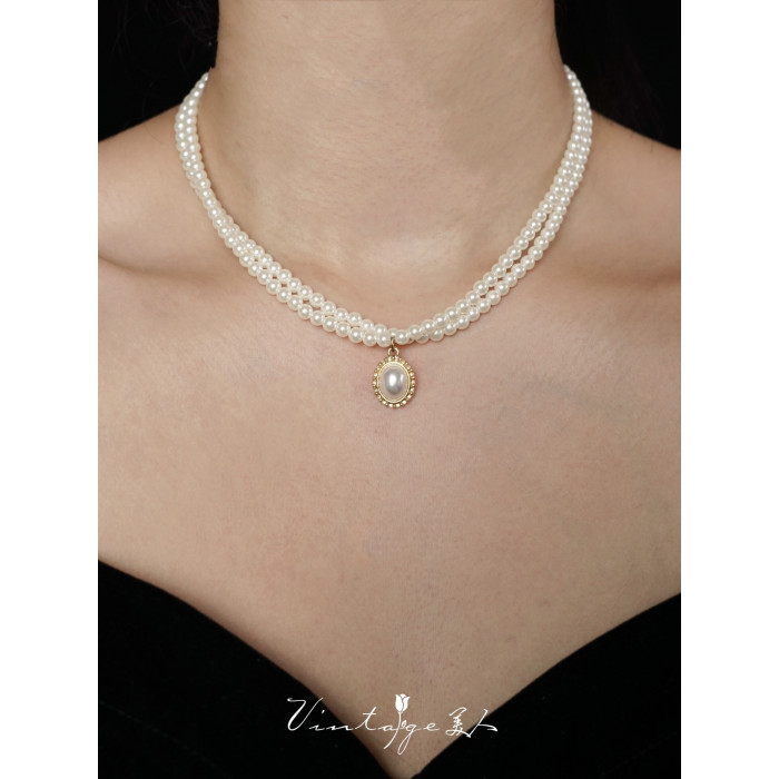 「伯利玆舞會」復古法式高級感優雅氣質赫本風雙層珍珠項鍊鎖骨鍊
