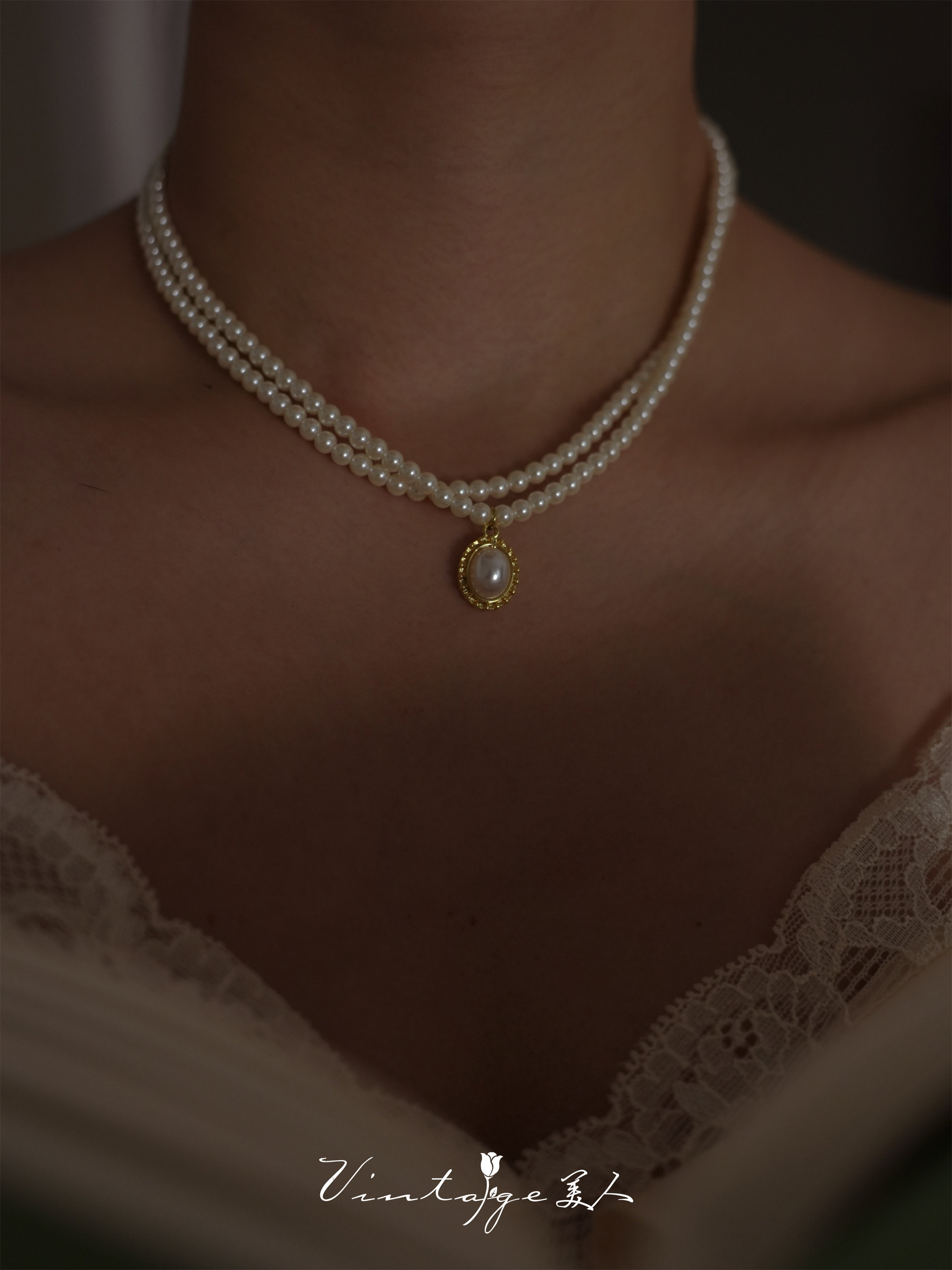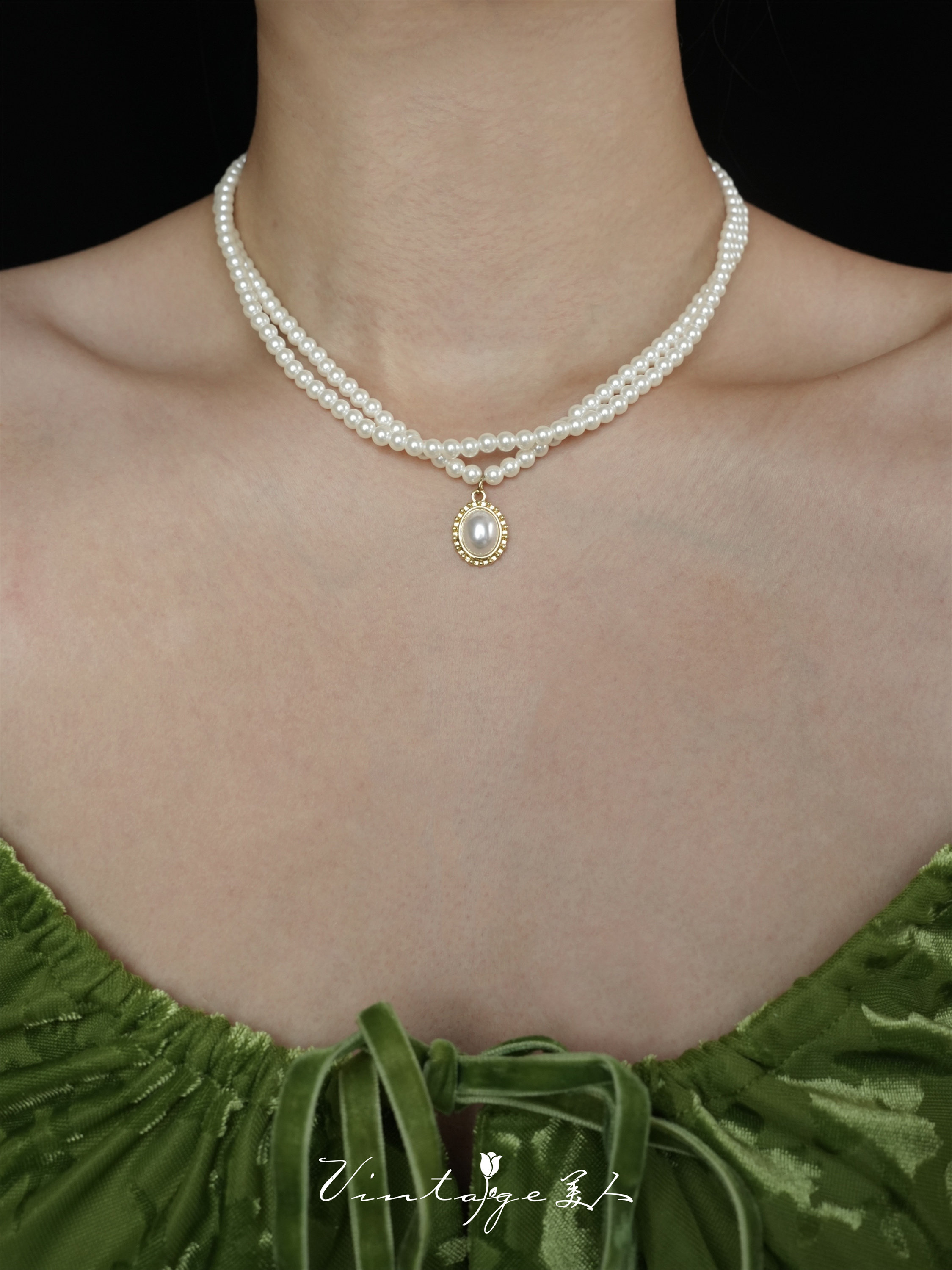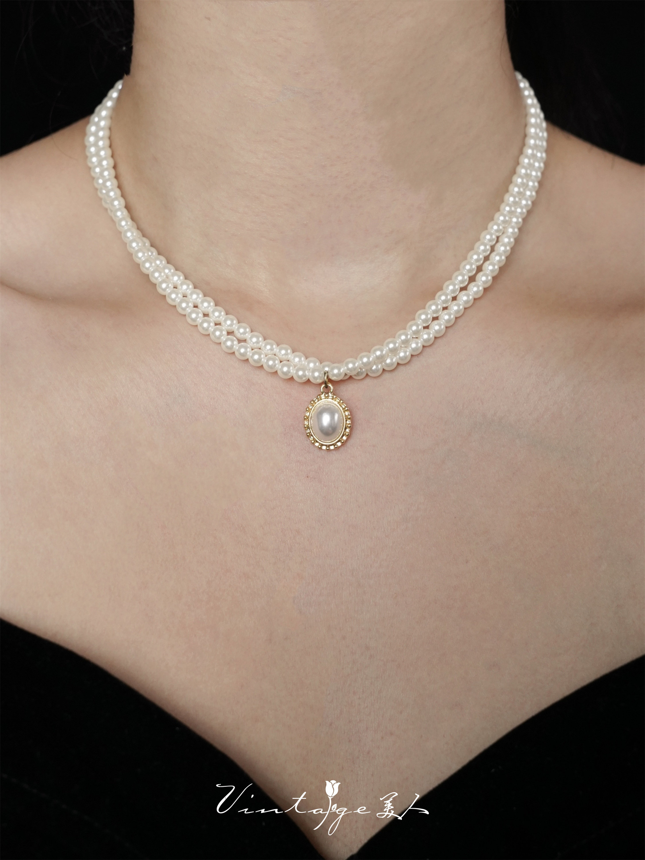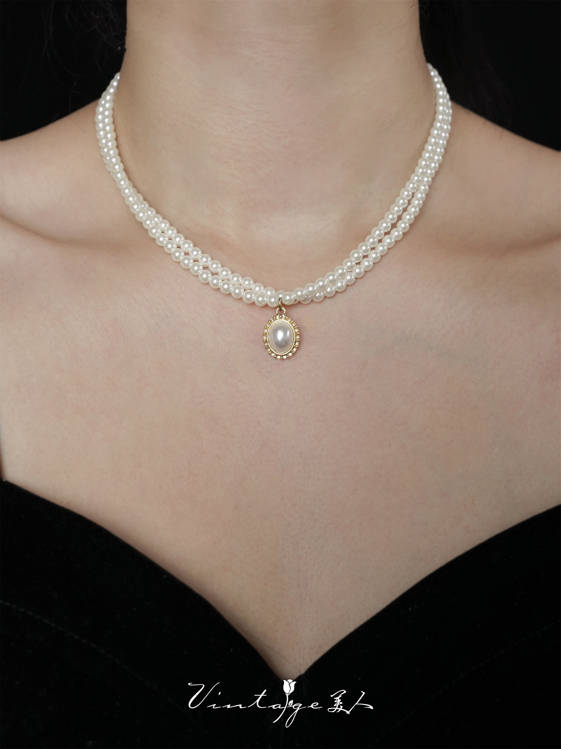 「伯利玆舞會」復古法式高級感優雅氣質赫本風雙層珍珠項鍊鎖骨鍊