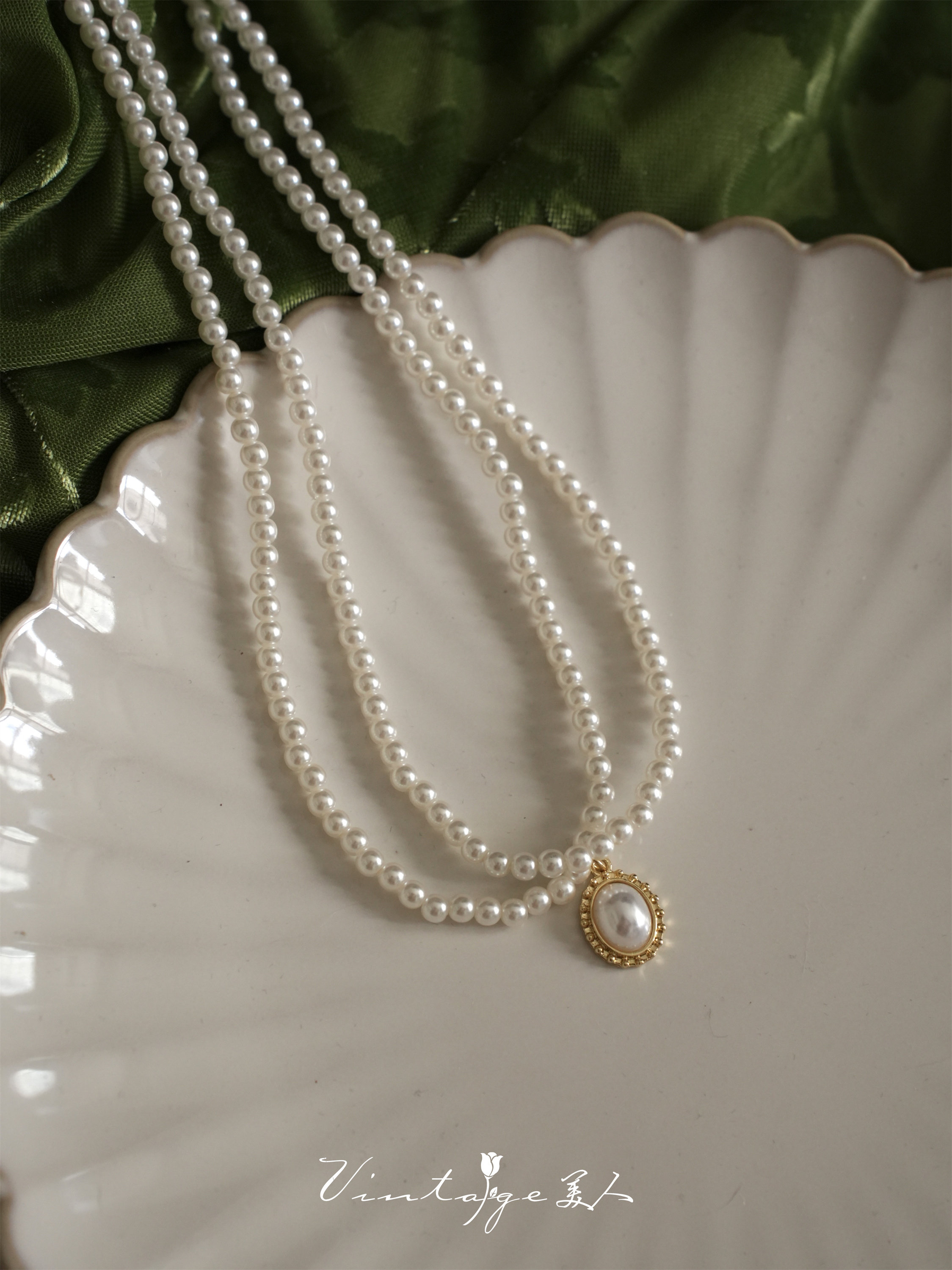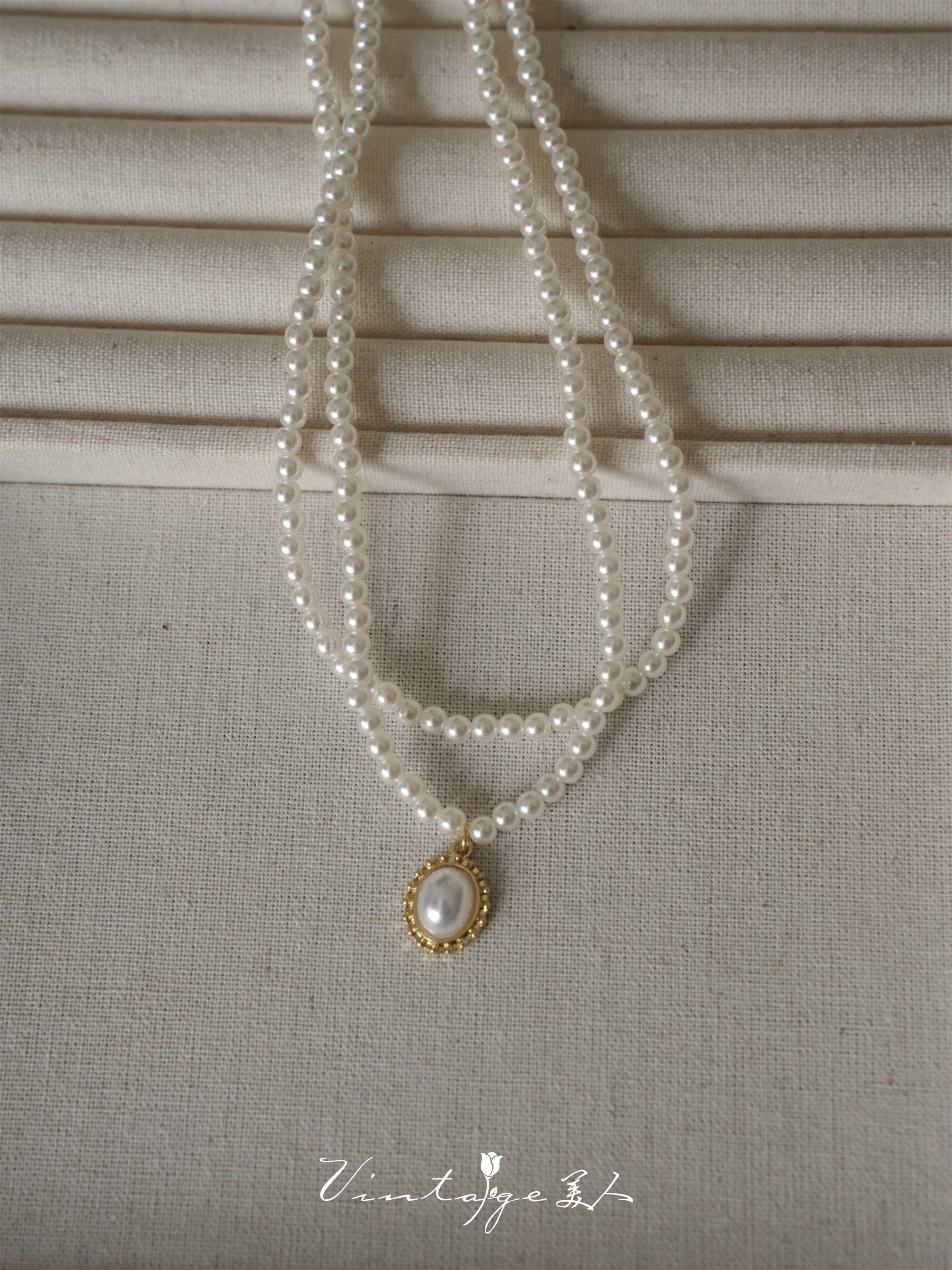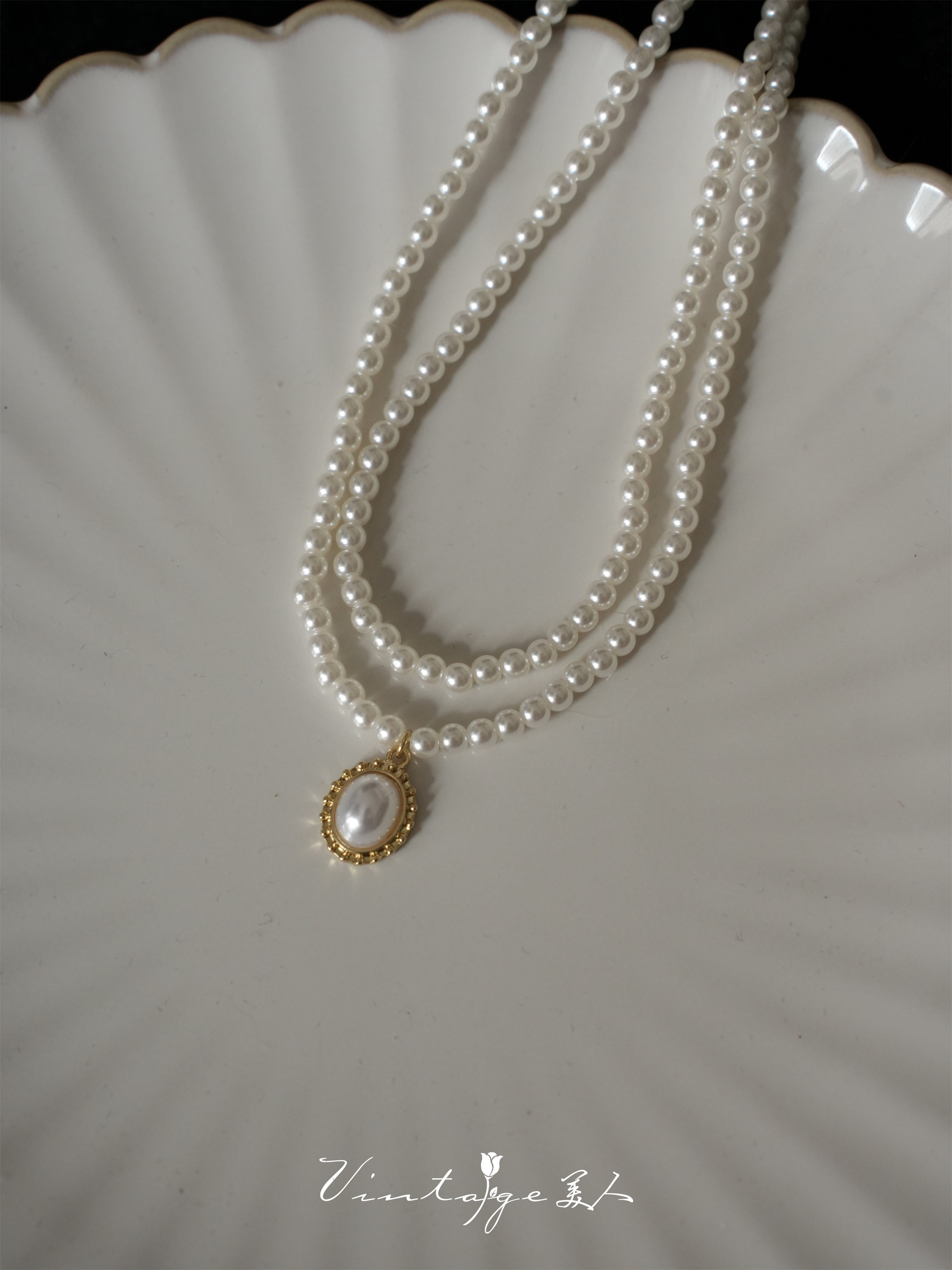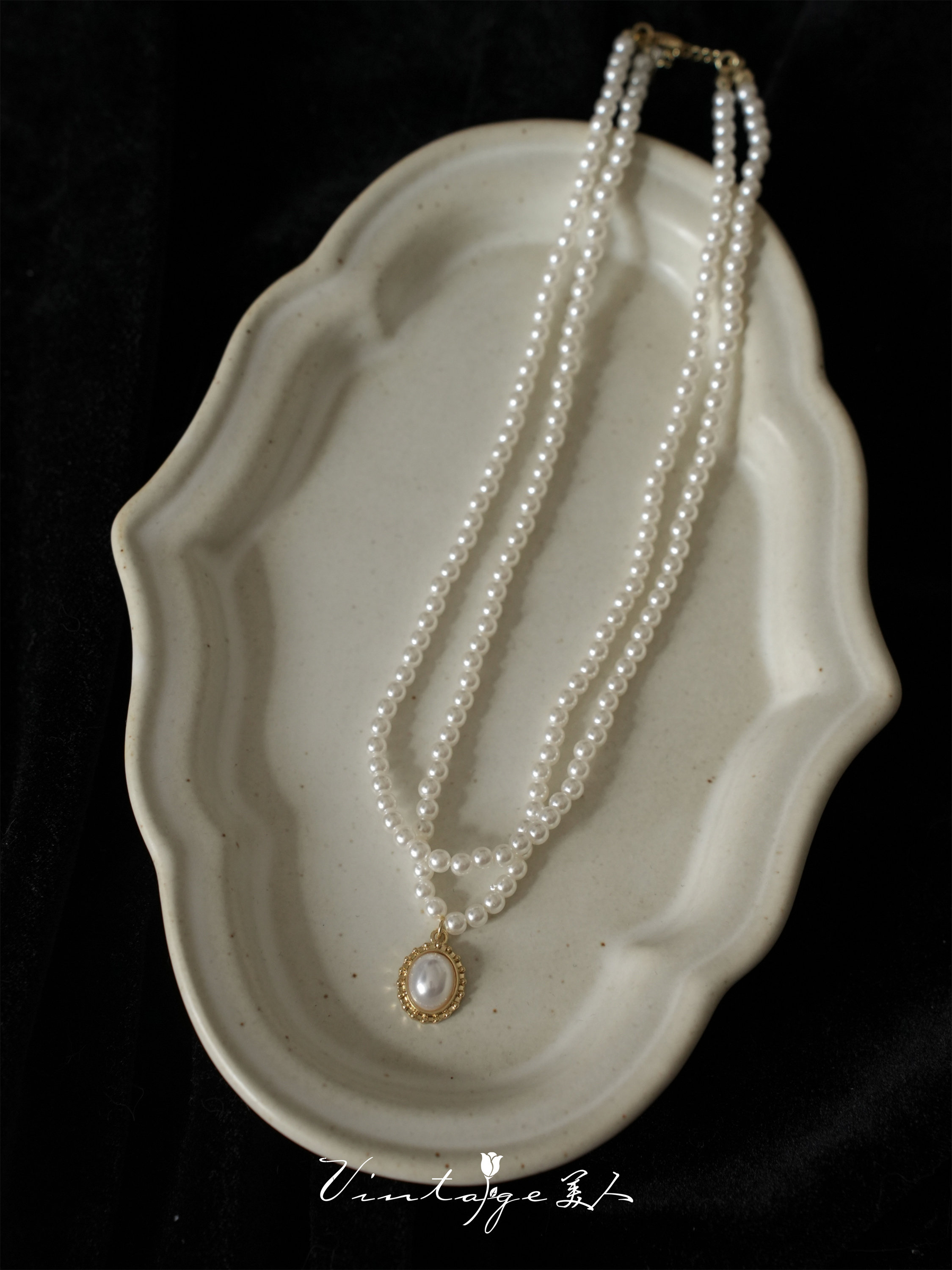 「伯利玆舞會」復古法式高級感優雅氣質赫本風雙層珍珠項鍊鎖骨鍊