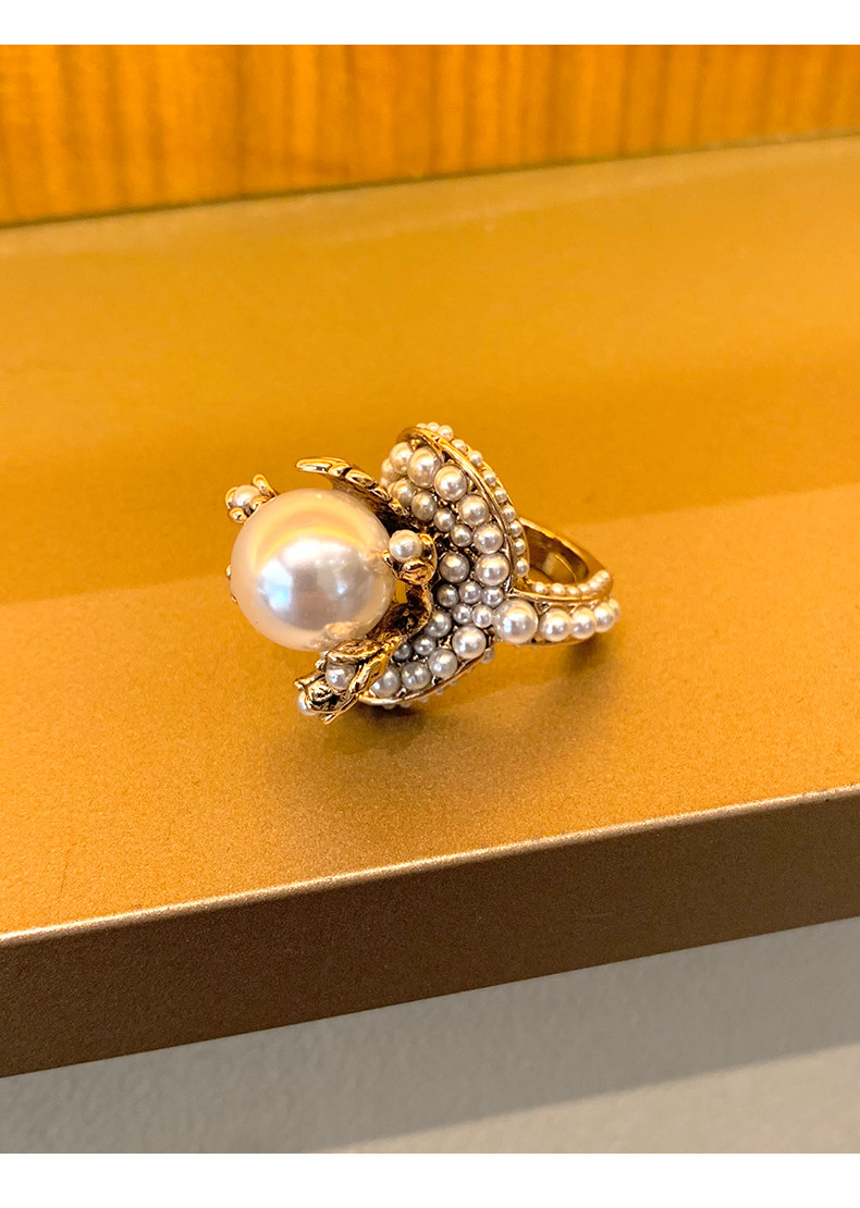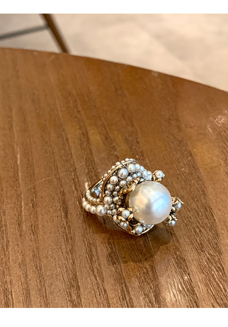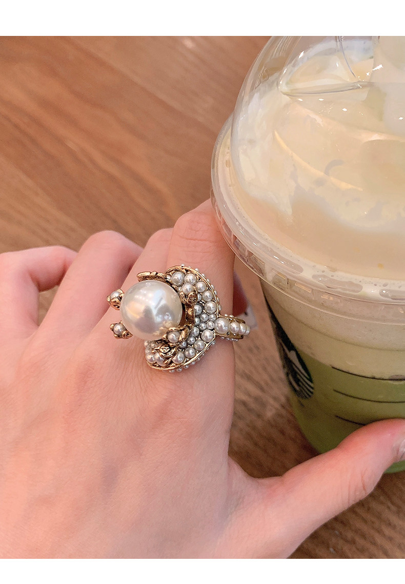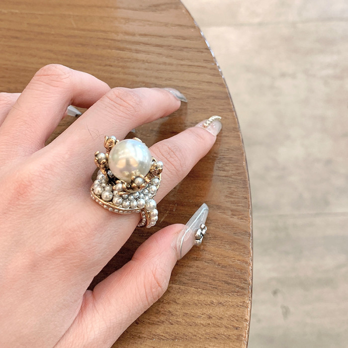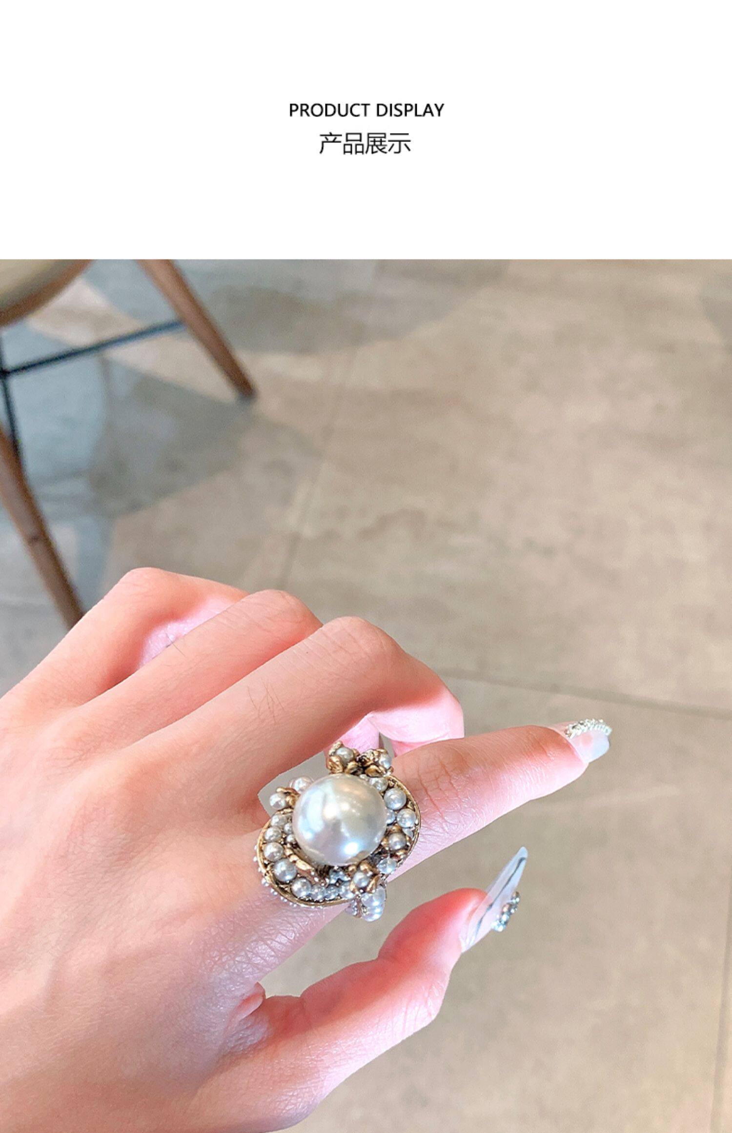 個性復古珍珠花朵戒指氣質網紅誇張食指戒日韓簡約優雅指環配飾女