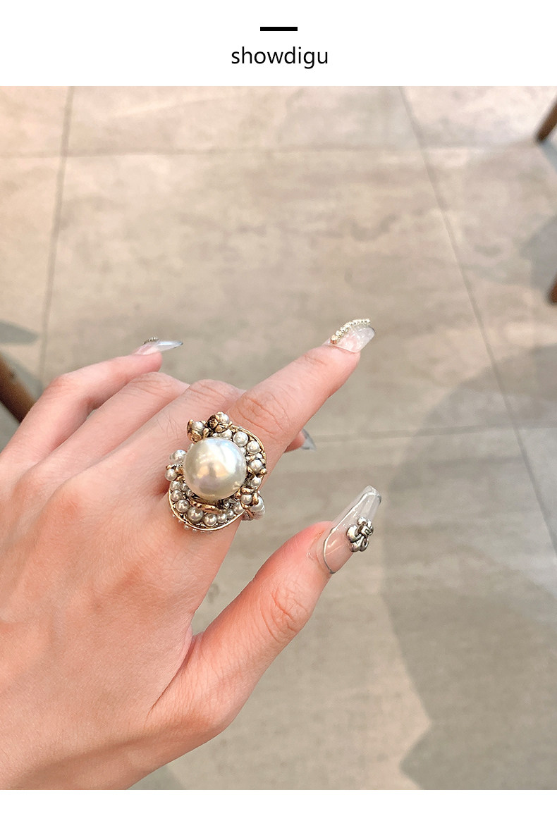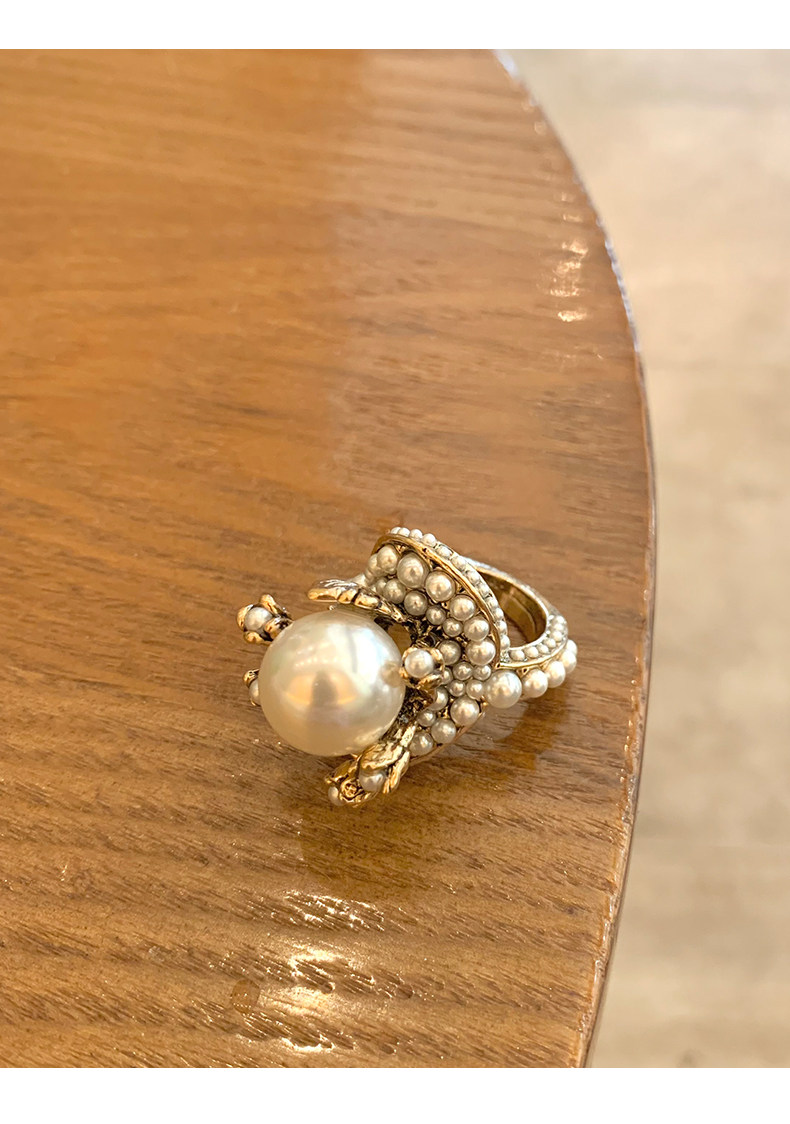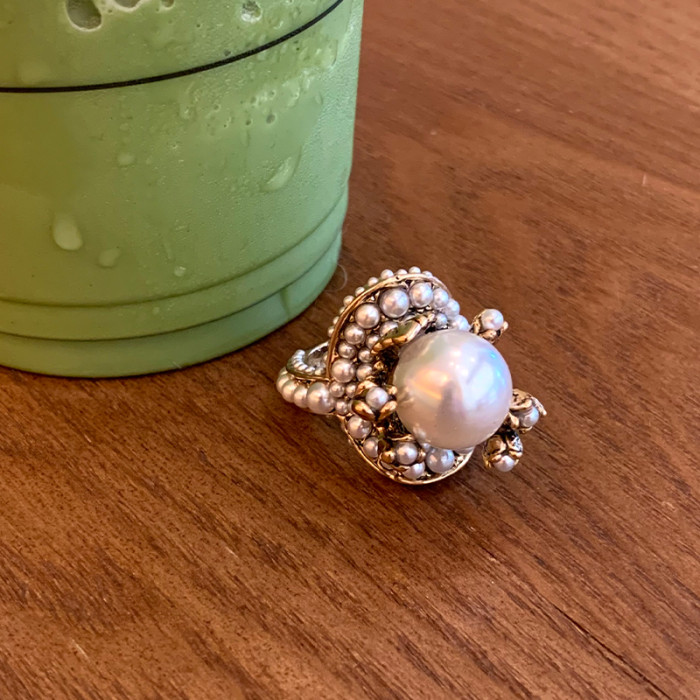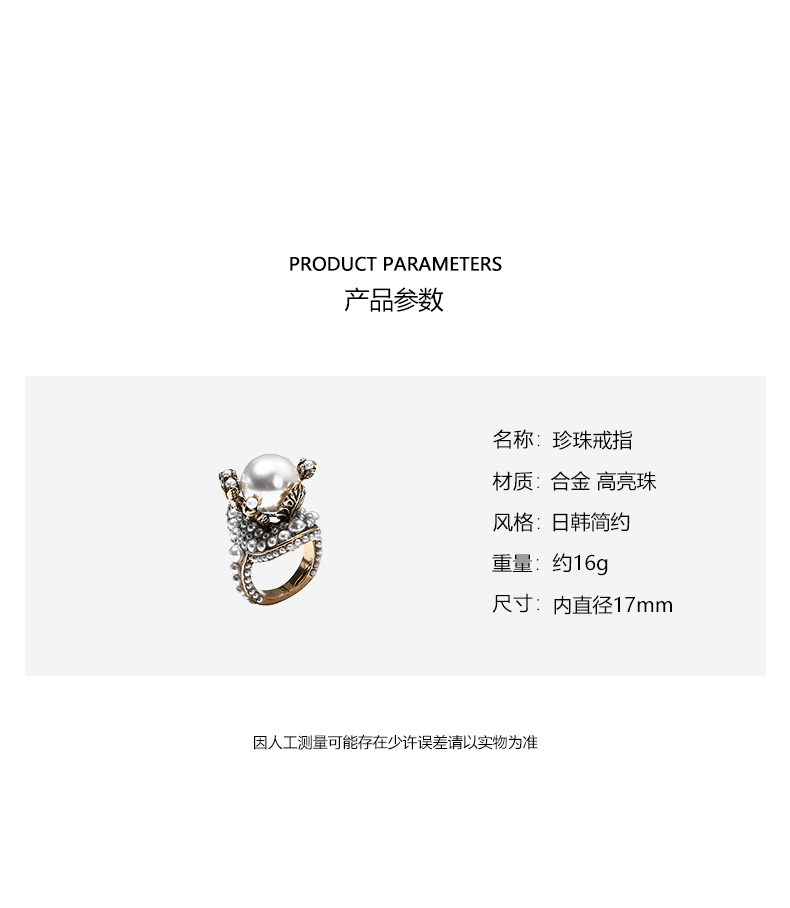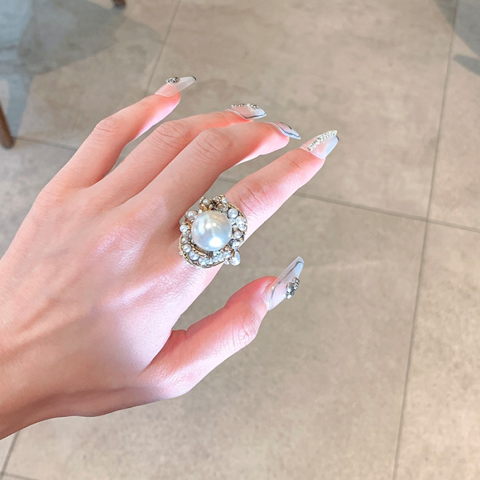 個性復古珍珠花朵戒指氣質網紅誇張食指戒日韓簡約優雅指環配飾女